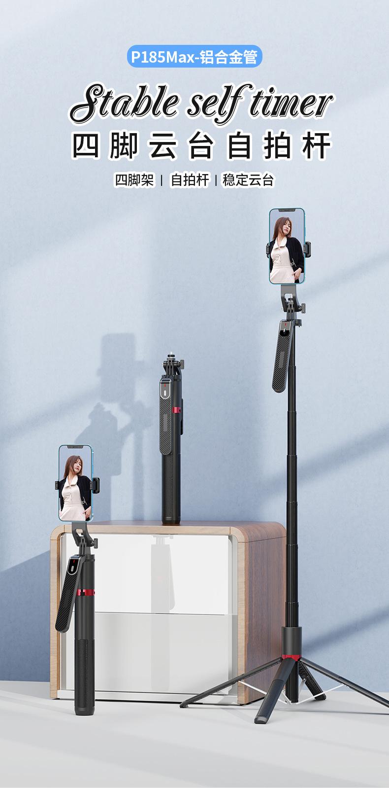P185MAX Bluetooth selfie stick liga de alumínio quatro tripé 2.2 telefone móvel universal transmissão ao vivo suporte de chão câmera artefato