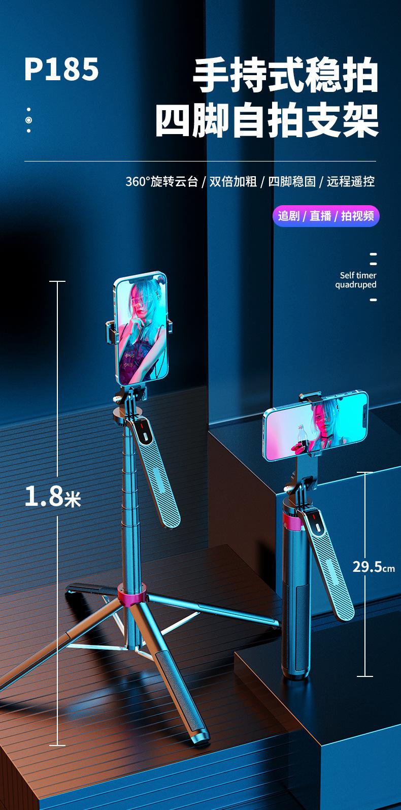 Novo P185 liga de alumínio quatro tripé Bluetooth selfie stick universal telefone móvel ao vivo pé de chão estabilizador portátil