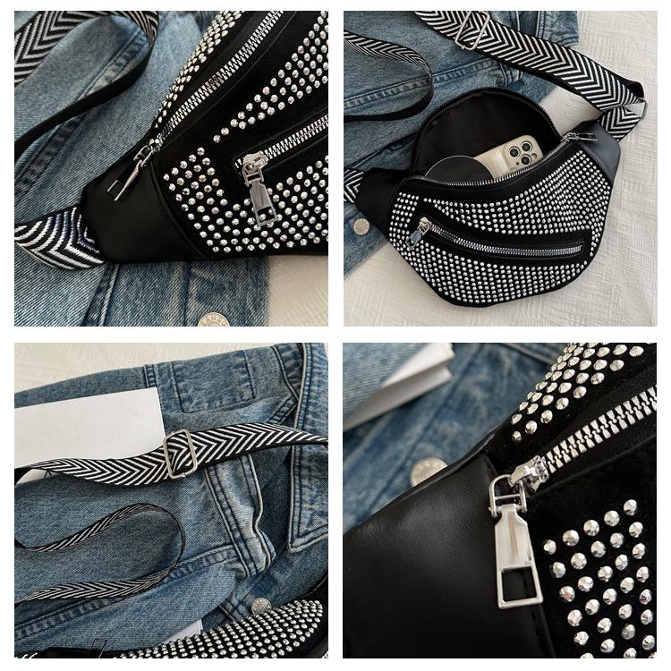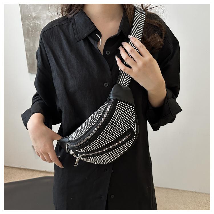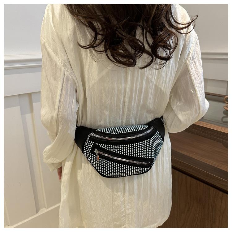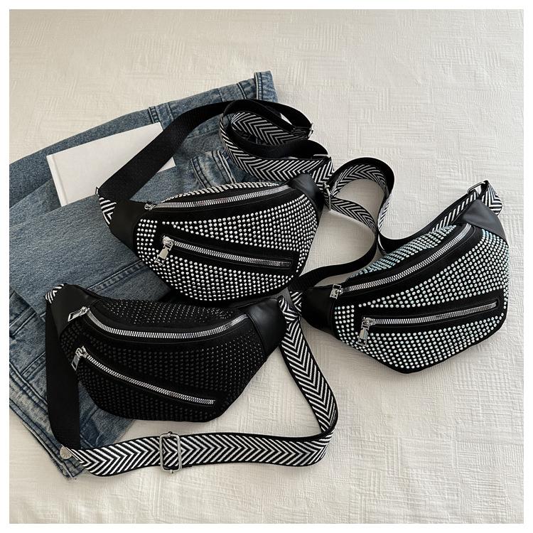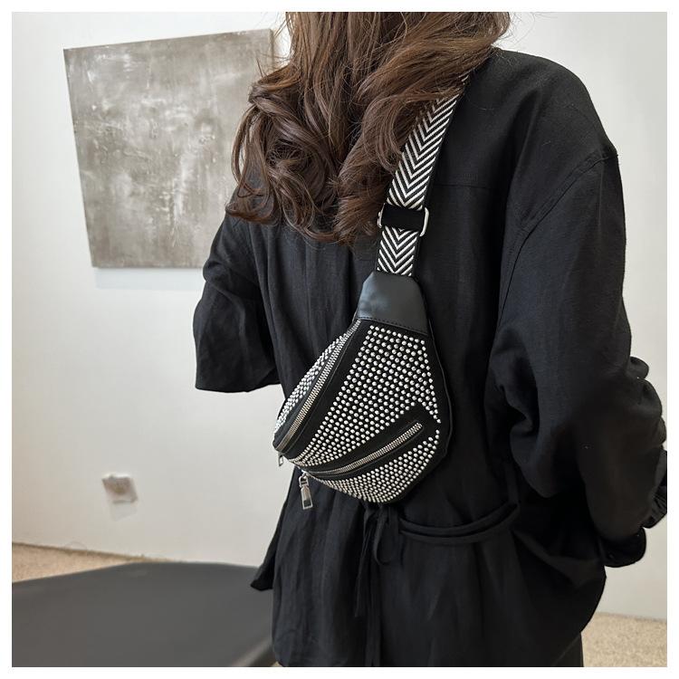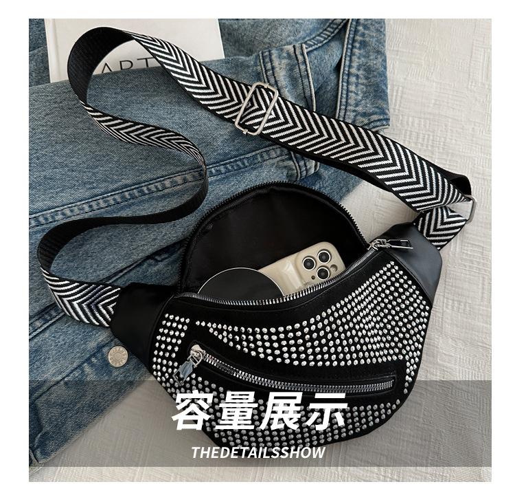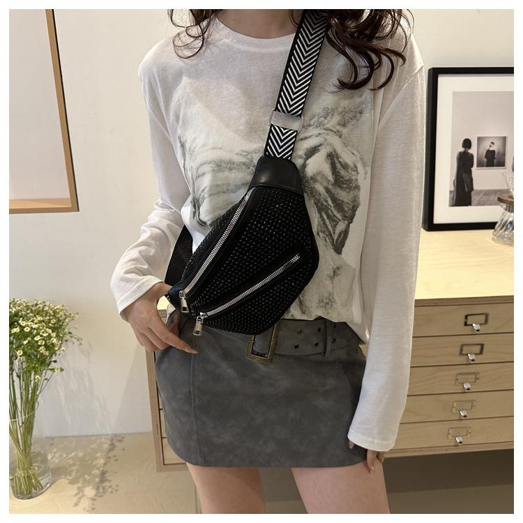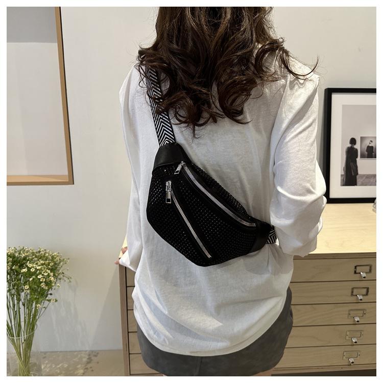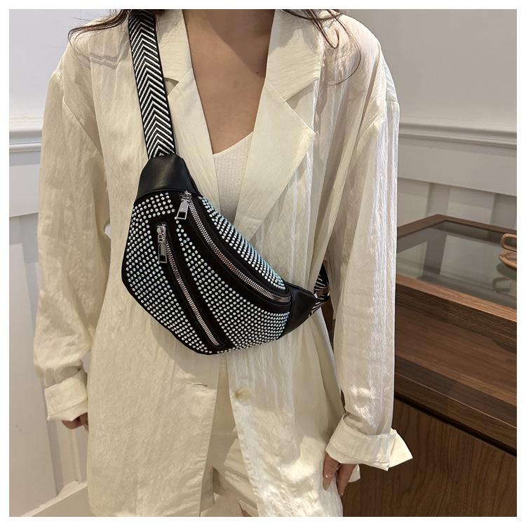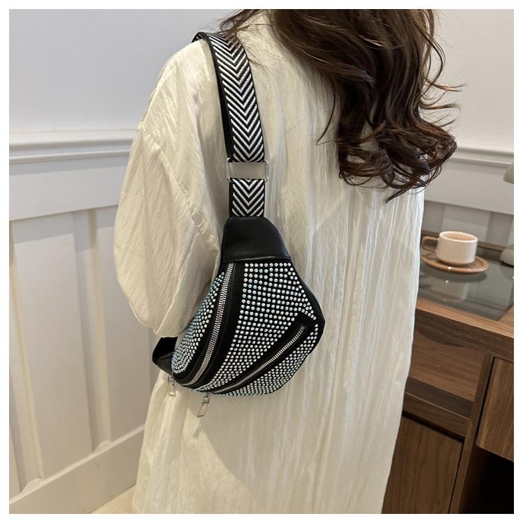 Este ano, a popular bolsa pequena de diamantes brilhantes feminina, nova moda moderna, bolsa de peito para combinar, bolsa de ombro com textura vermelha, cheia de diamantes