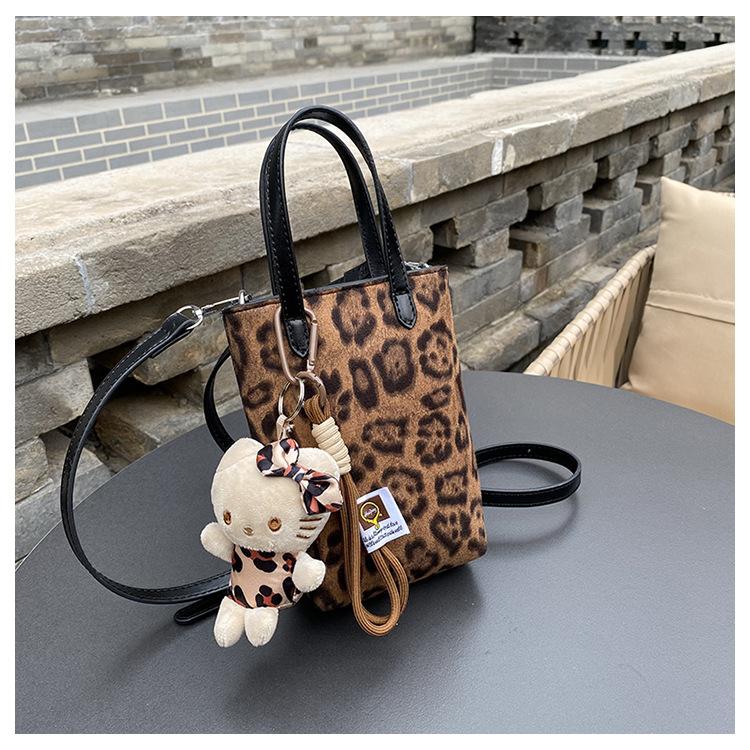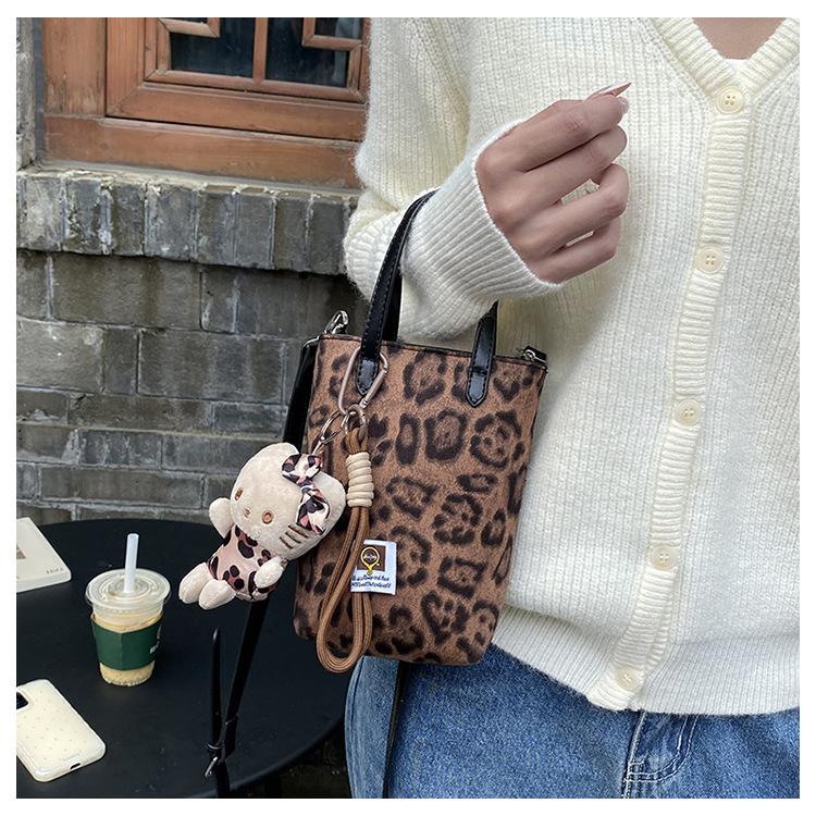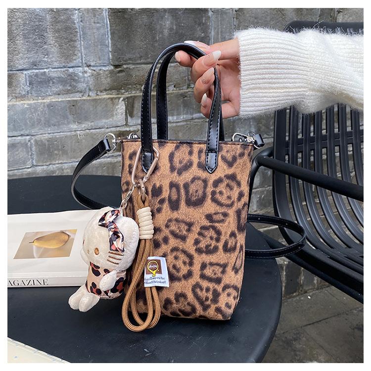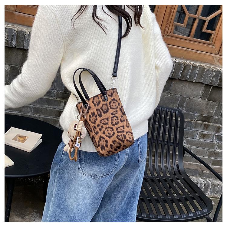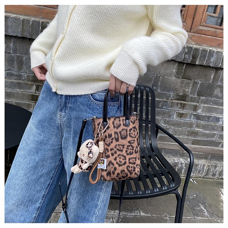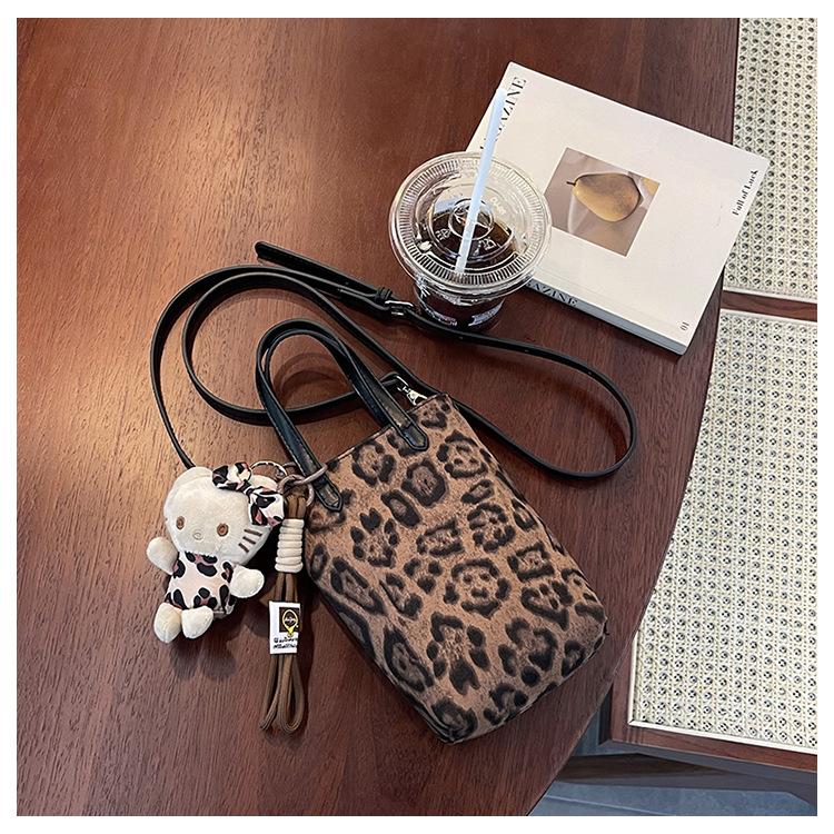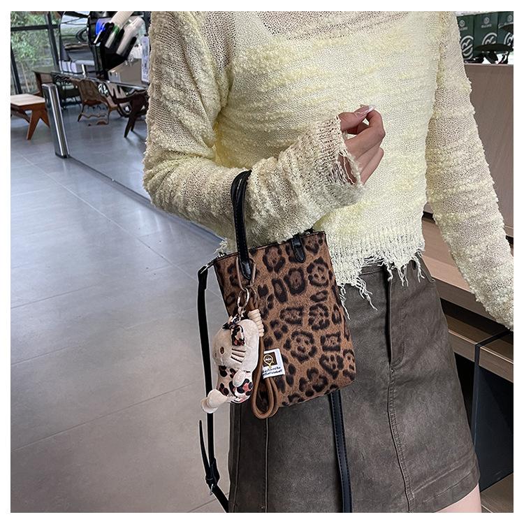 Bolsa de estampa de leopardo de nicho popular deste ano Bolsa feminina 2024 Nova bolsa transversal versátil de outono e inverno Bolsa para celular super popular