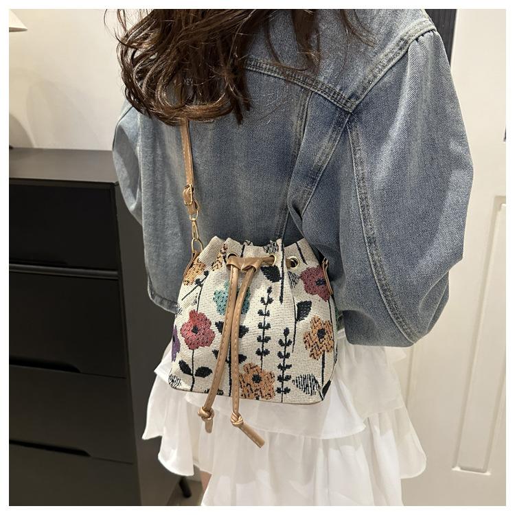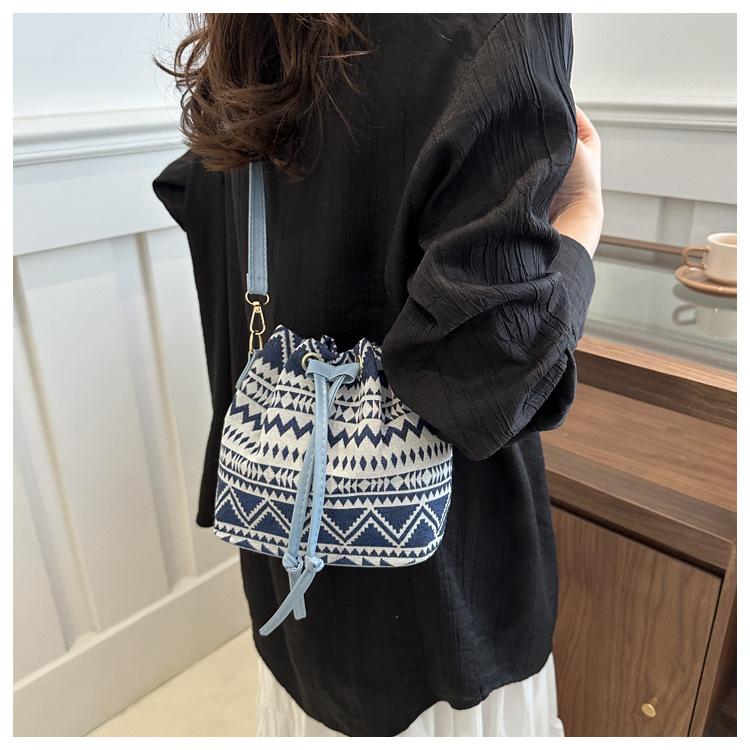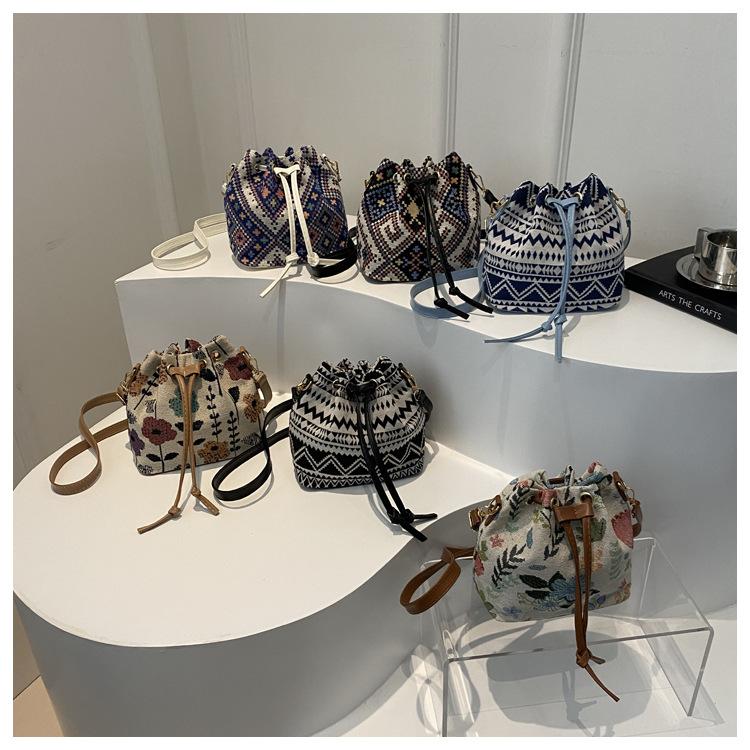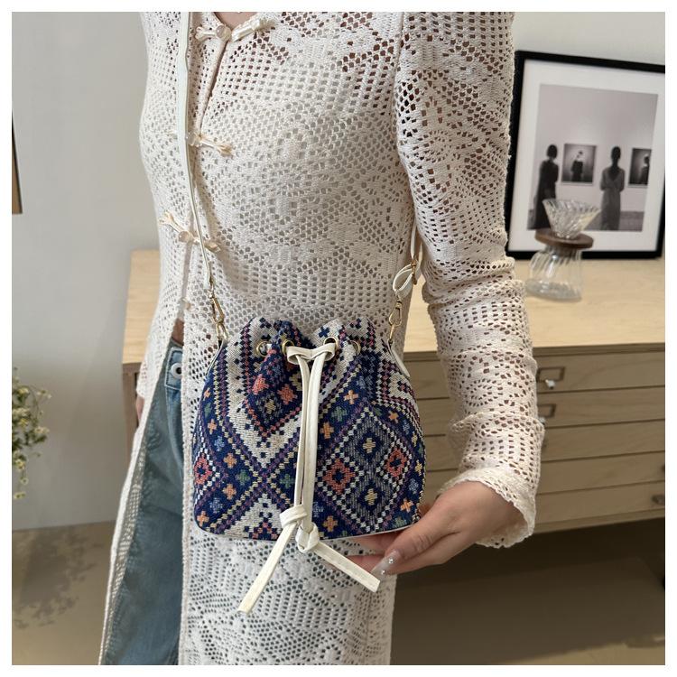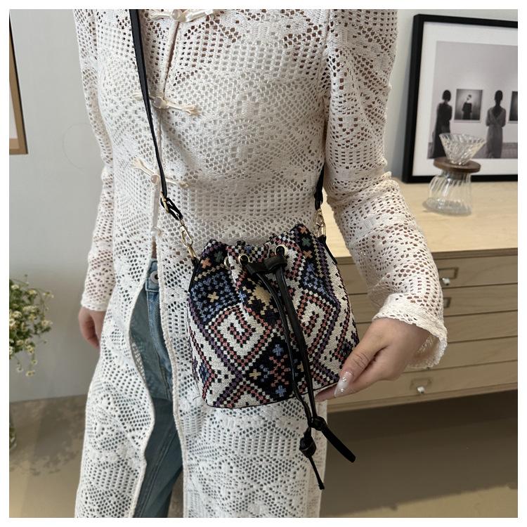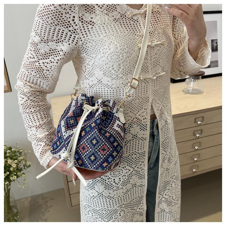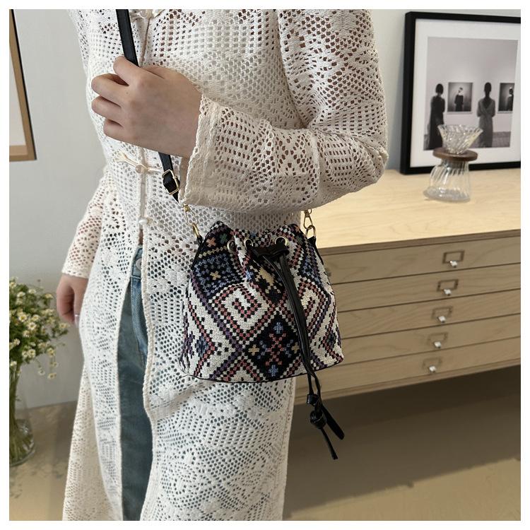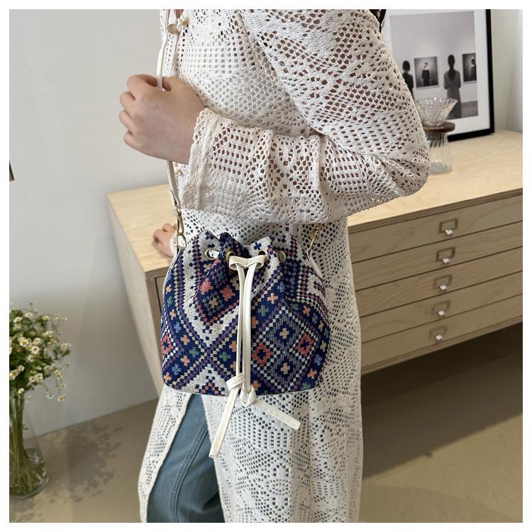 Bolsa de balde étnica de drenagem de sentido de alta qualidade Bolsa de ombro feminina 2024 Nova moda Bolsa Crossbody de comércio exterior