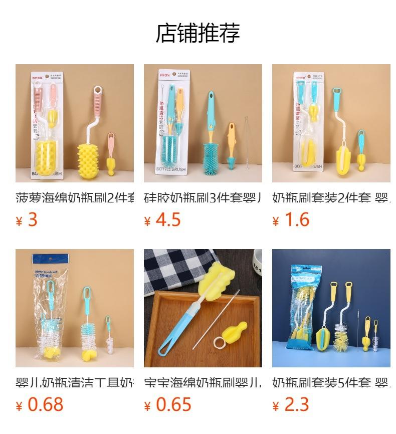 Escova de esponja para mamadeiras*1; Escova de canudo*1; Escova de esponja para chupeta*1;