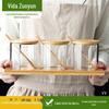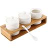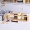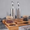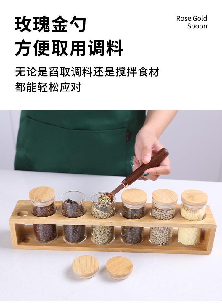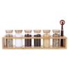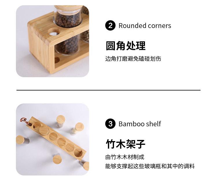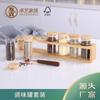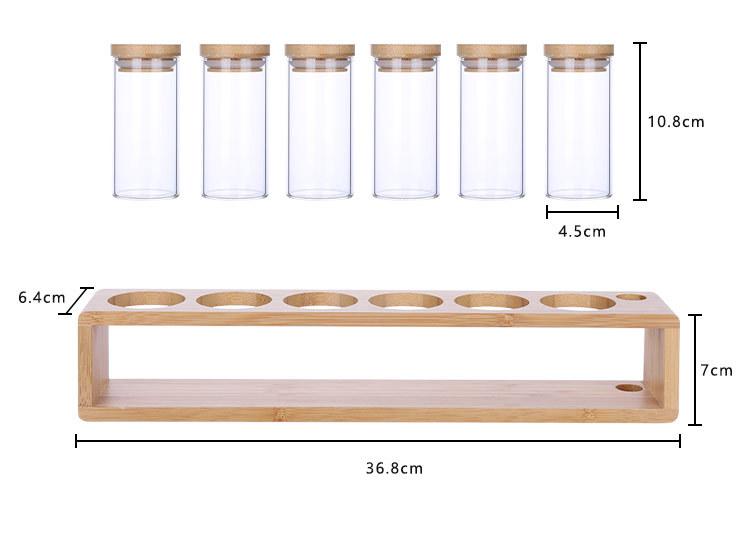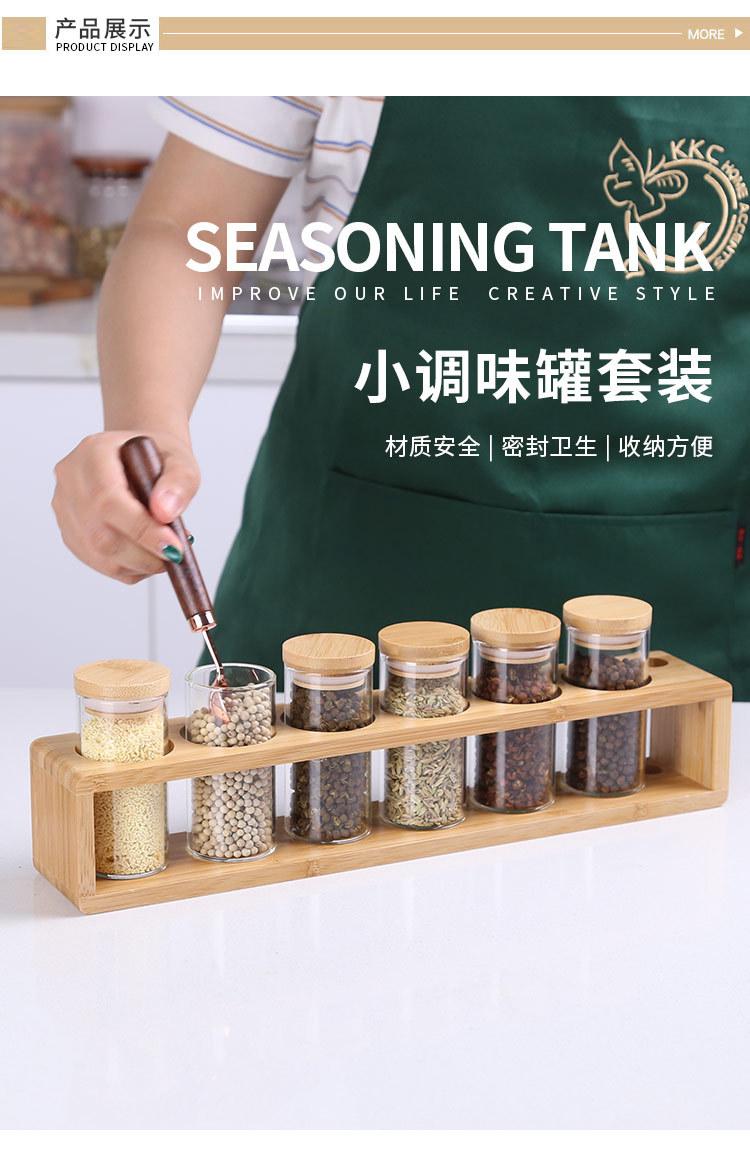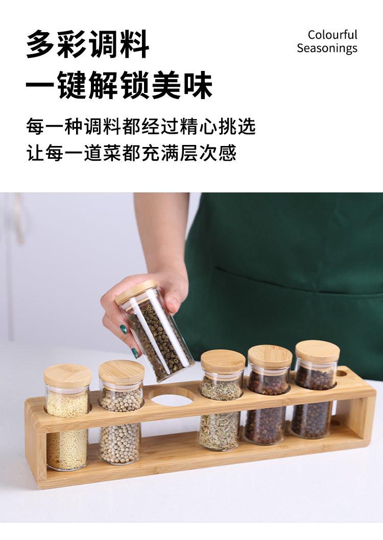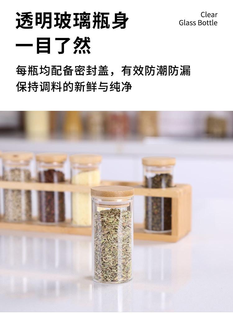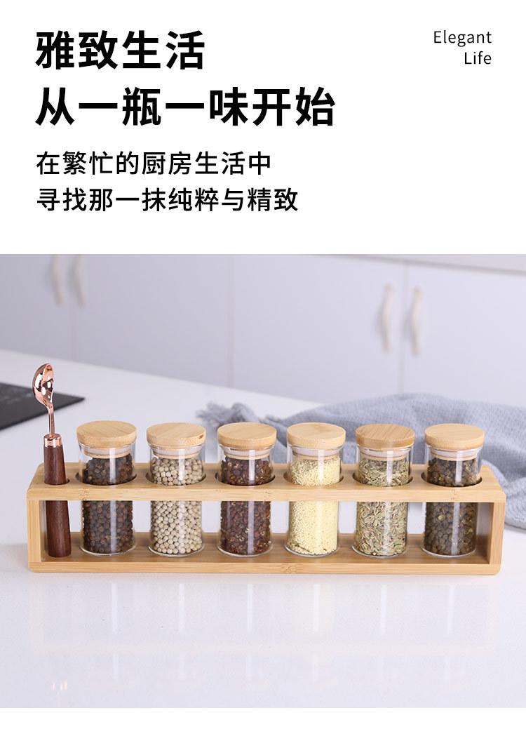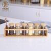 Suporte de Bambu com Prateleira Garrafa de Vidro para Condimentos com Colher Cozinha Escandinava Doméstico Suporte para Armazenamento de Potes de Condimento Seis Frascos Pequenos