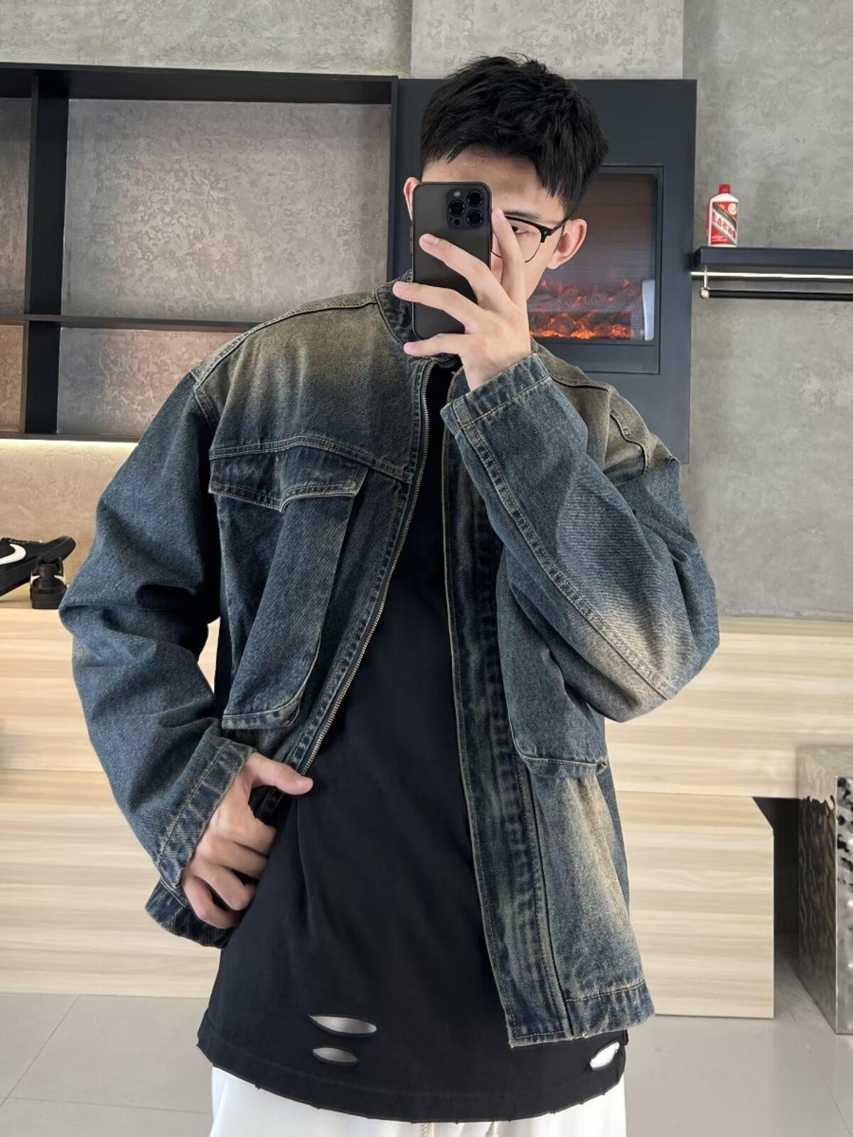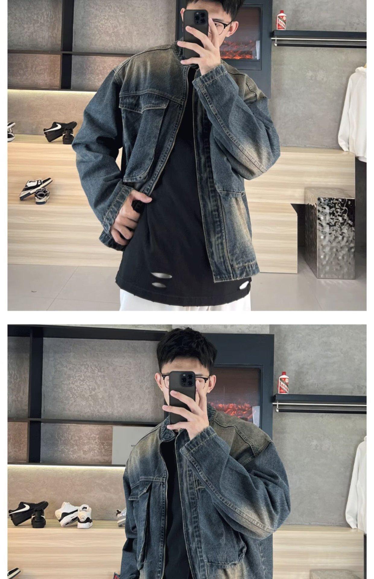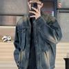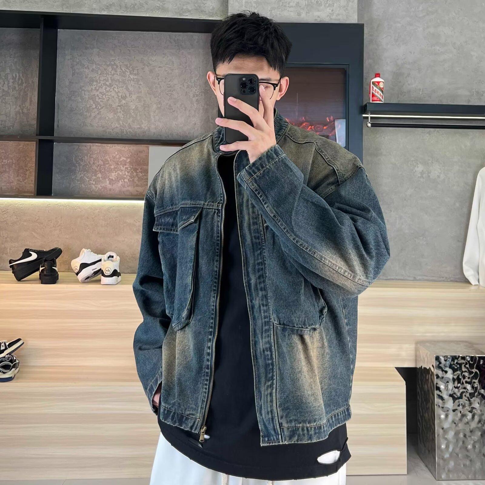 Jaqueta Jeans Retro Estilo Americano Masculina Primavera e Outono Novas Roupas Soltas Superiores Marca Moderna Gordo Bonito Lavado Velho Gradiente Jaqueta