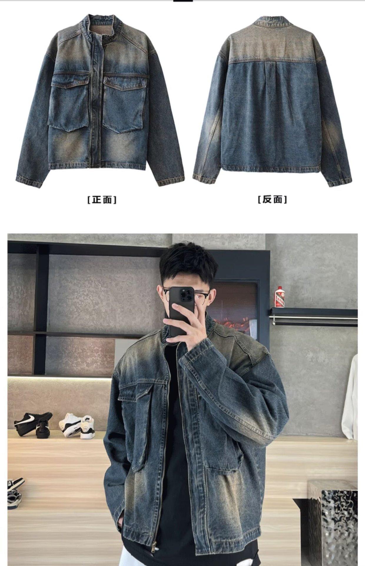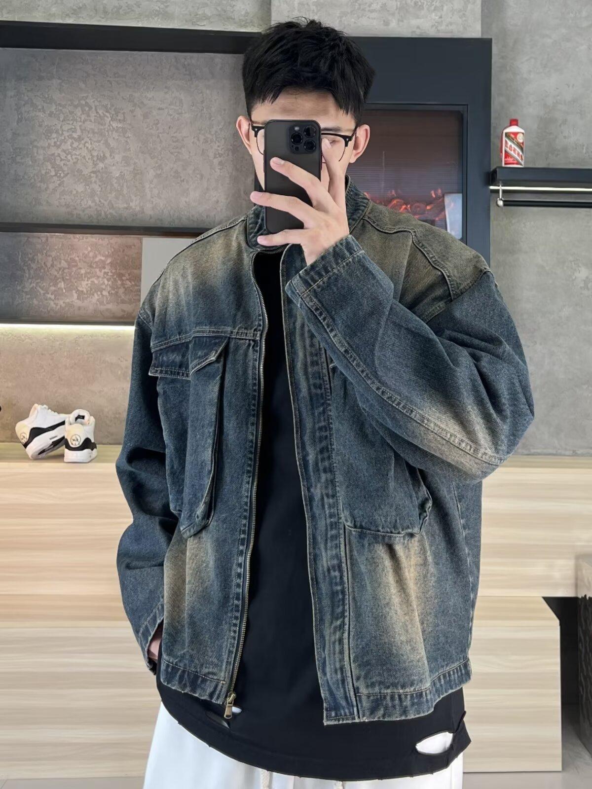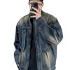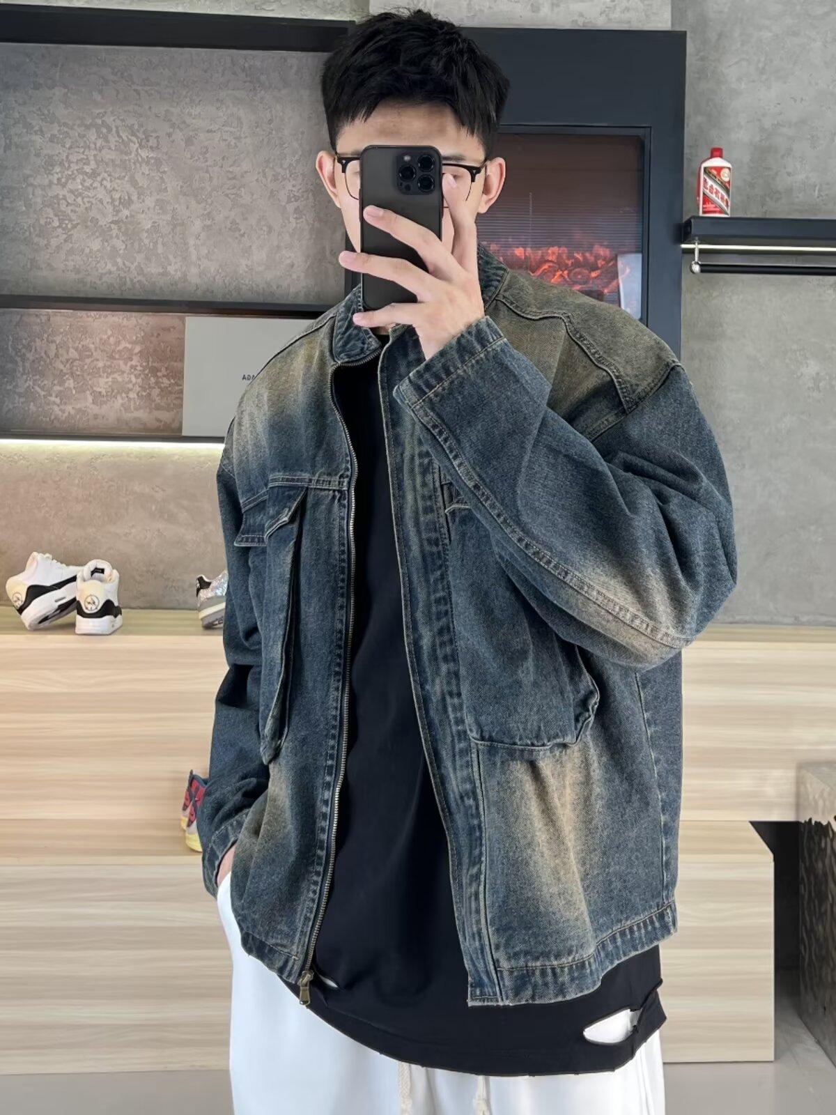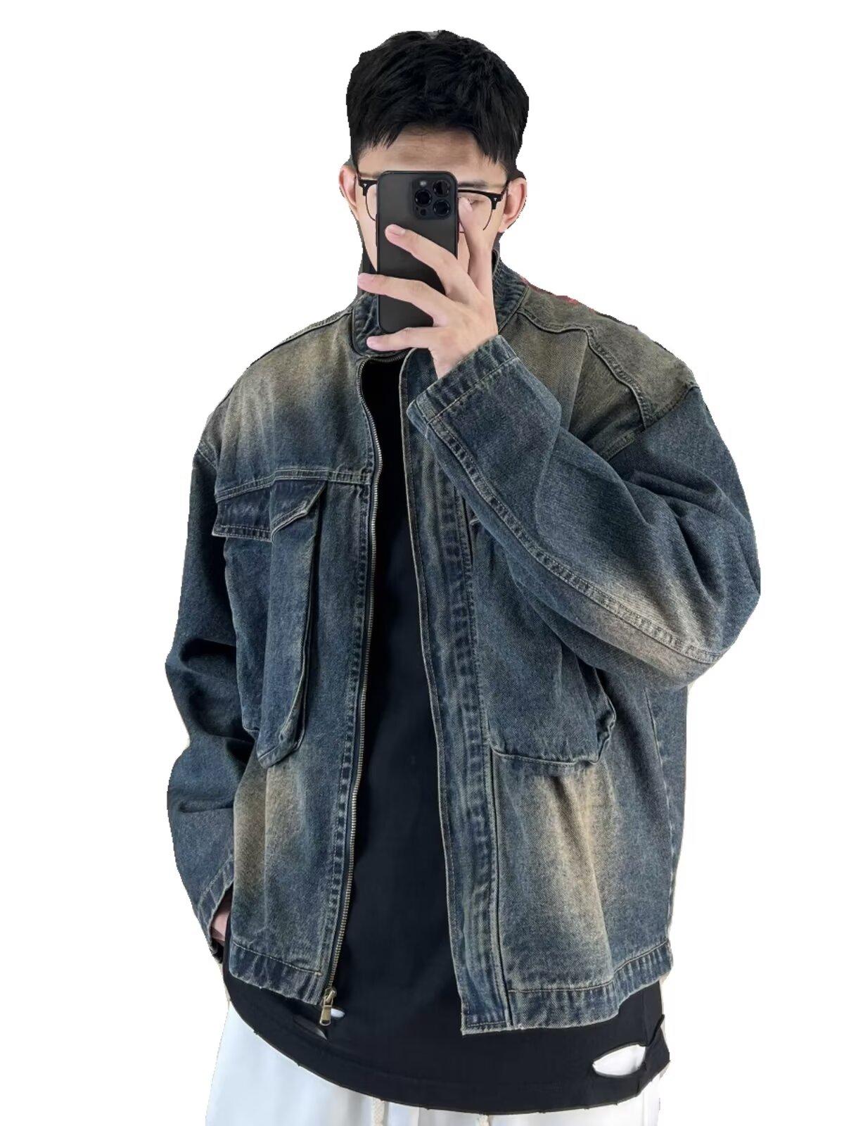 Jaqueta Jeans Retro Estilo Americano Masculina Primavera e Outono Novas Roupas Soltas Superiores Marca Moderna Gordo Bonito Lavado Velho Gradiente Jaqueta