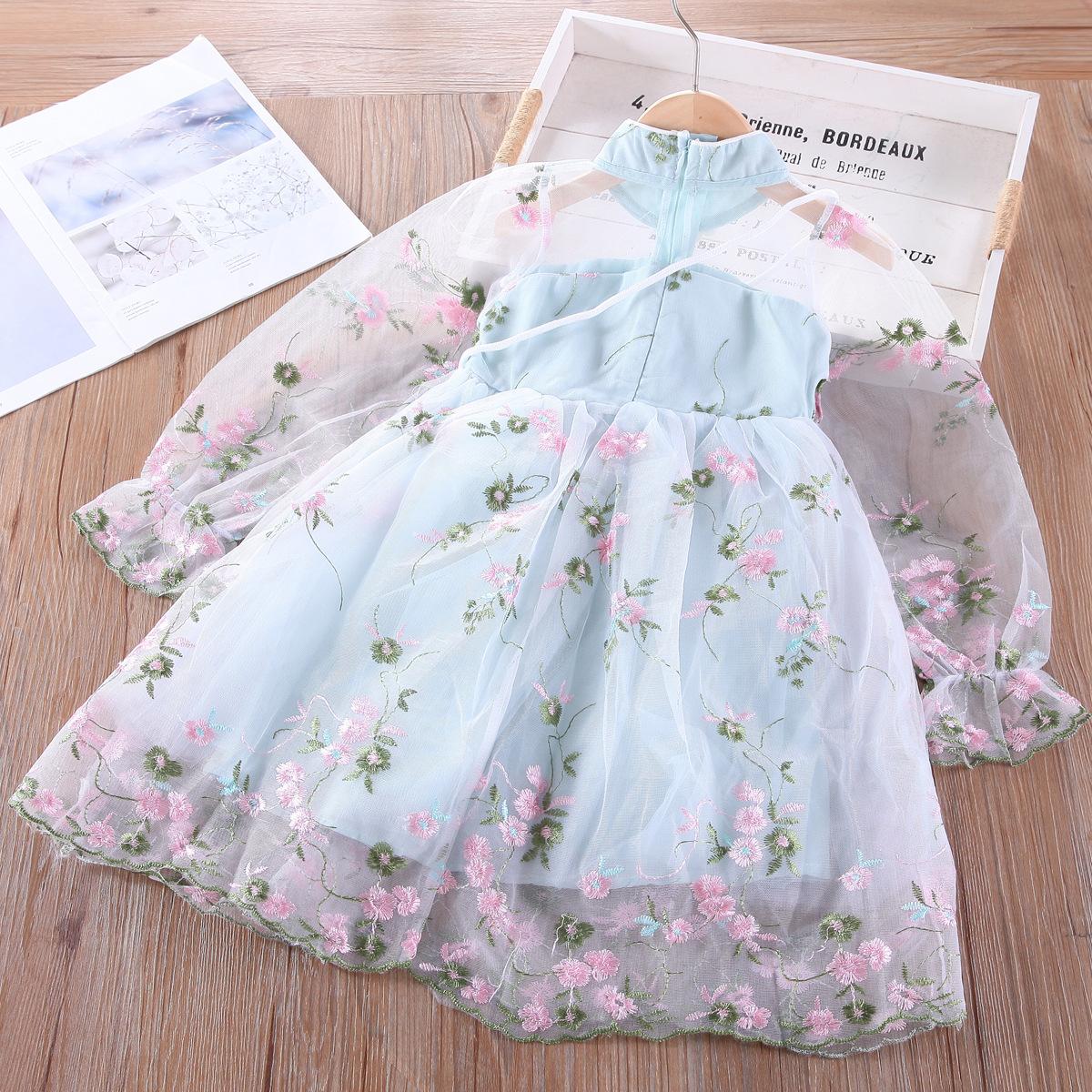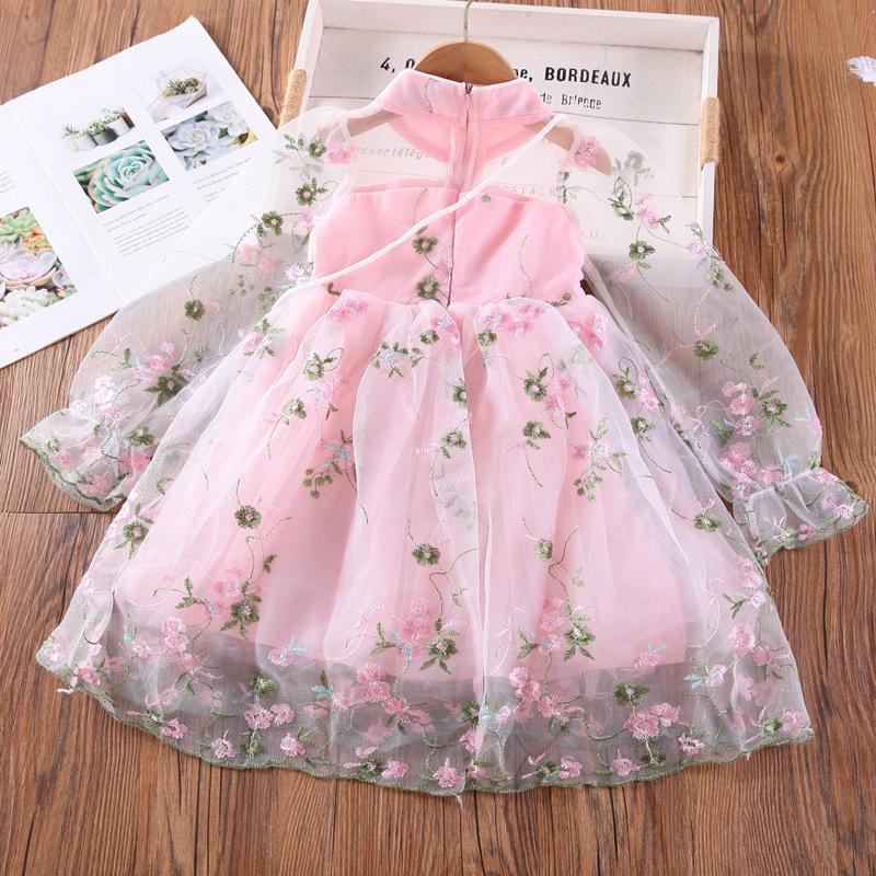 Vestido de princesa bordado novo bordado das meninas do vestido das meninas do estilo ocidental da luva longa do vestido das meninas da roupa das crianças do estilo coreano do outono 508050