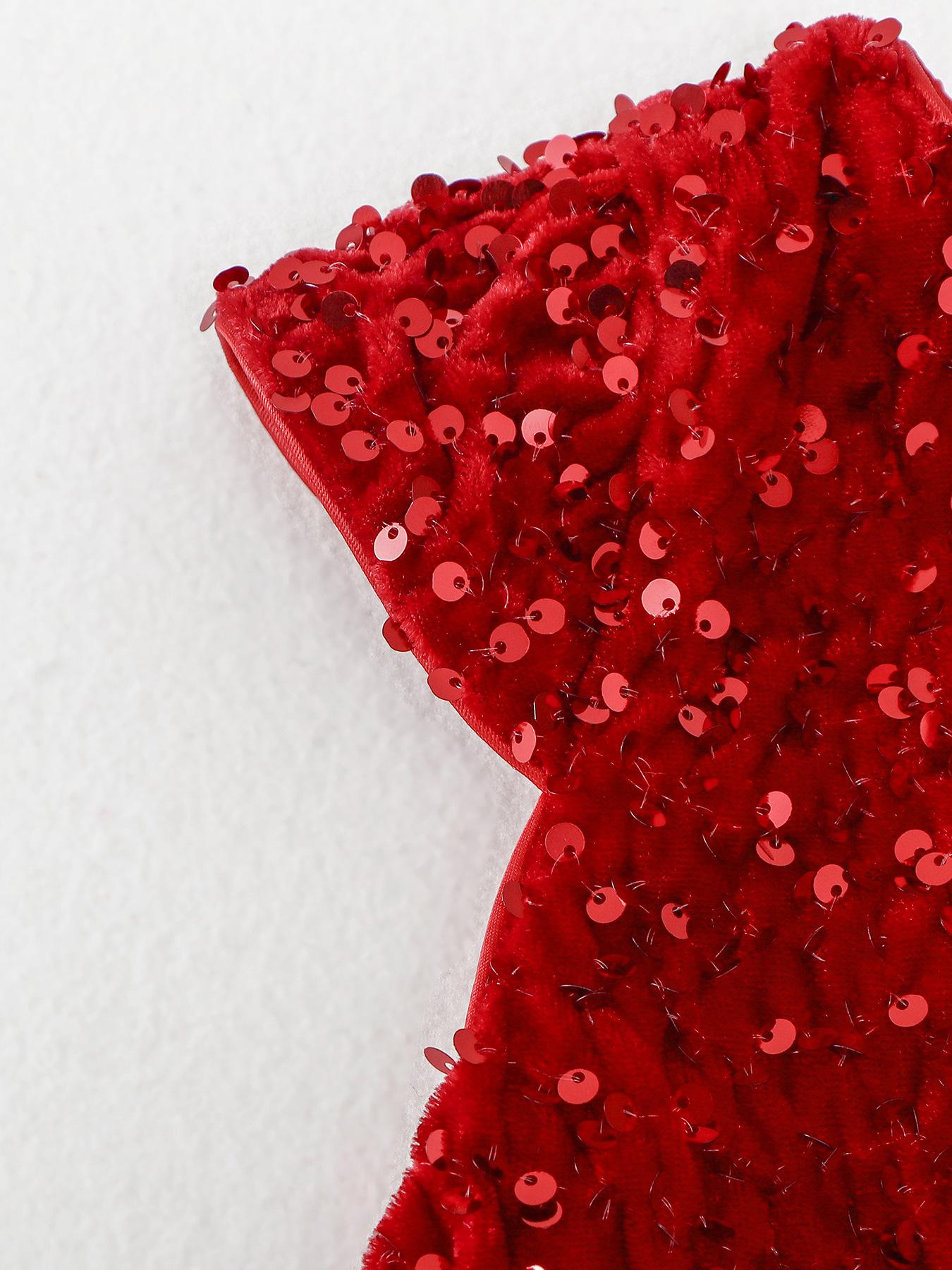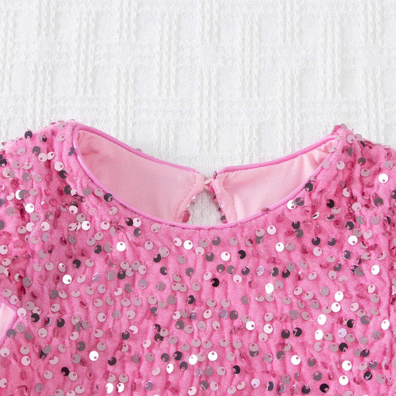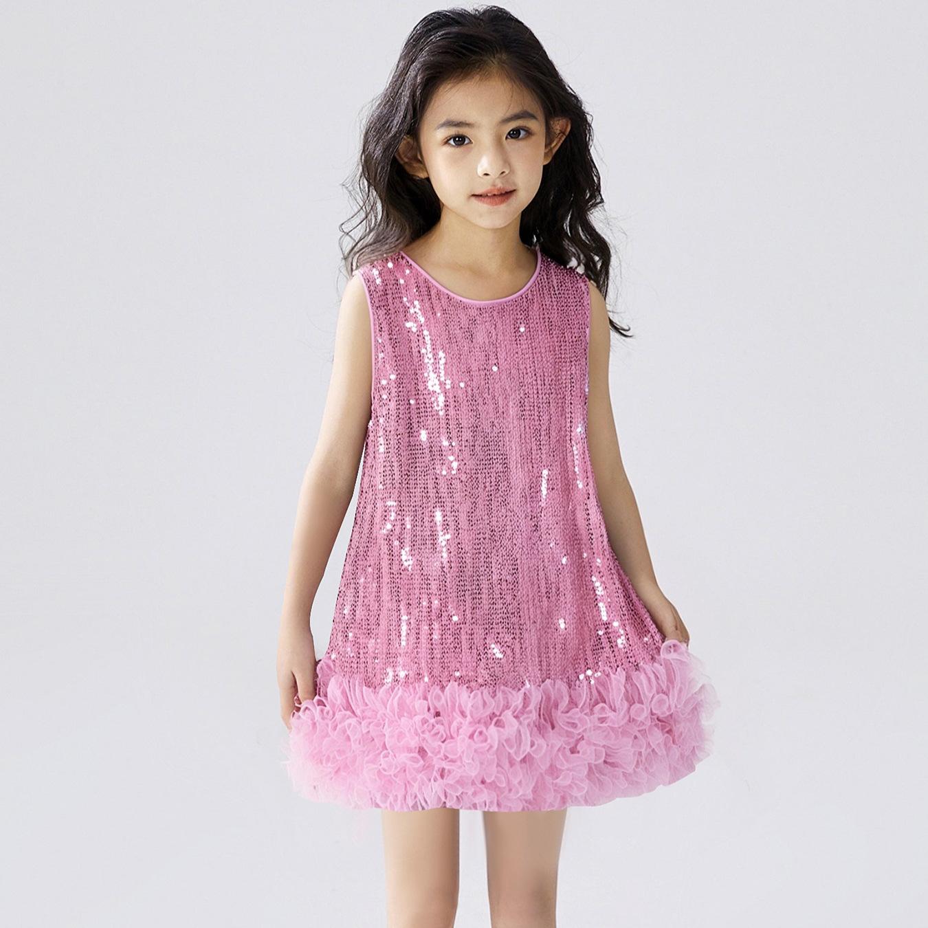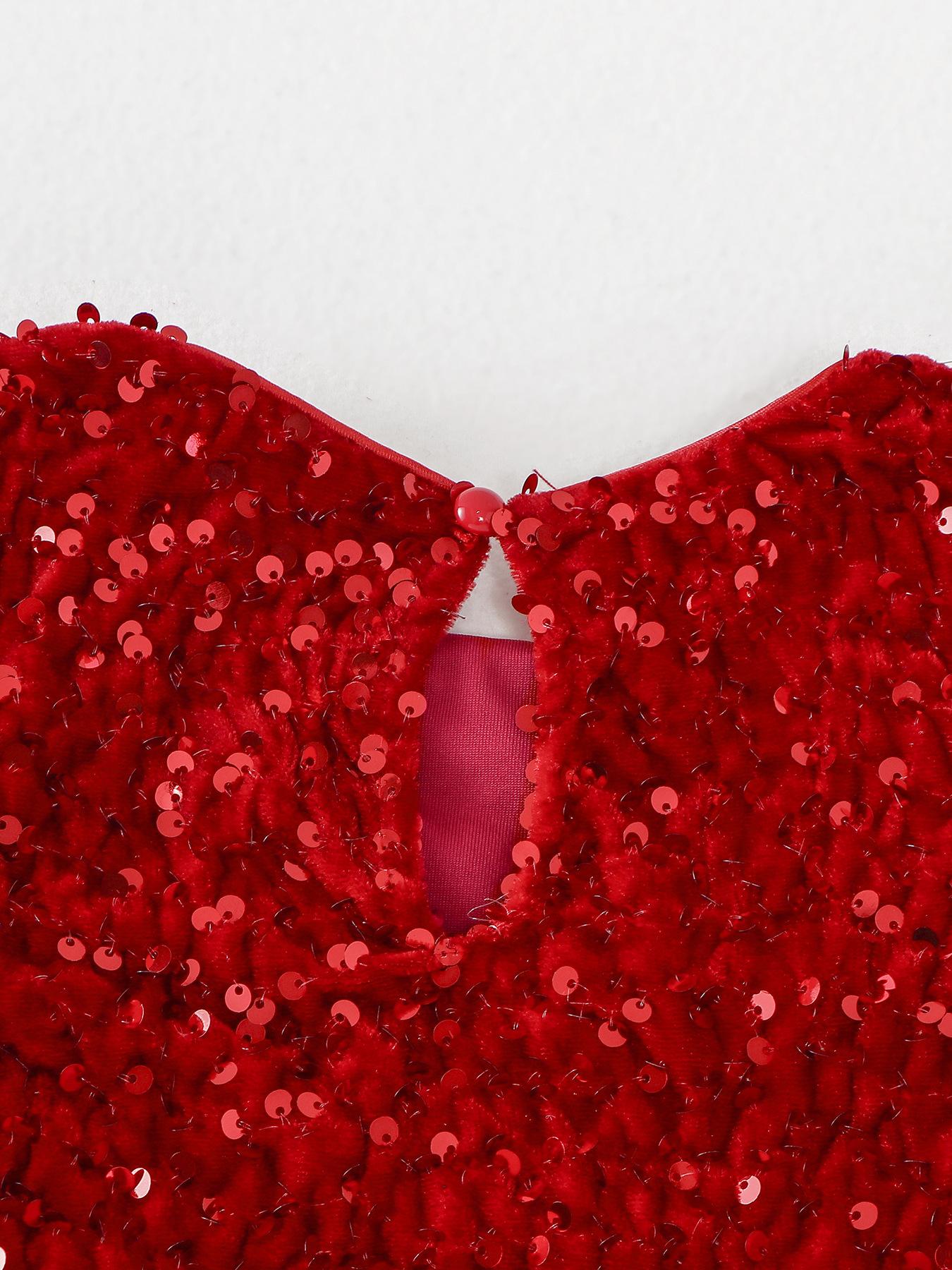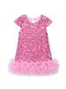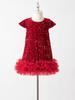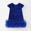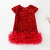Vestido Regata Paetês para Meninas 2025 Natal Novo Transfronteiriço Manga Curta Vestido de Princesa Infantil Vestido de Festa