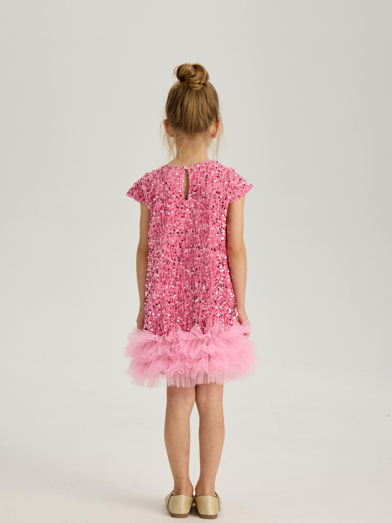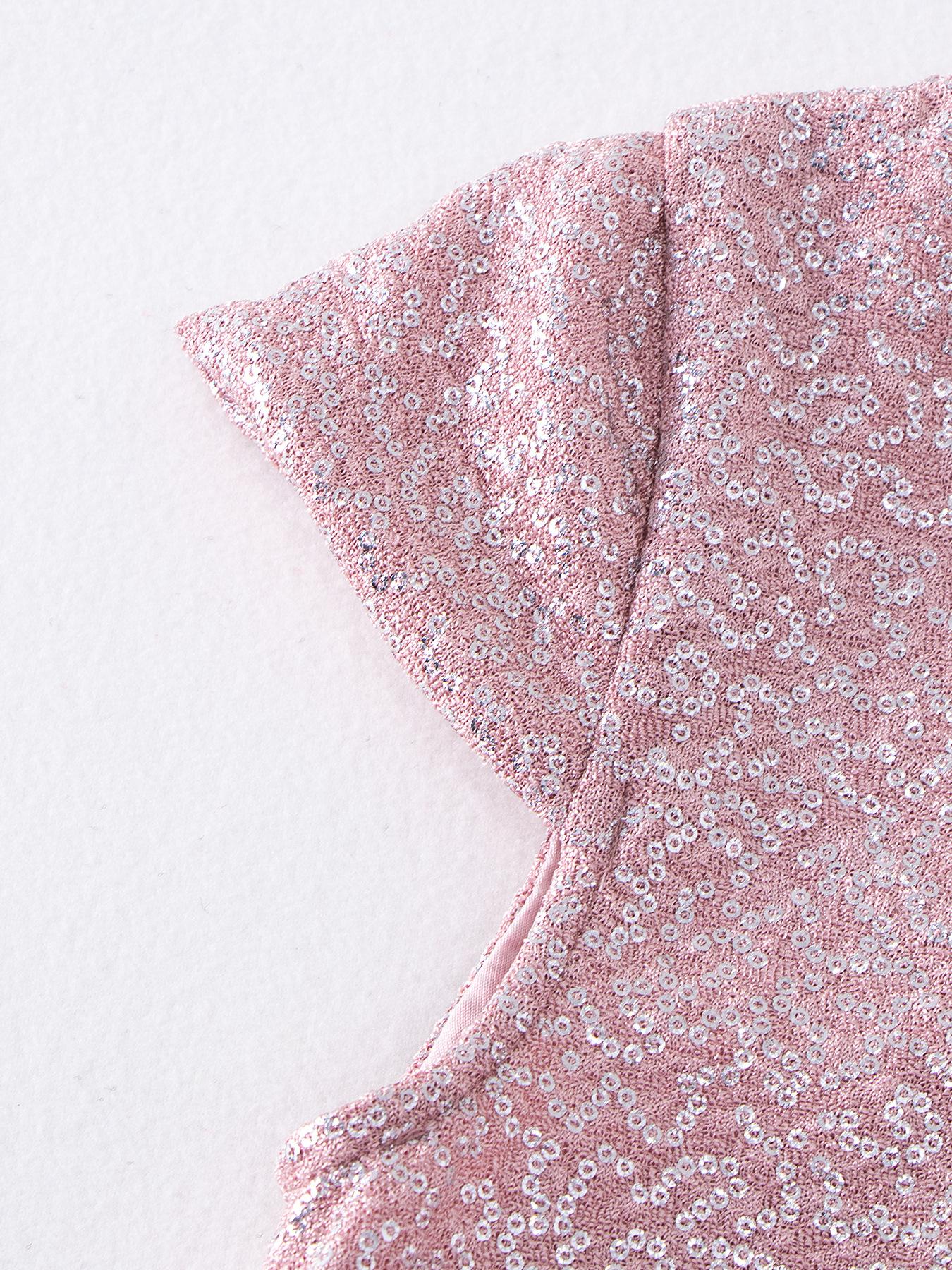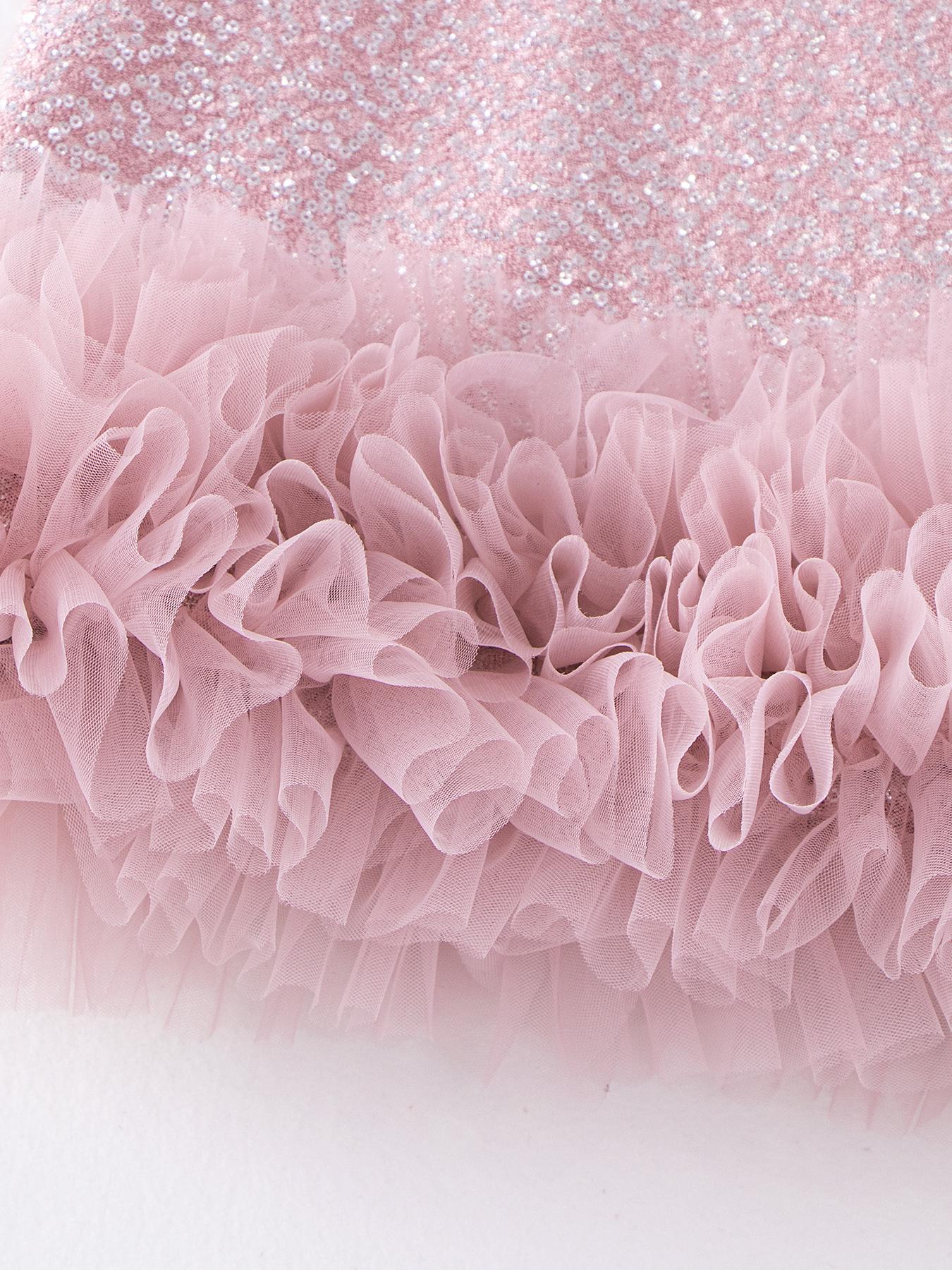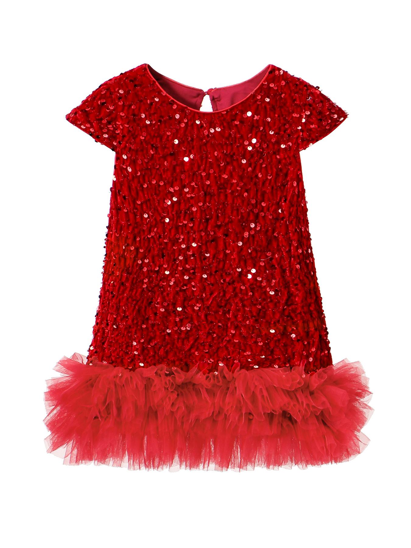 Vestido Regata Paetês para Meninas 2025 Natal Novo Transfronteiriço Manga Curta Vestido de Princesa Infantil Vestido de Festa