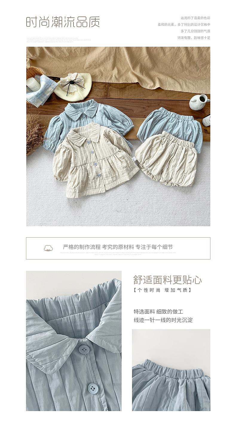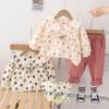 Terno de bebê primavera e outono coreano bebê outono 2024 novo lindo garotinha boneca camisa top shorts casuais