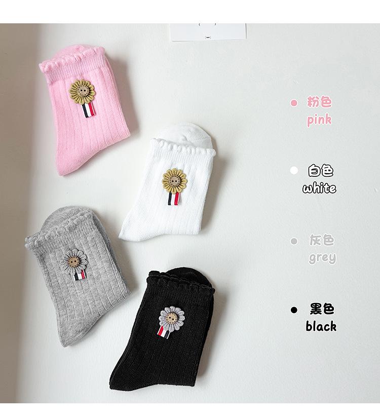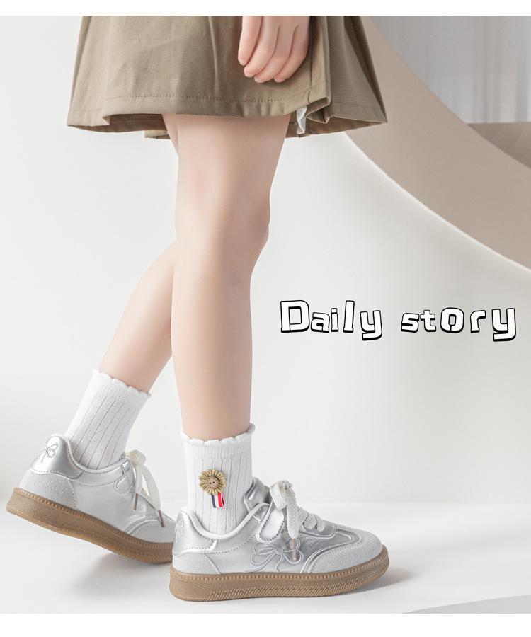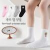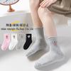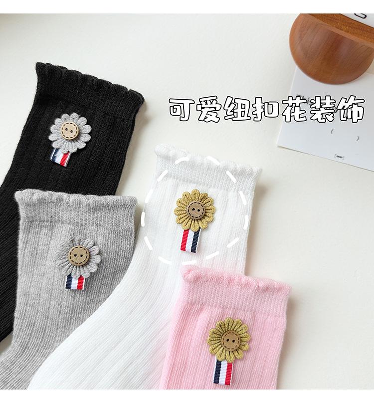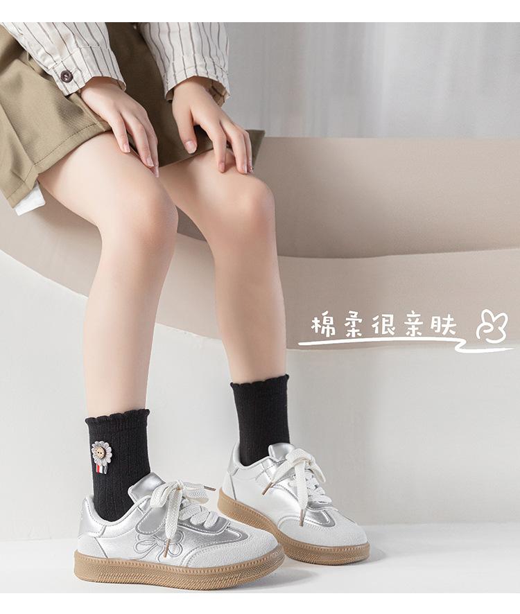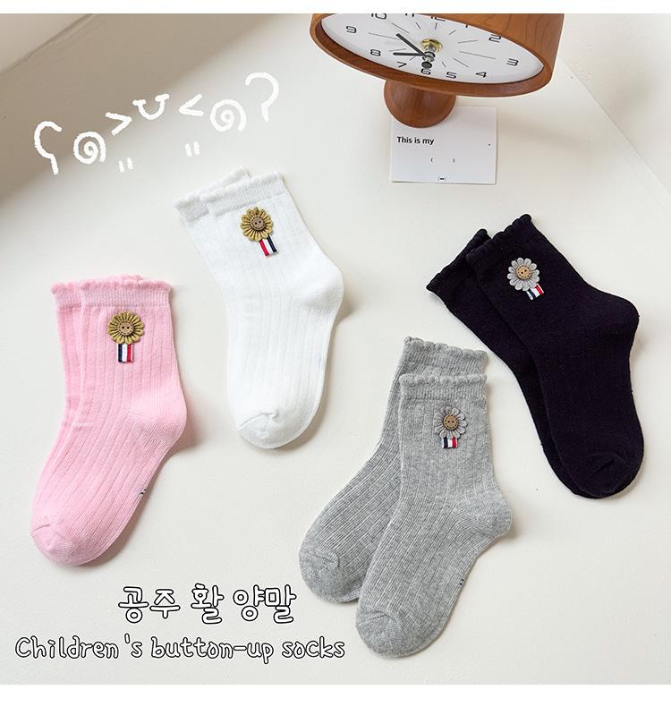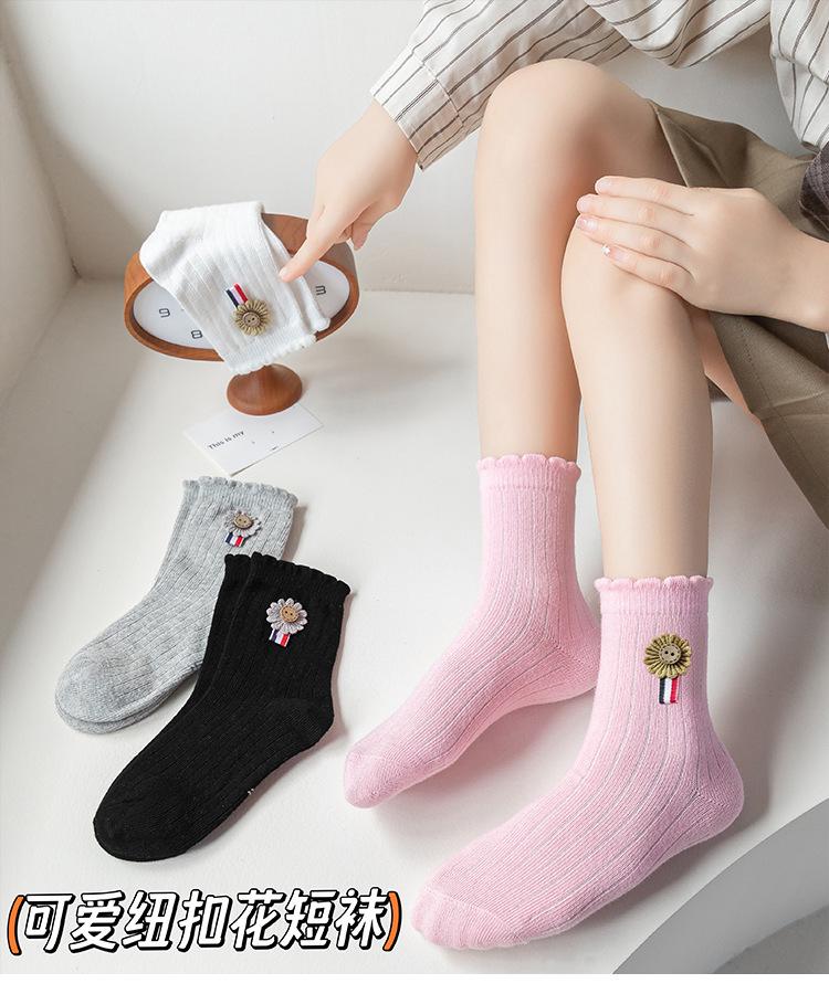 Meias infantis Meias de cano médio Primavera e Outono Meias esportivas finas com botões de desenho animado Meias curtas Meias brancas estilo inglês para alunos do ensino fundamental
