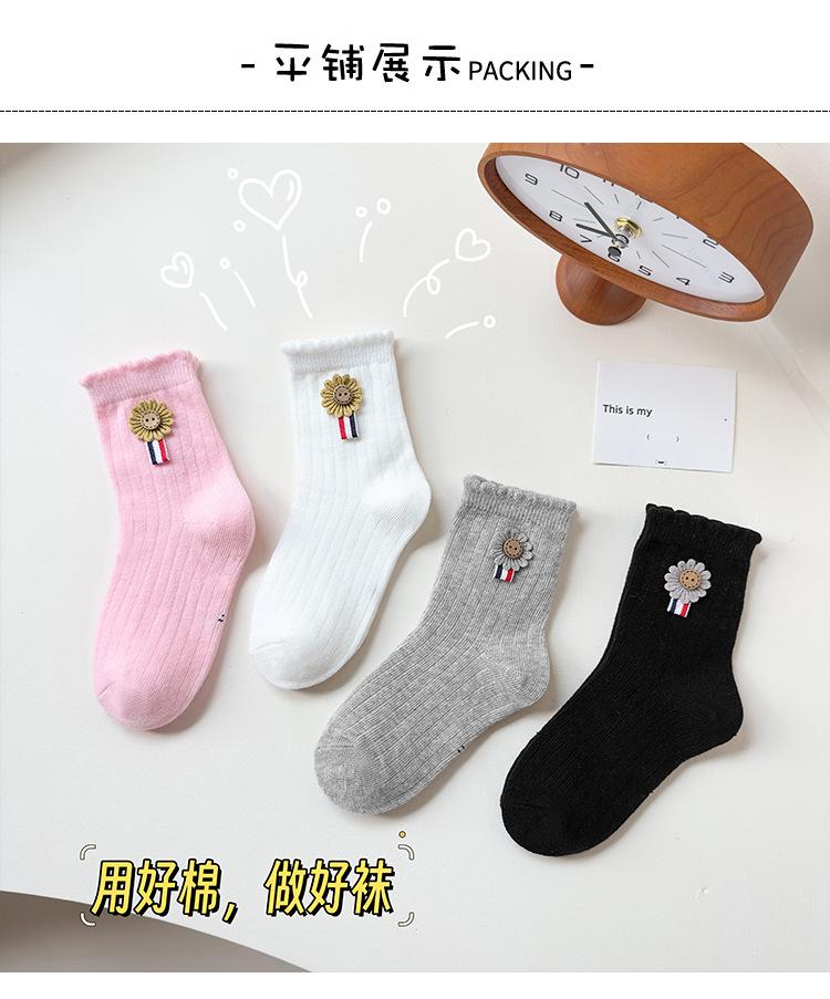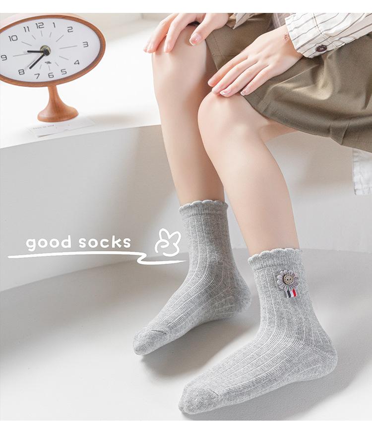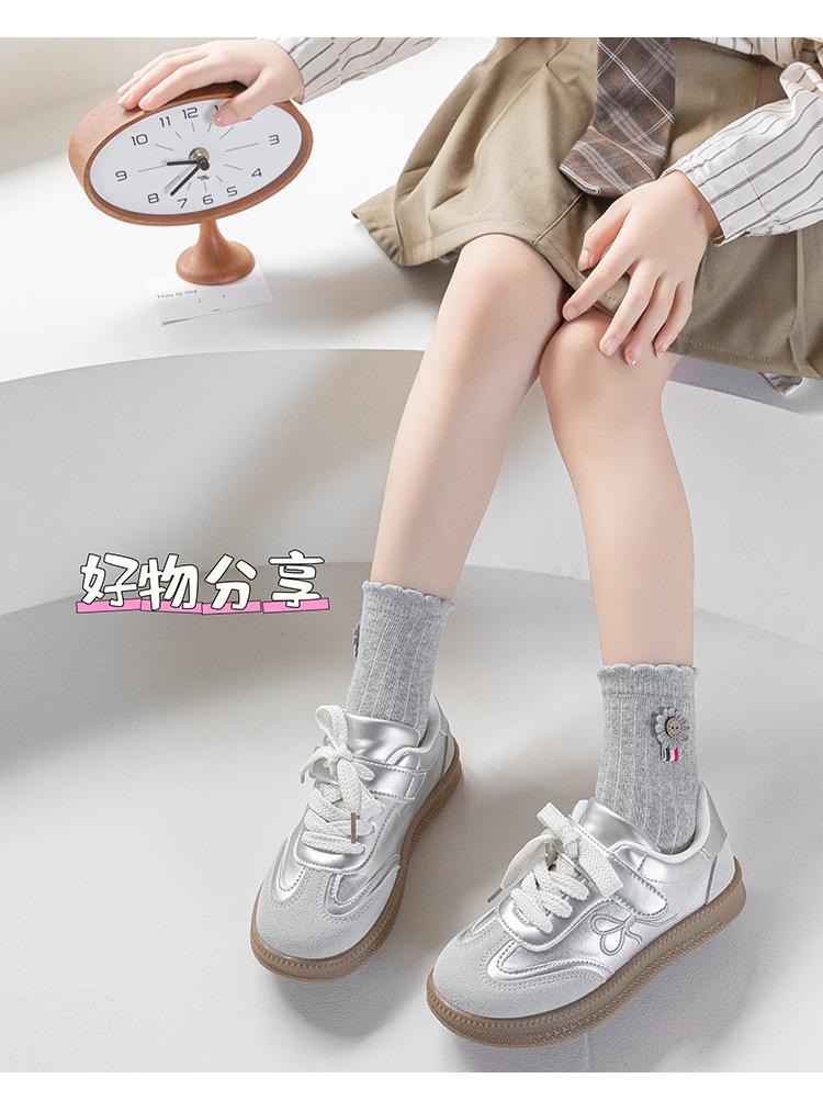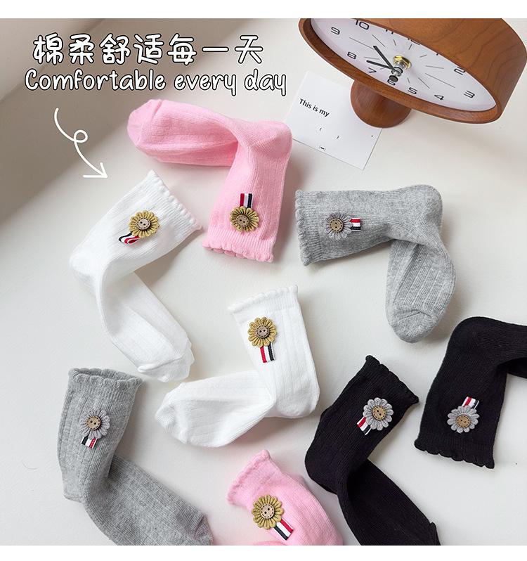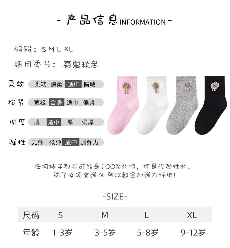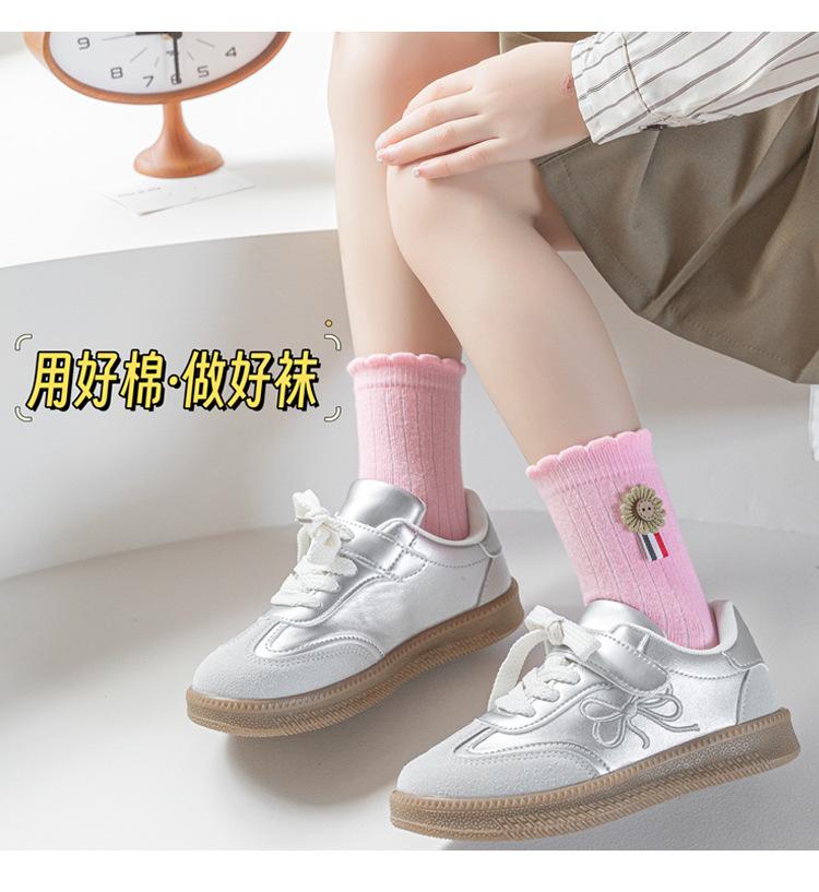 Meias infantis Meias de cano médio Primavera e Outono Meias esportivas finas com botões de desenho animado Meias curtas Meias brancas estilo inglês para alunos do ensino fundamental