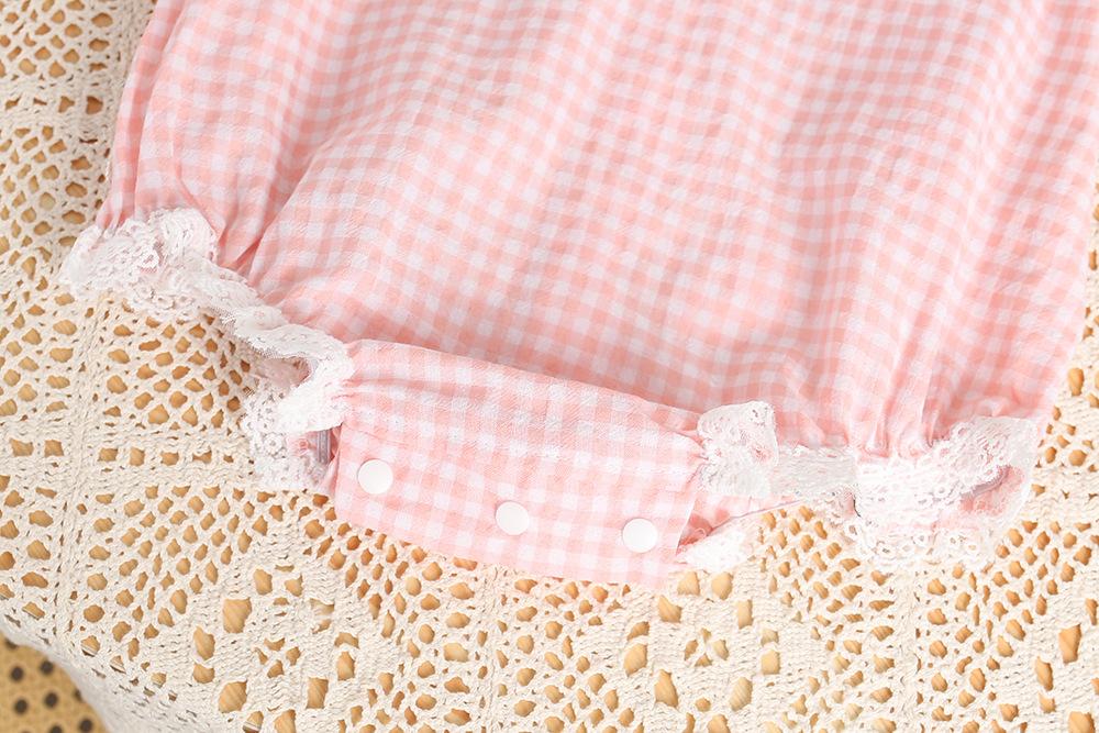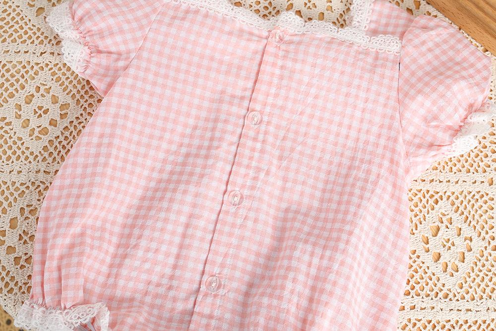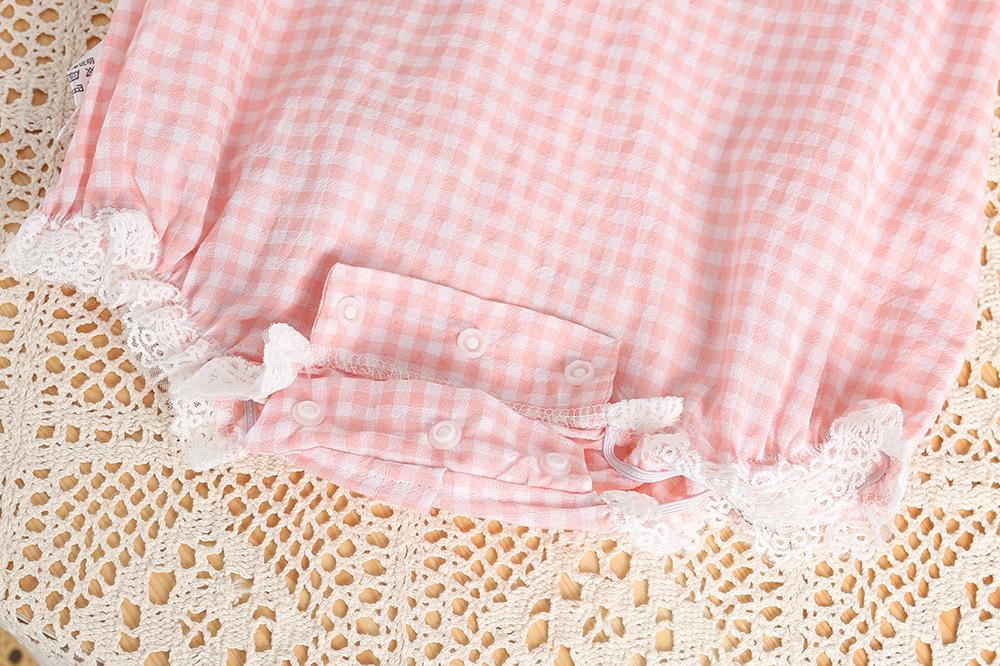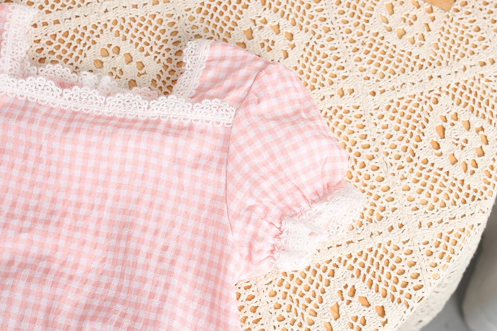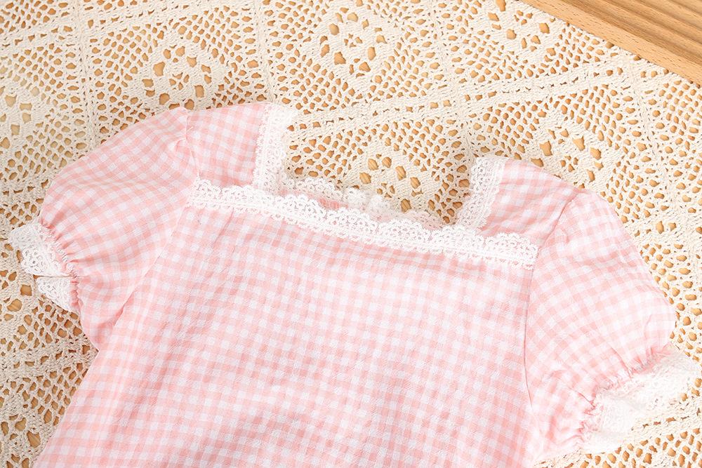 Pink [Pink Plaid Hair Belt Short Sleeve] (Bag Fart)