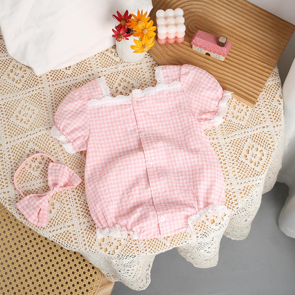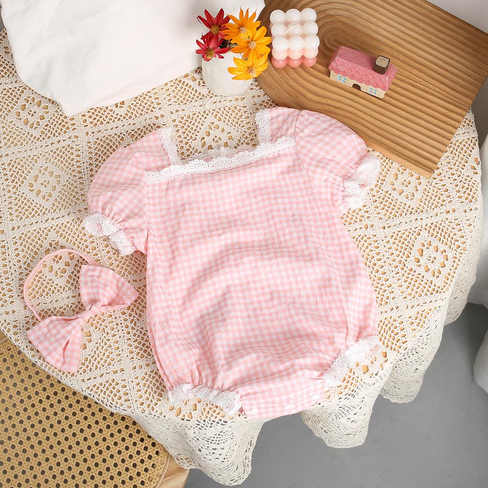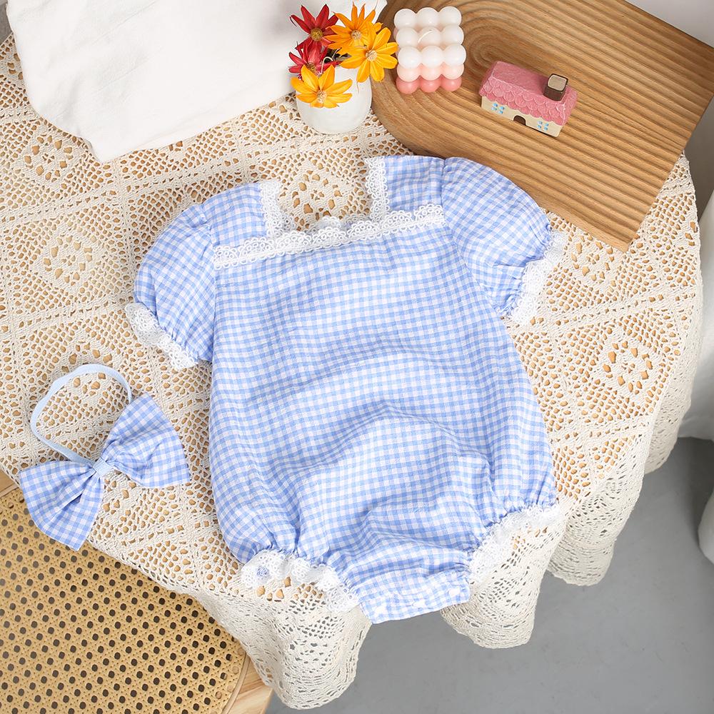 Pink [Pink Plaid Hair Belt Short Sleeve] (Bag Fart), Blue [blue plaid hair strap short sleeve] (package fart clothes)