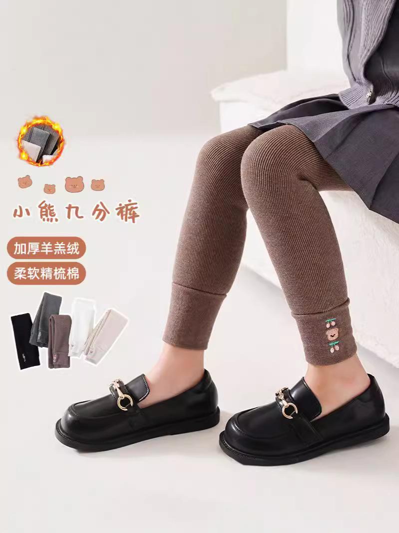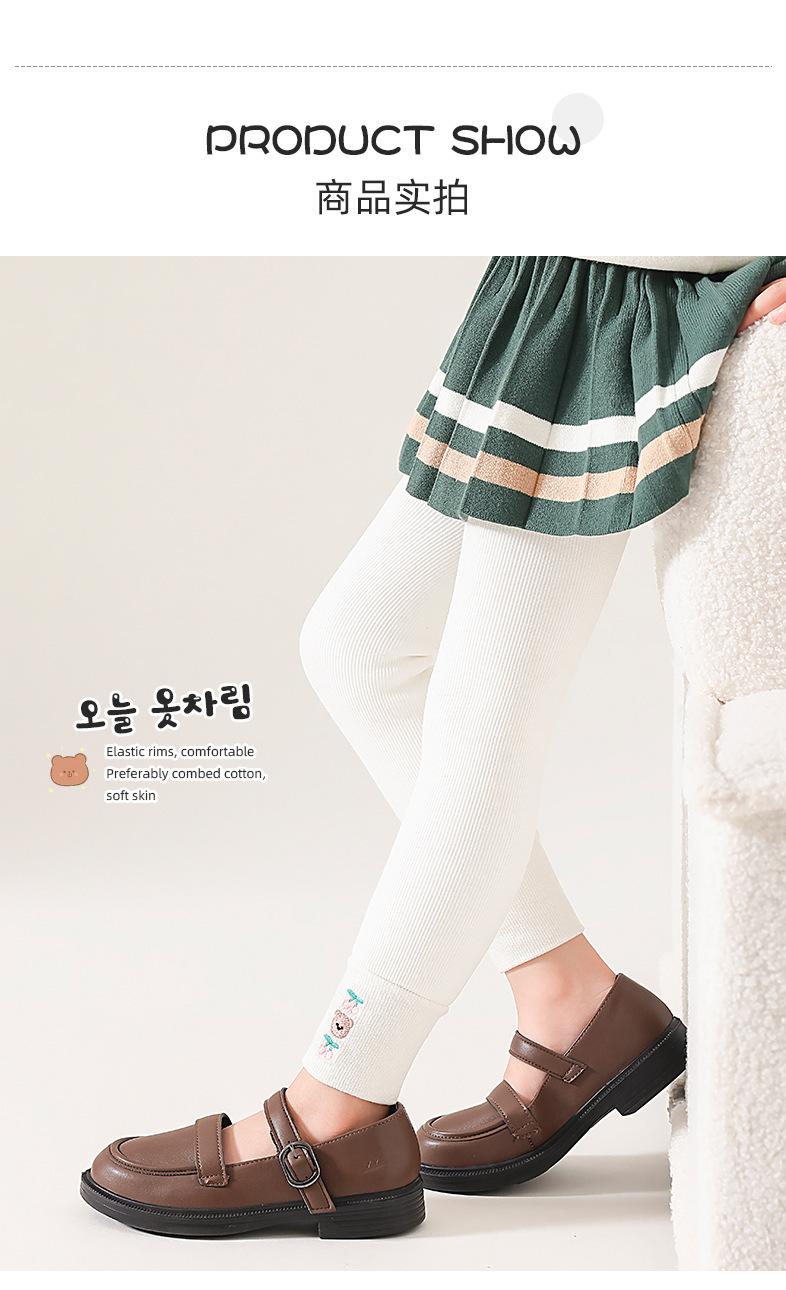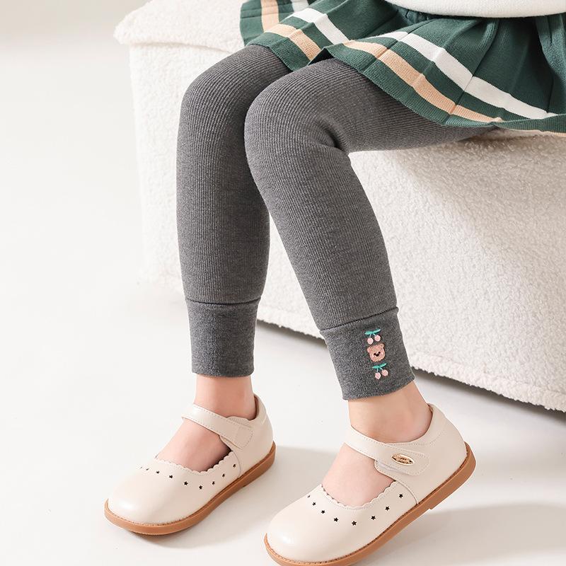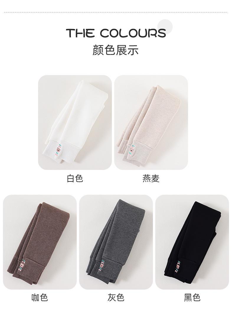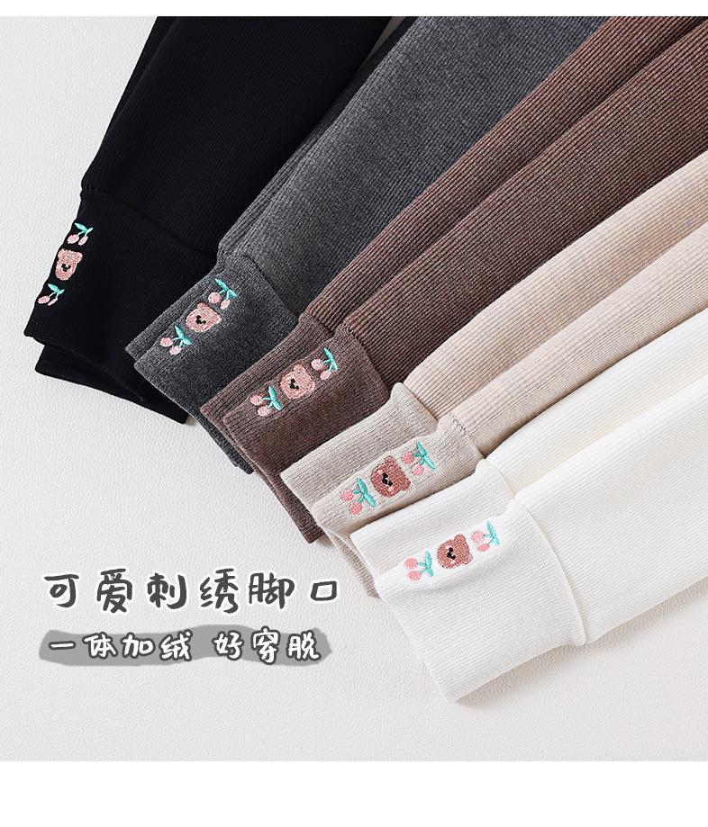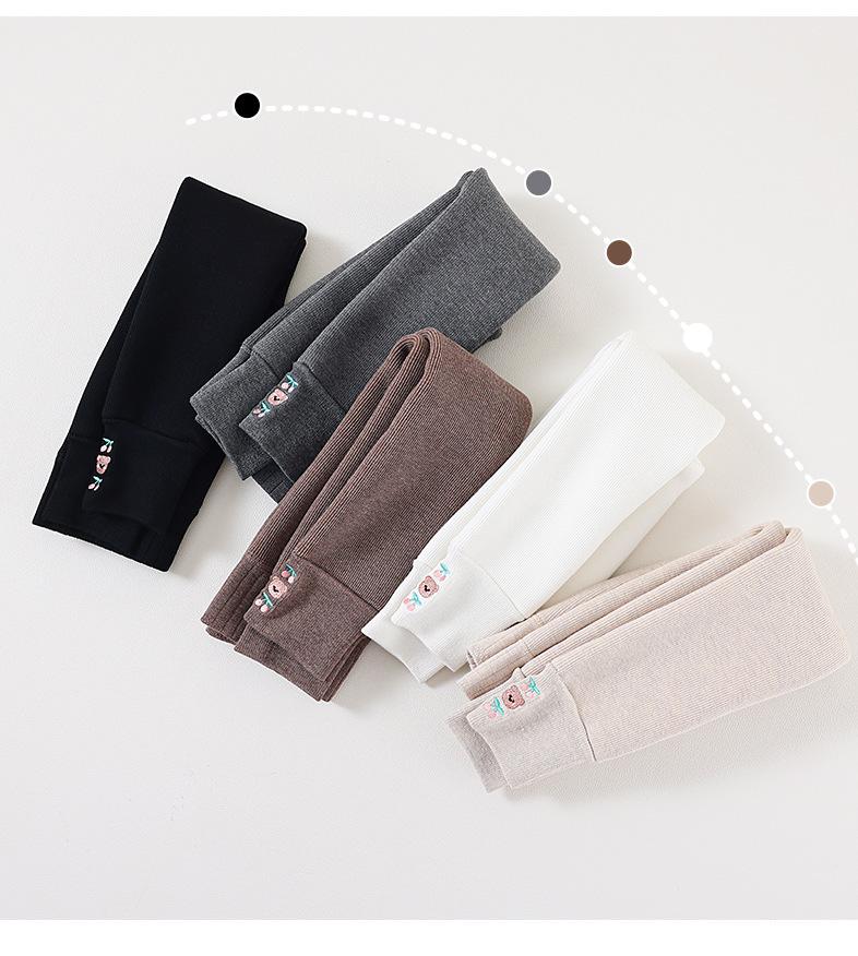 24 Meninas Tornozelo-comprimento Calças forrado de lã Engrossado Outono e Inverno Quente Meia-calça Infantil Bordado Urso Cor Sólida Leggings Infantis