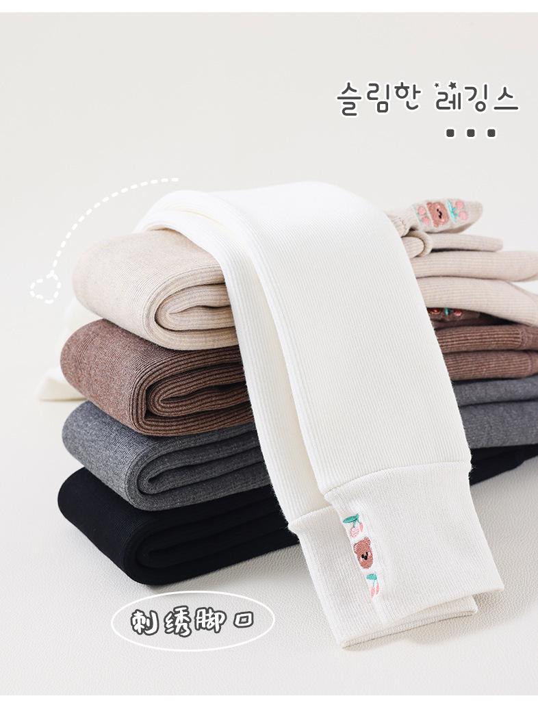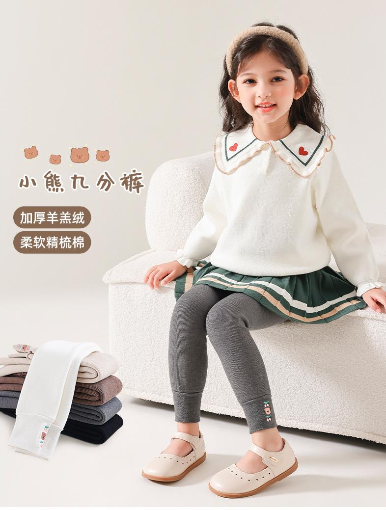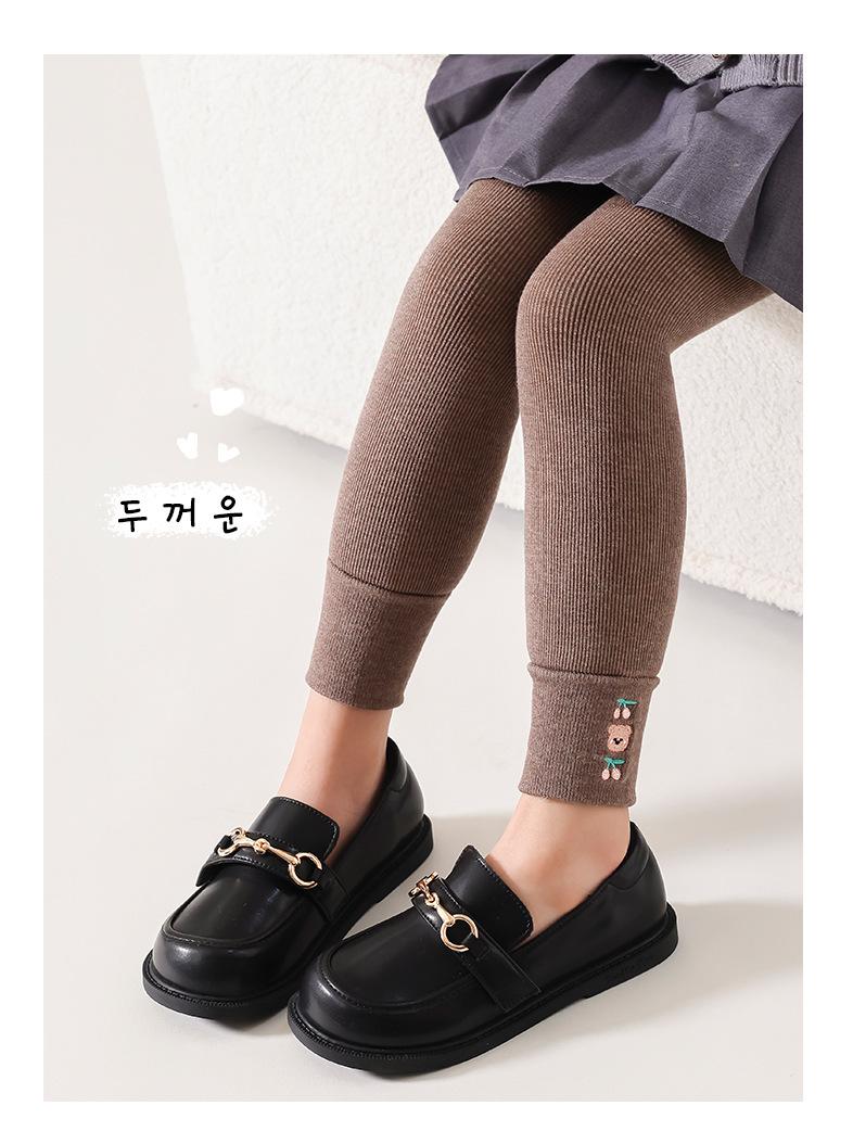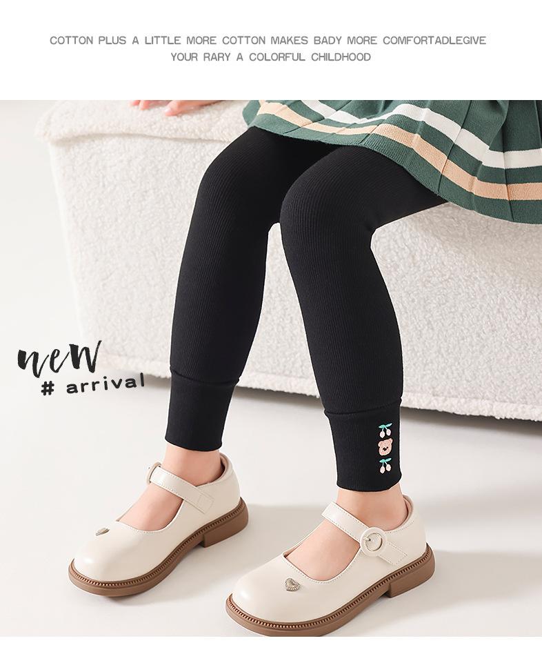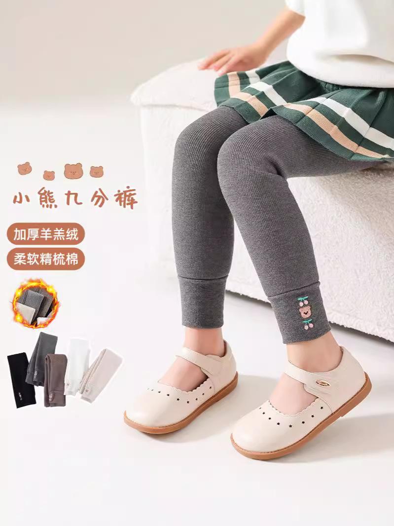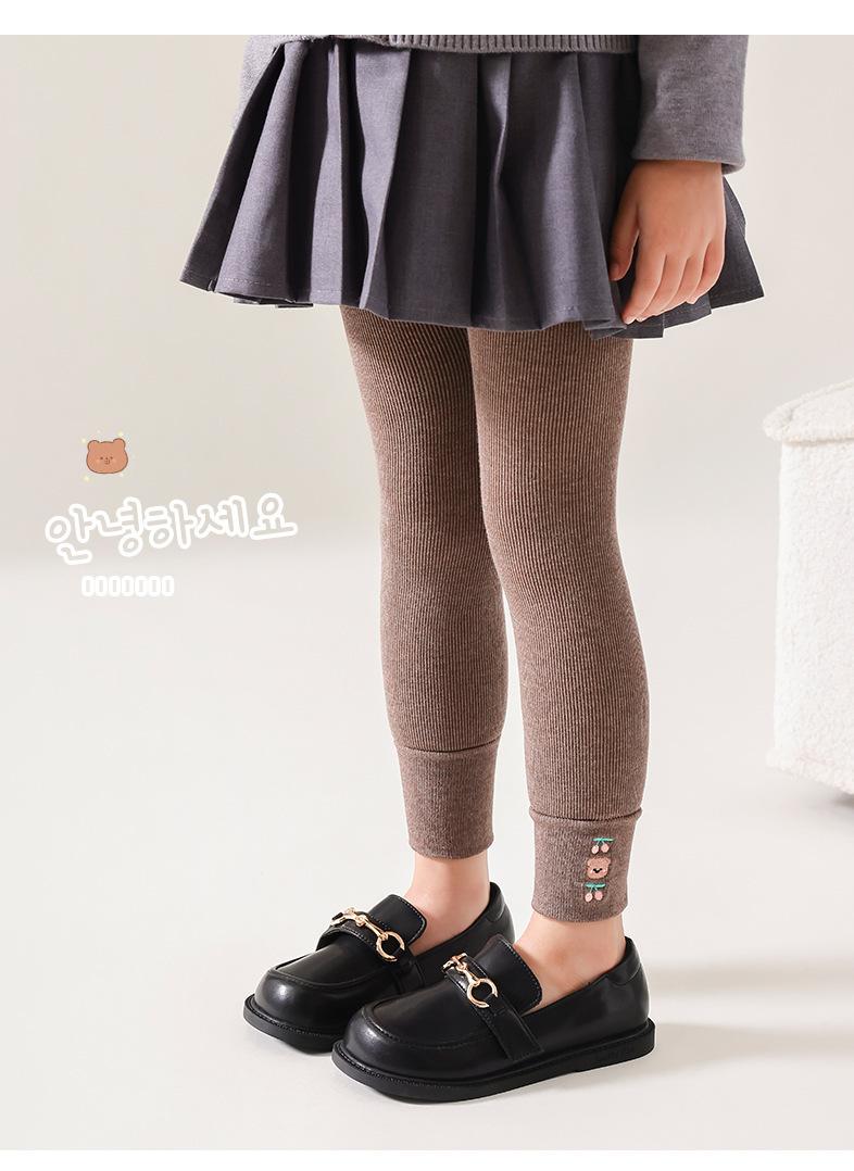 24 Meninas Tornozelo-comprimento Calças forrado de lã Engrossado Outono e Inverno Quente Meia-calça Infantil Bordado Urso Cor Sólida Leggings Infantis