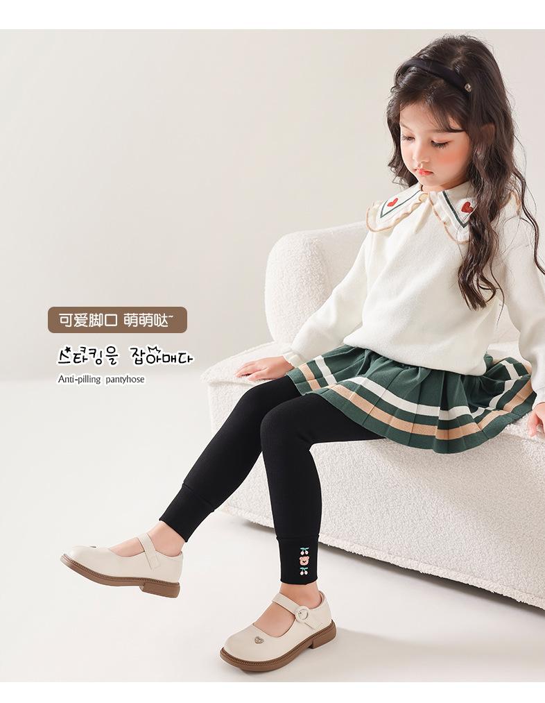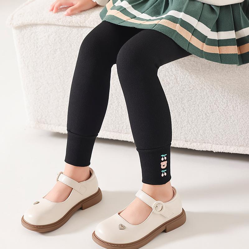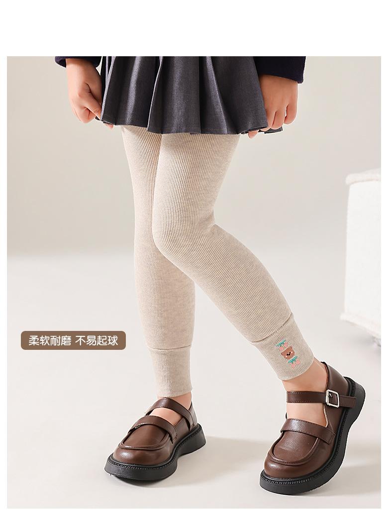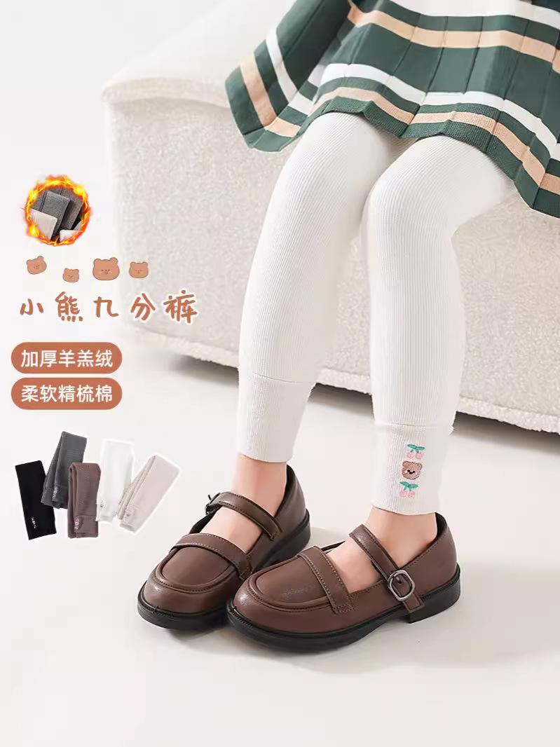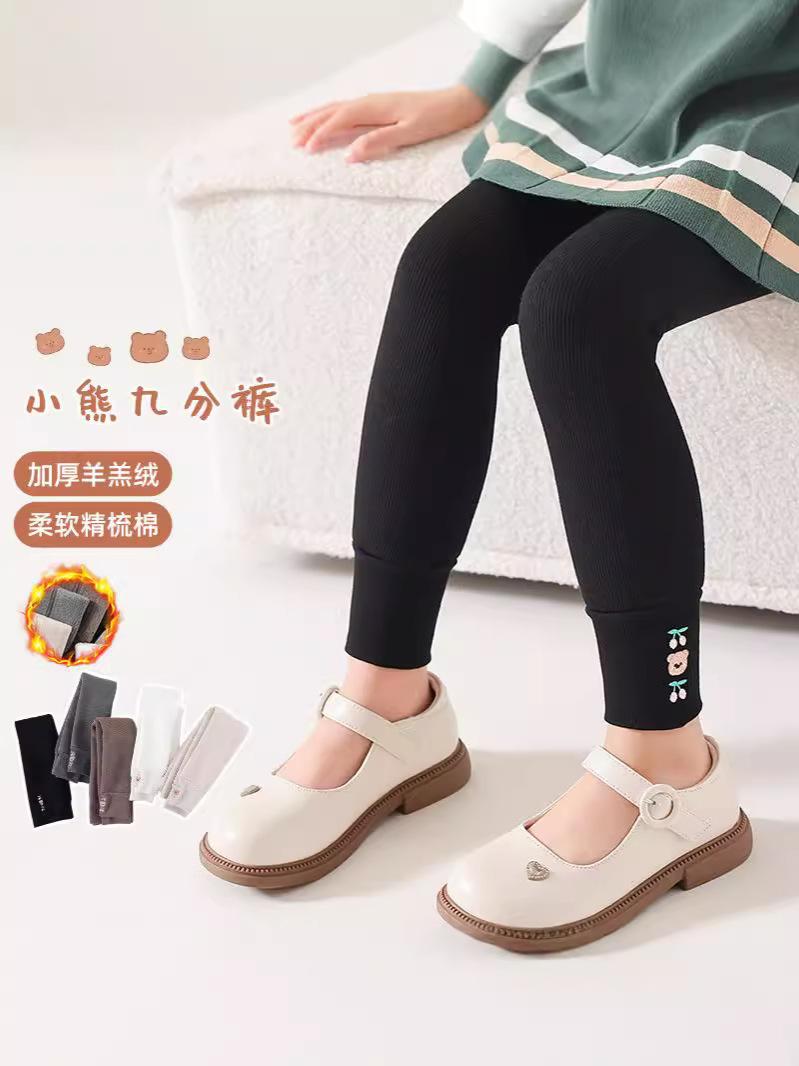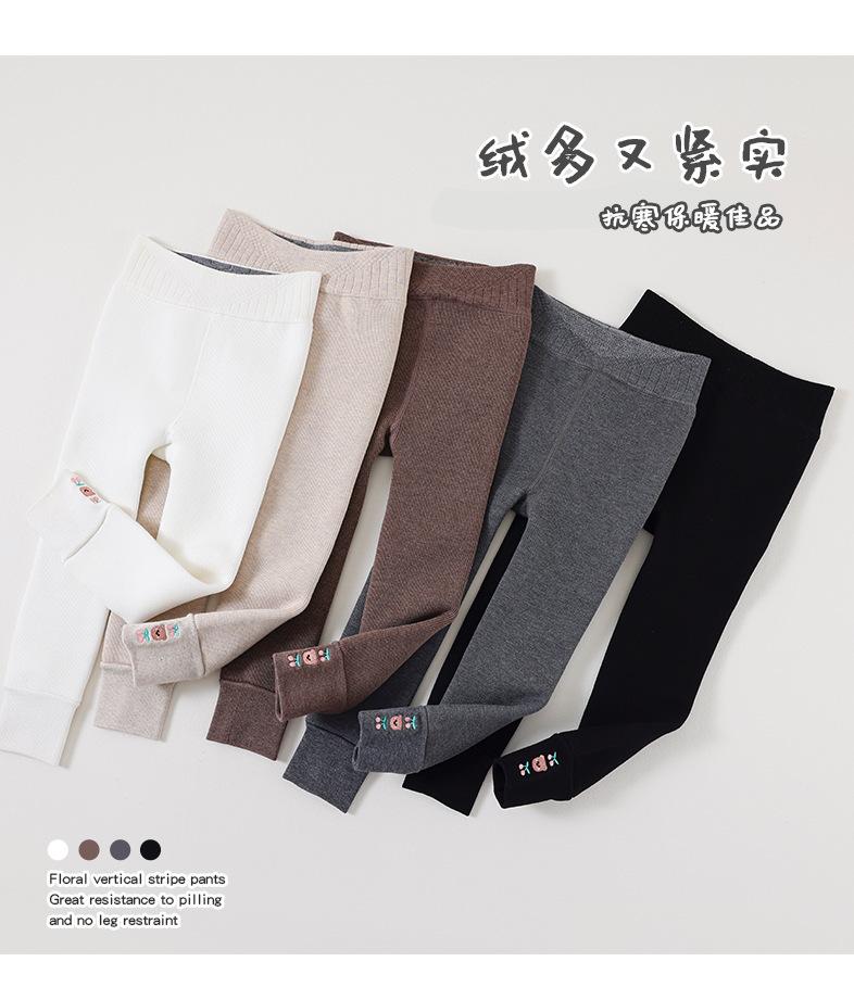 24 Meninas Tornozelo-comprimento Calças forrado de lã Engrossado Outono e Inverno Quente Meia-calça Infantil Bordado Urso Cor Sólida Leggings Infantis