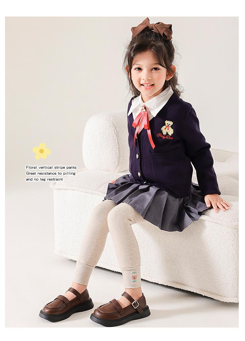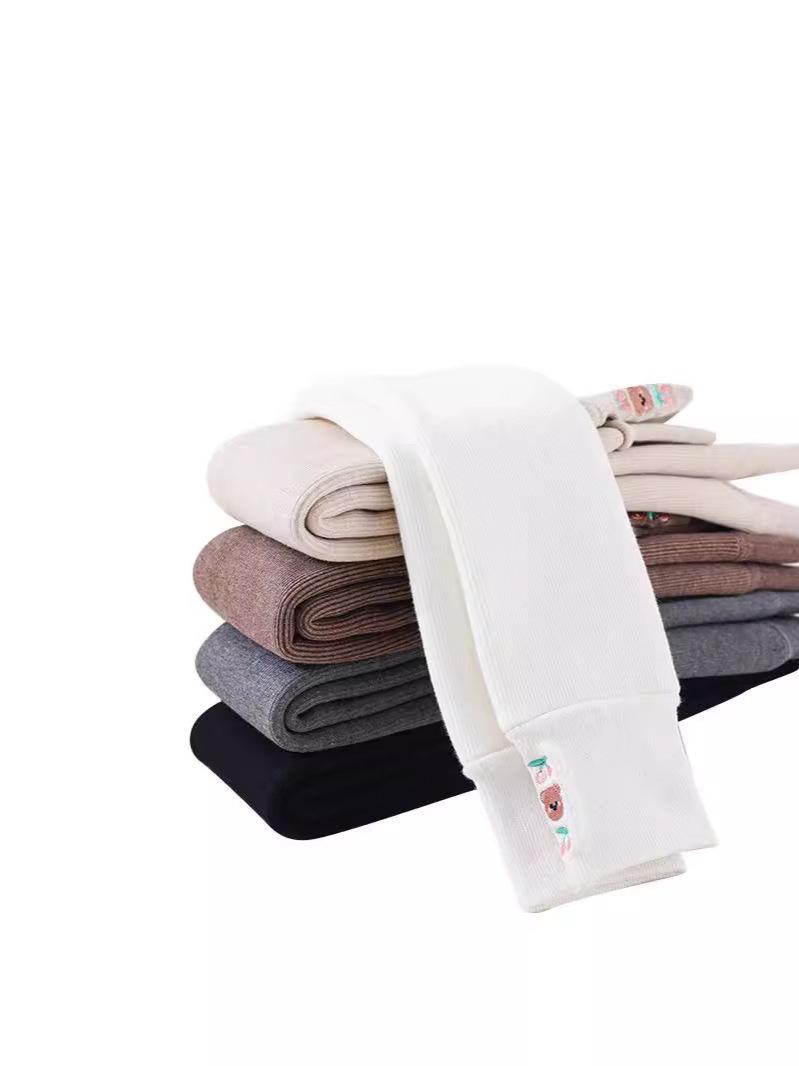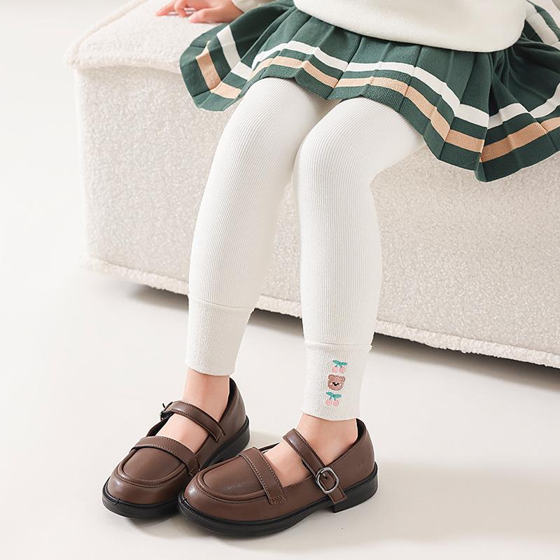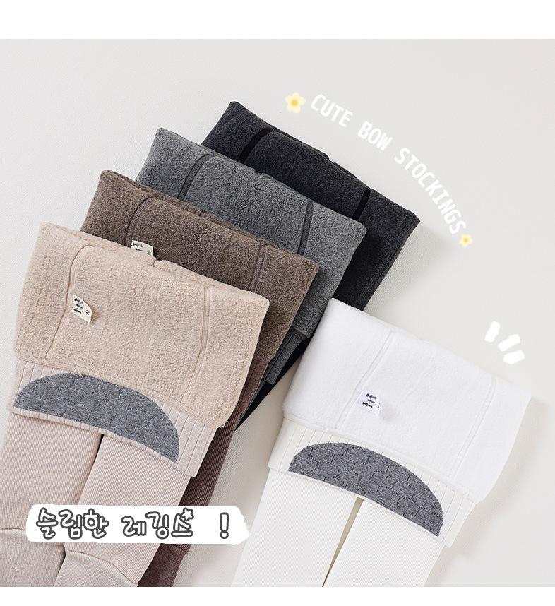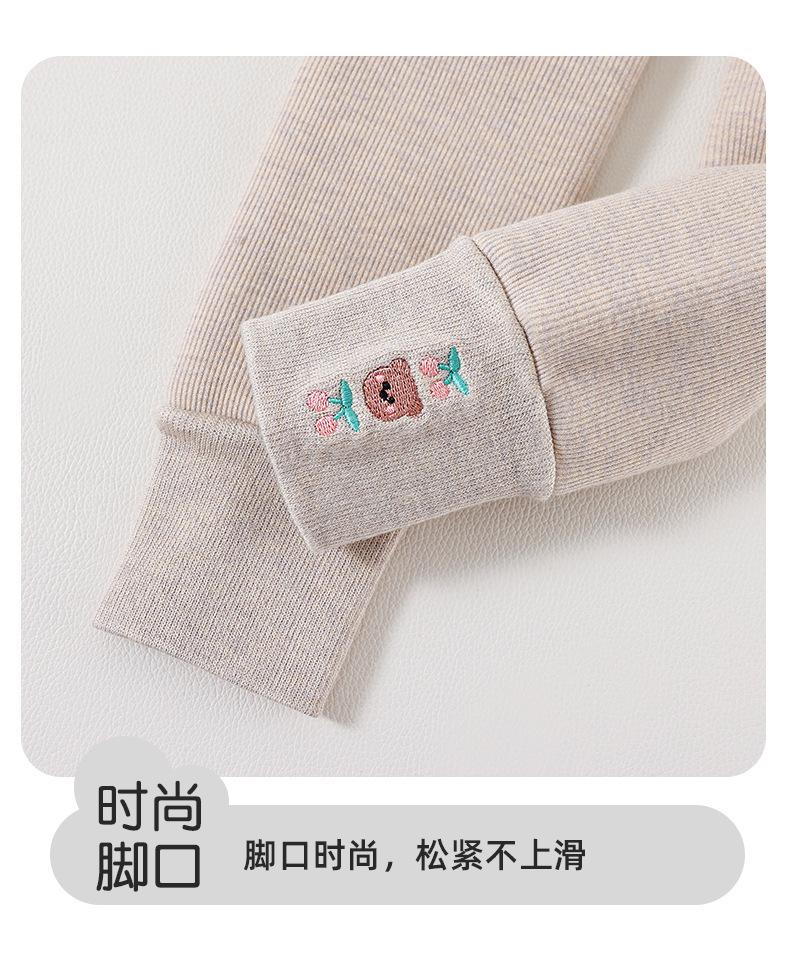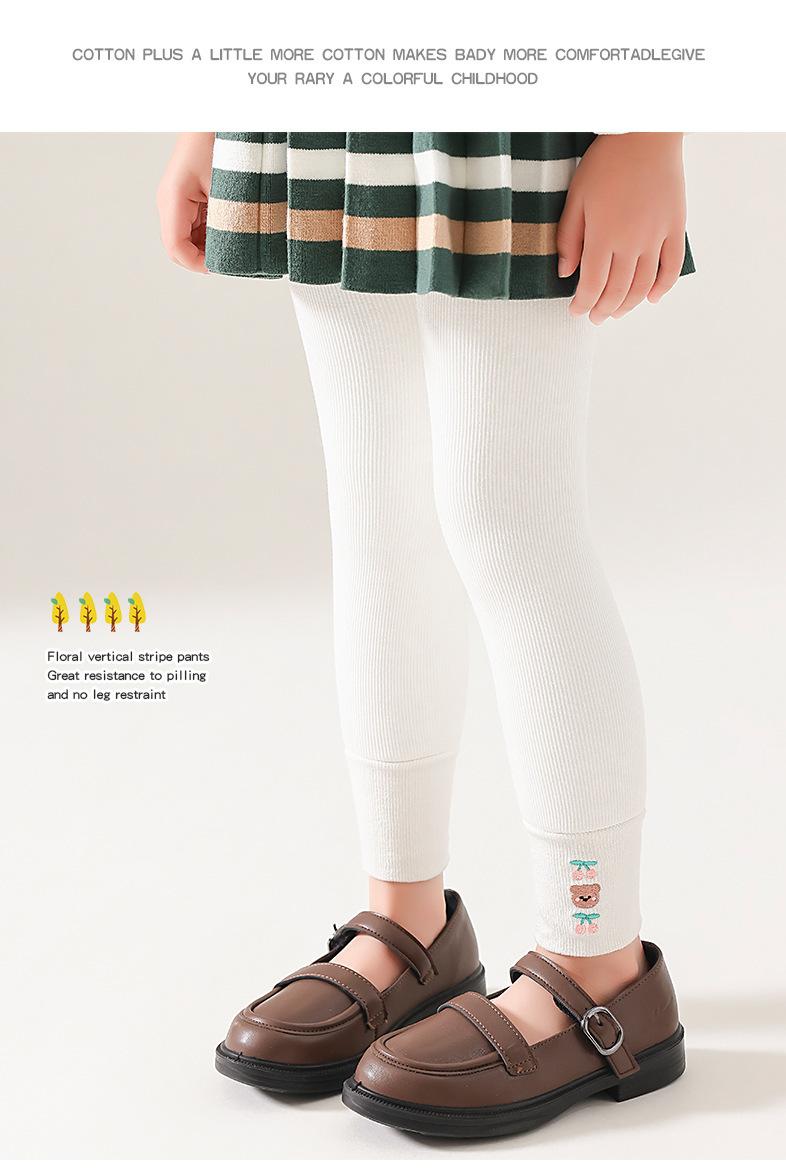 24 Meninas Tornozelo-comprimento Calças forrado de lã Engrossado Outono e Inverno Quente Meia-calça Infantil Bordado Urso Cor Sólida Leggings Infantis
