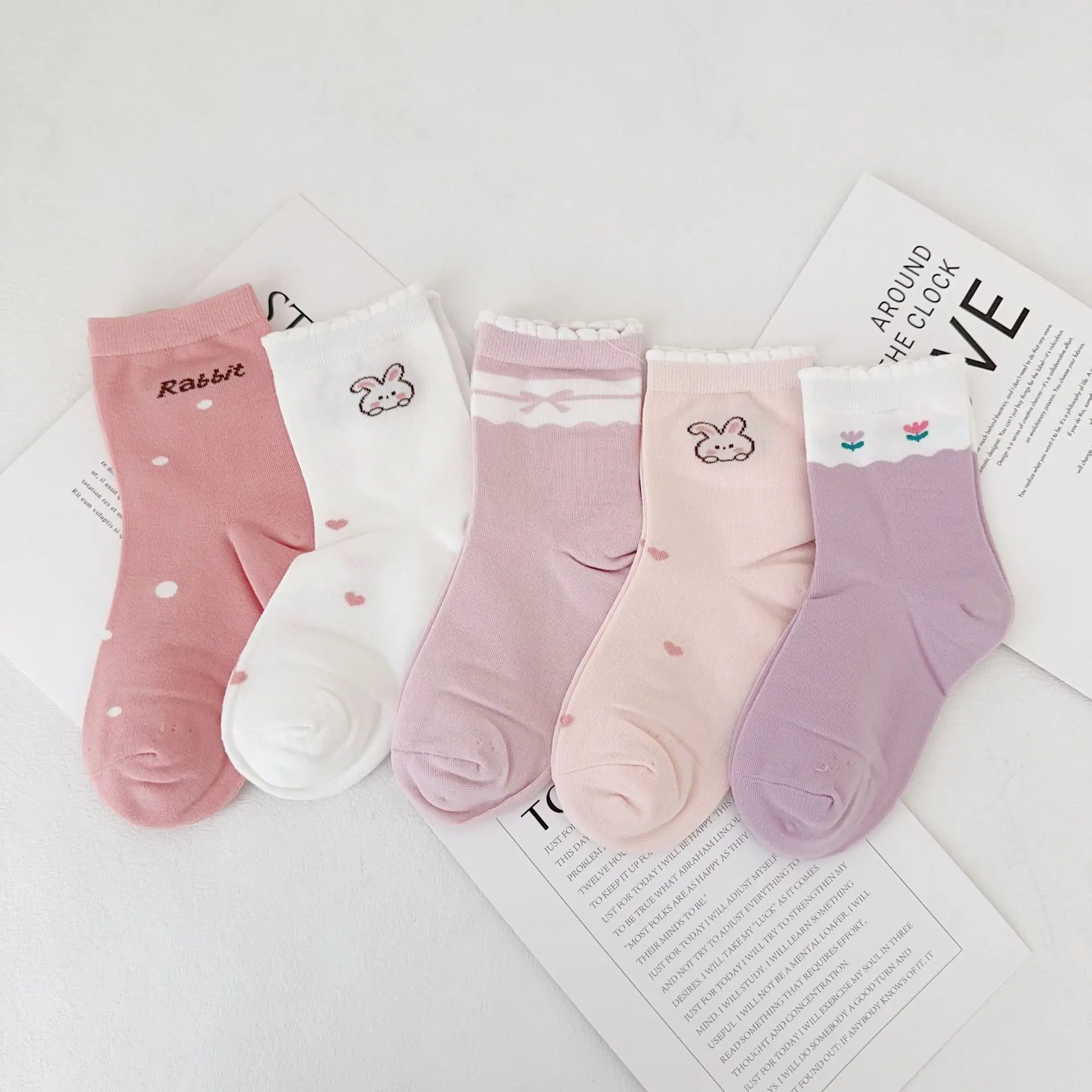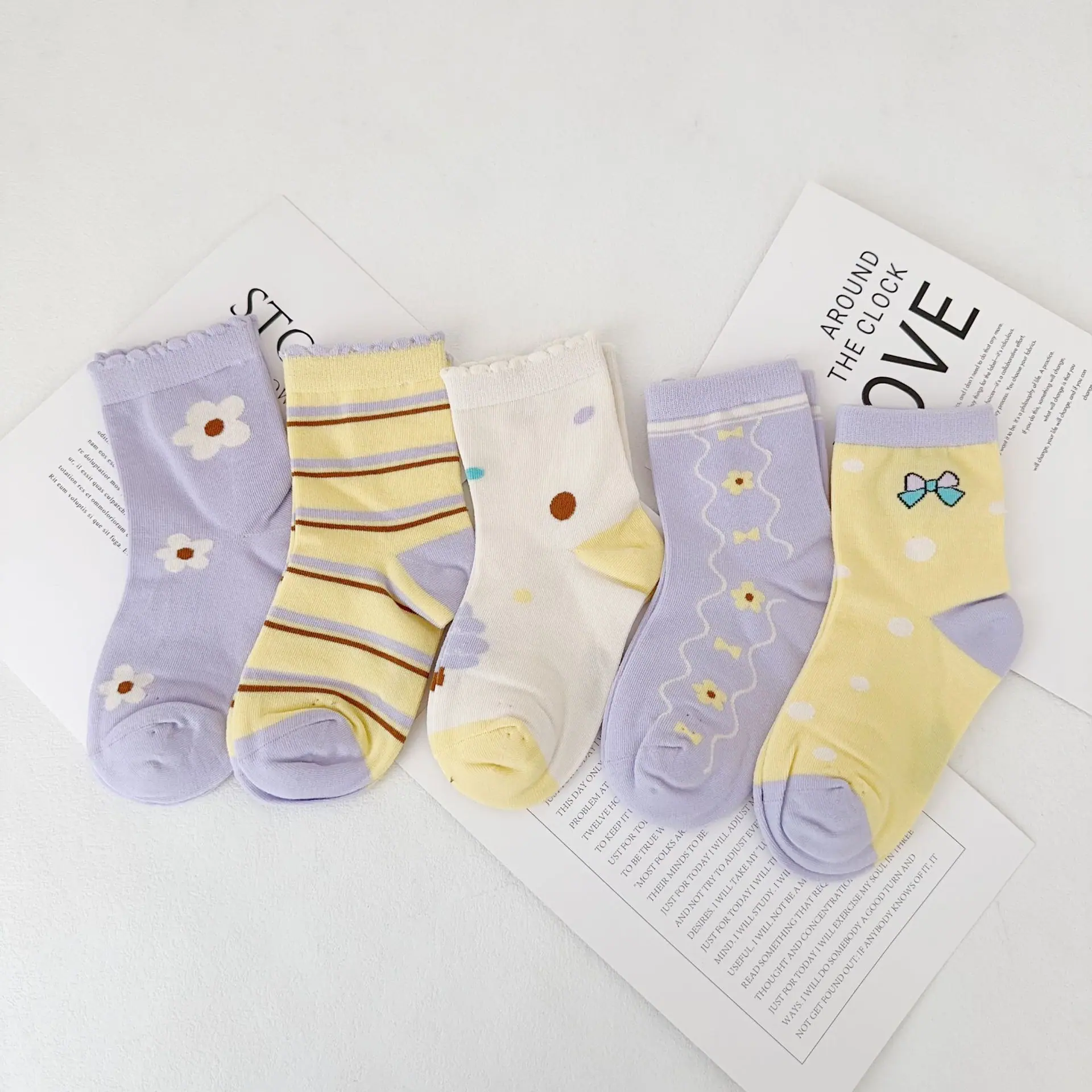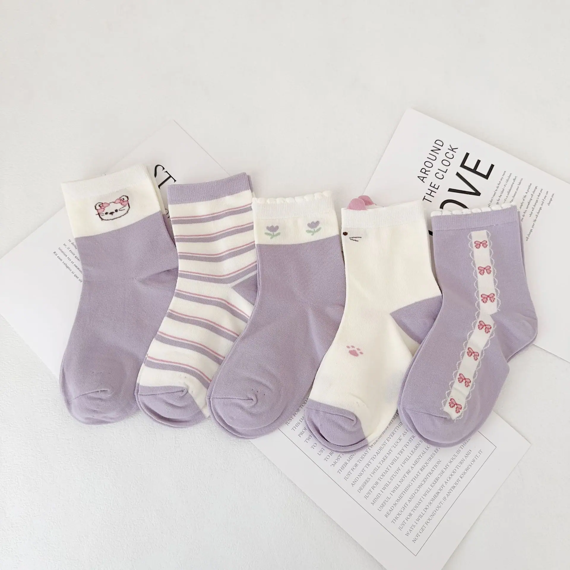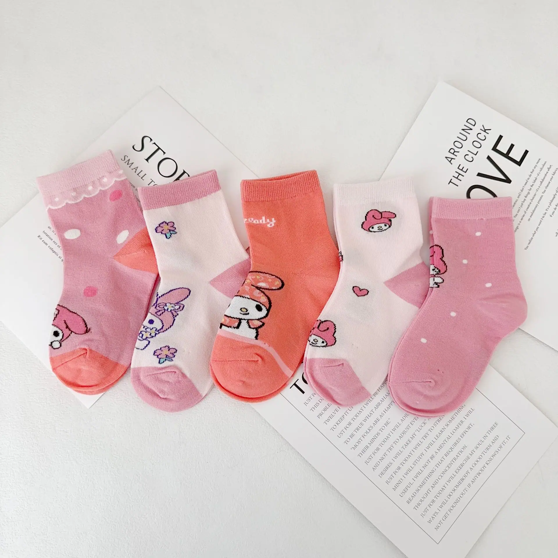 Compre Yi par de meias infantis outono e inverno novo desenho animado kulomi tubo meias de algodão penteado meninas coreanas meias de algodão desossado no atacado no Joom.pro