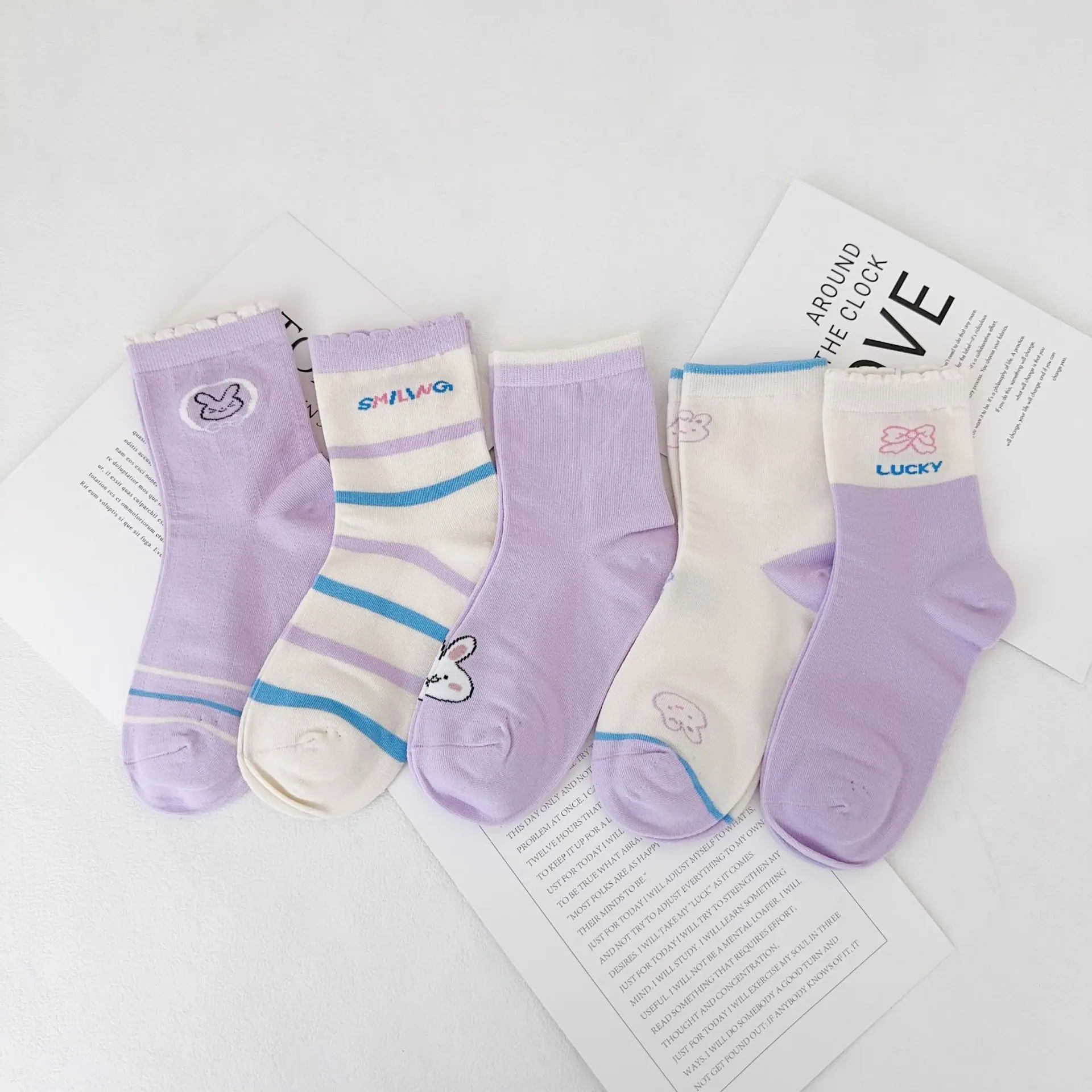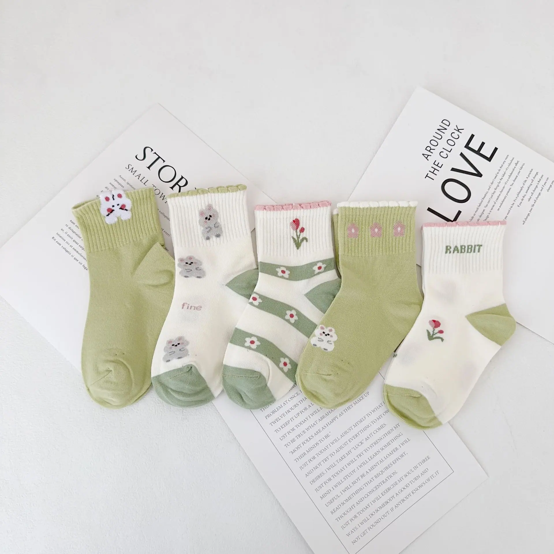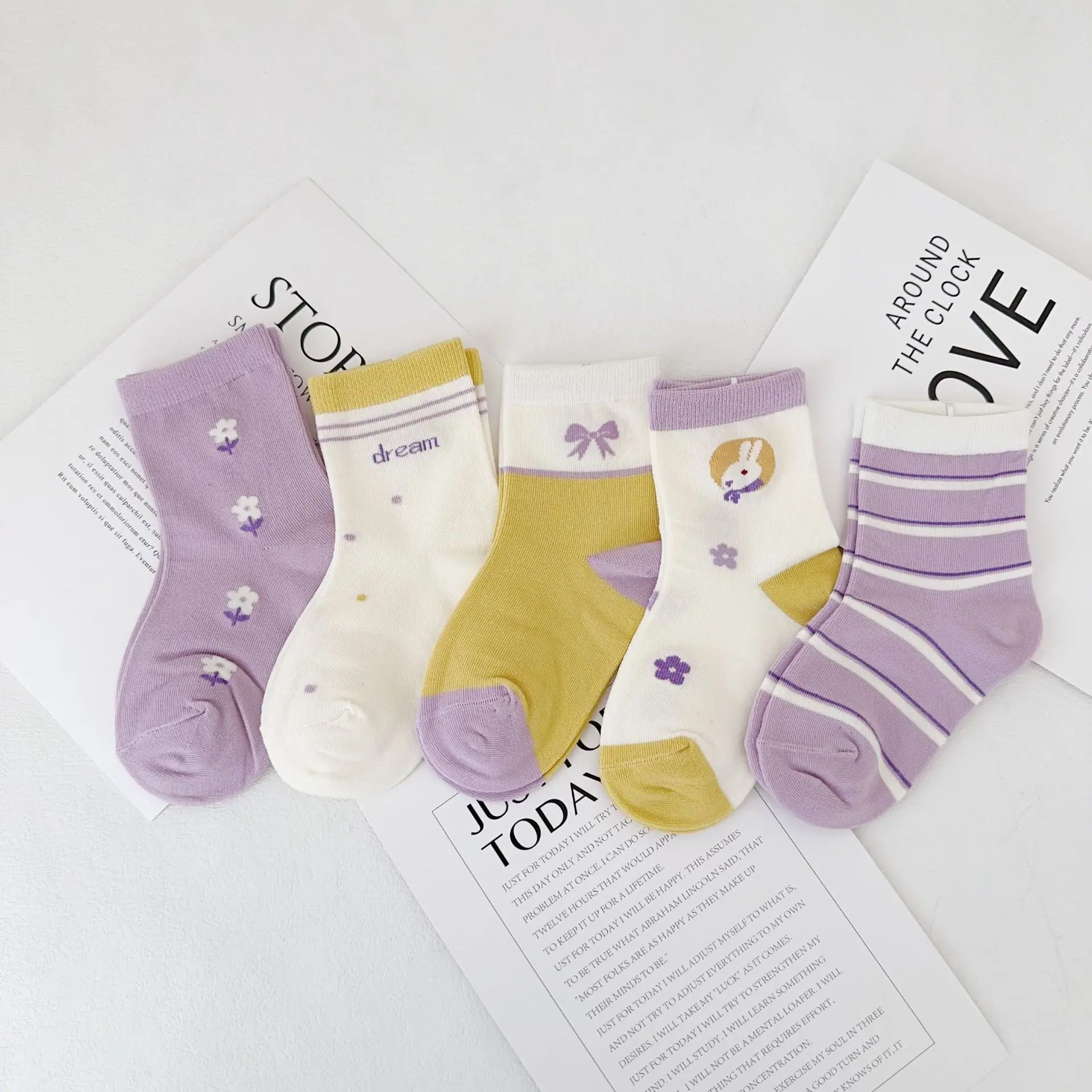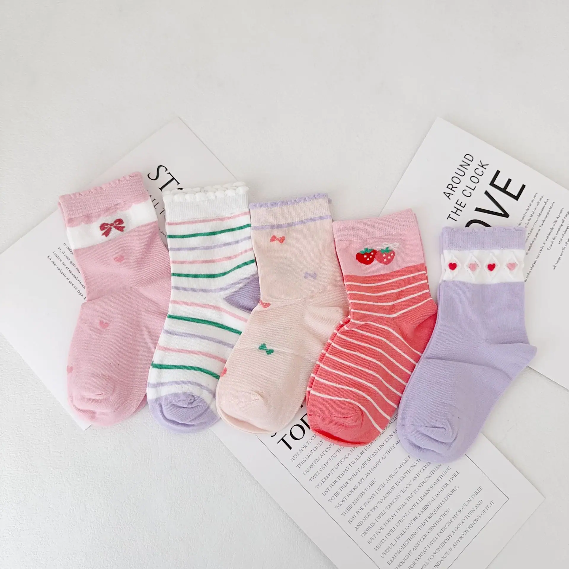 Compre Yi par de meias infantis outono e inverno novo desenho animado kulomi tubo meias de algodão penteado meninas coreanas meias de algodão desossado no atacado no Joom.pro
