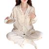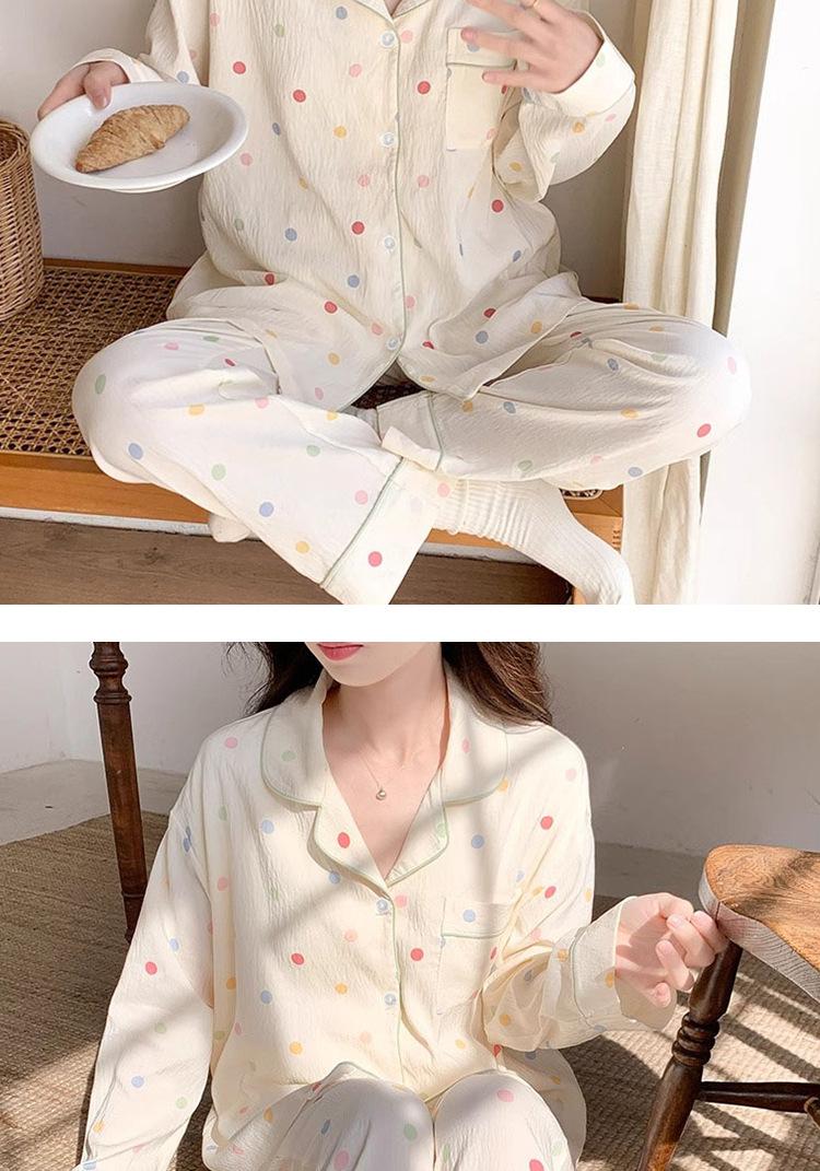 Coreano ins cor pijama de ponto de onda pequena outono das mulheres terno de manga comprida pequeno fresco roupas de casa terno solto atacado