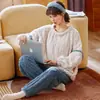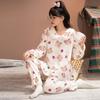 Pijamas Femininos Outono e Inverno Coral Fleece-Forrado Flanela Espessada Roupas para Casa Outono Feminino Exterior Vestindo Terno Quente