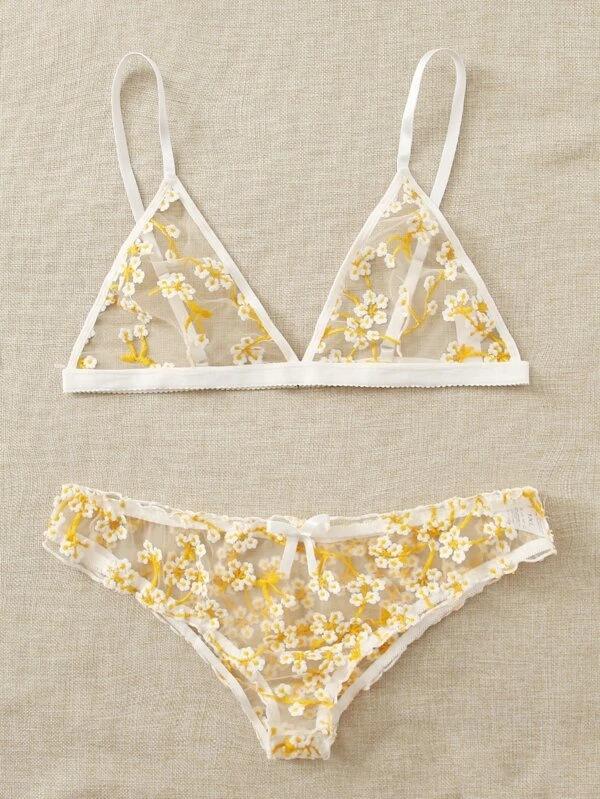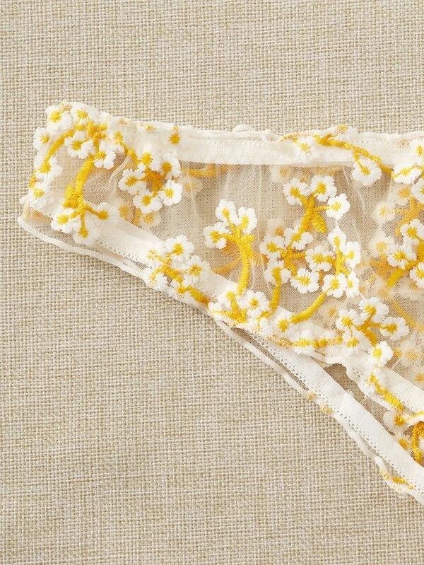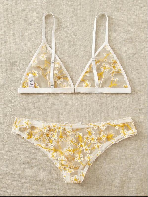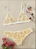 Fornecimento transfronteiriço de lingerie sexy Comércio exterior europeu e americano sexy mulheres amarelas biquíni floral pequeno terno de três pontos