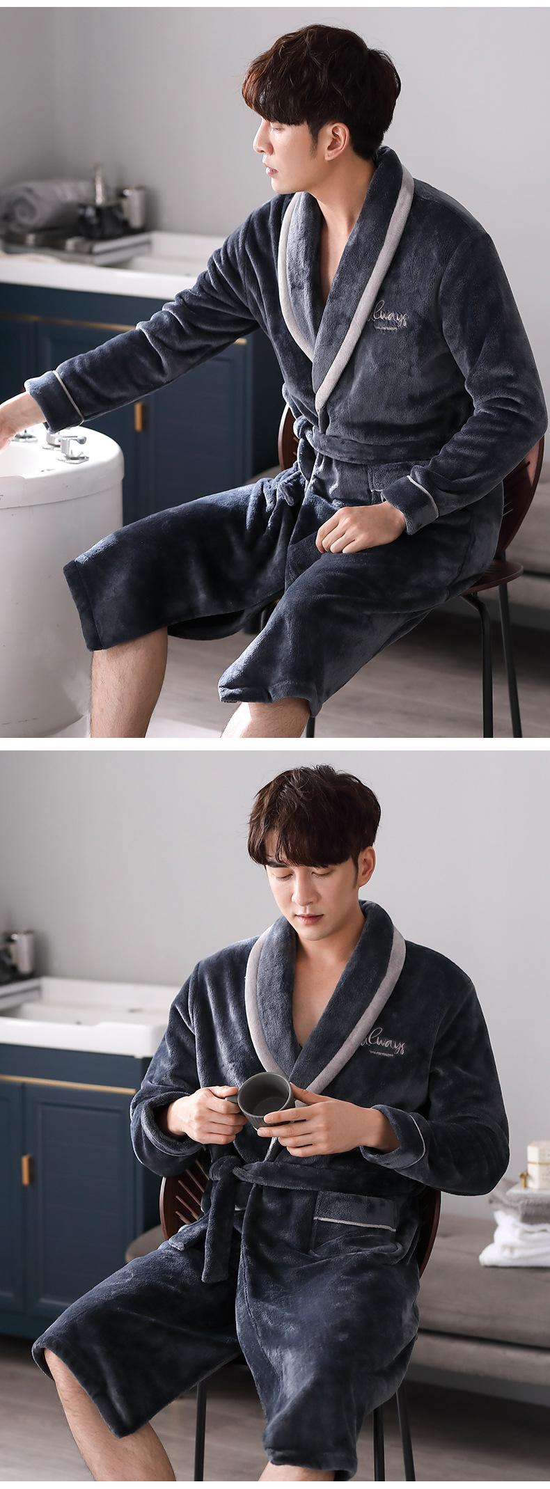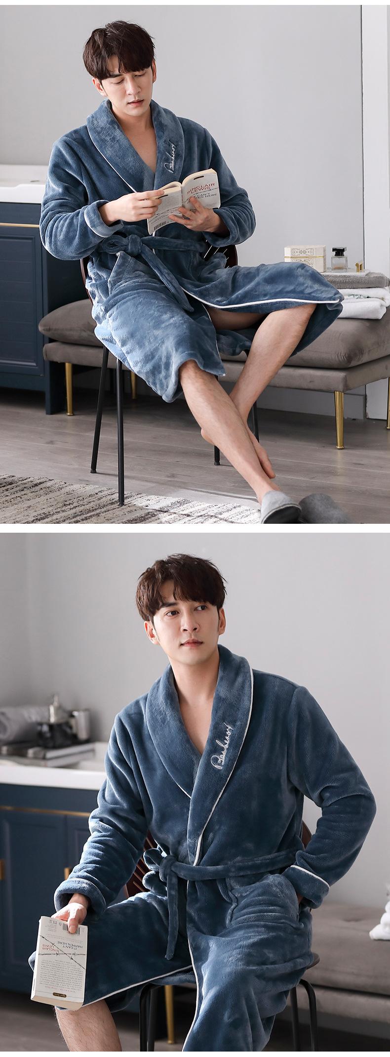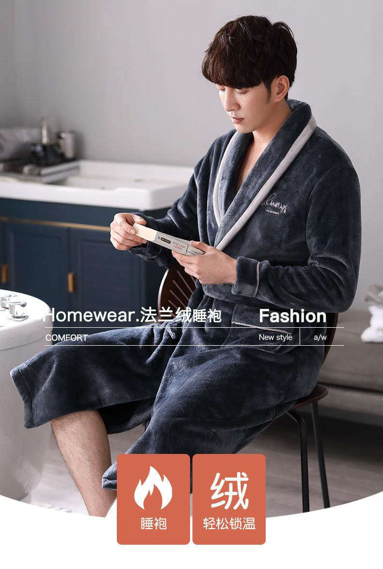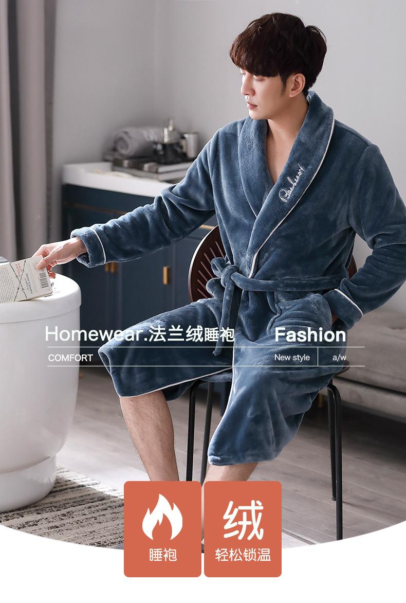 Compre Camisola masculina inverno coral velo quente engrossado pijama longo outono e inverno flanela plus size roupão de banho no atacado no Joom.pro