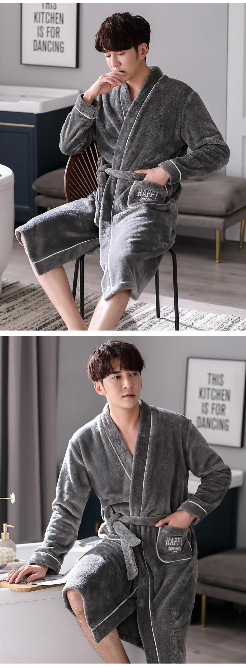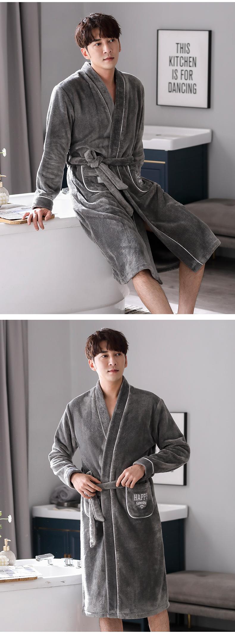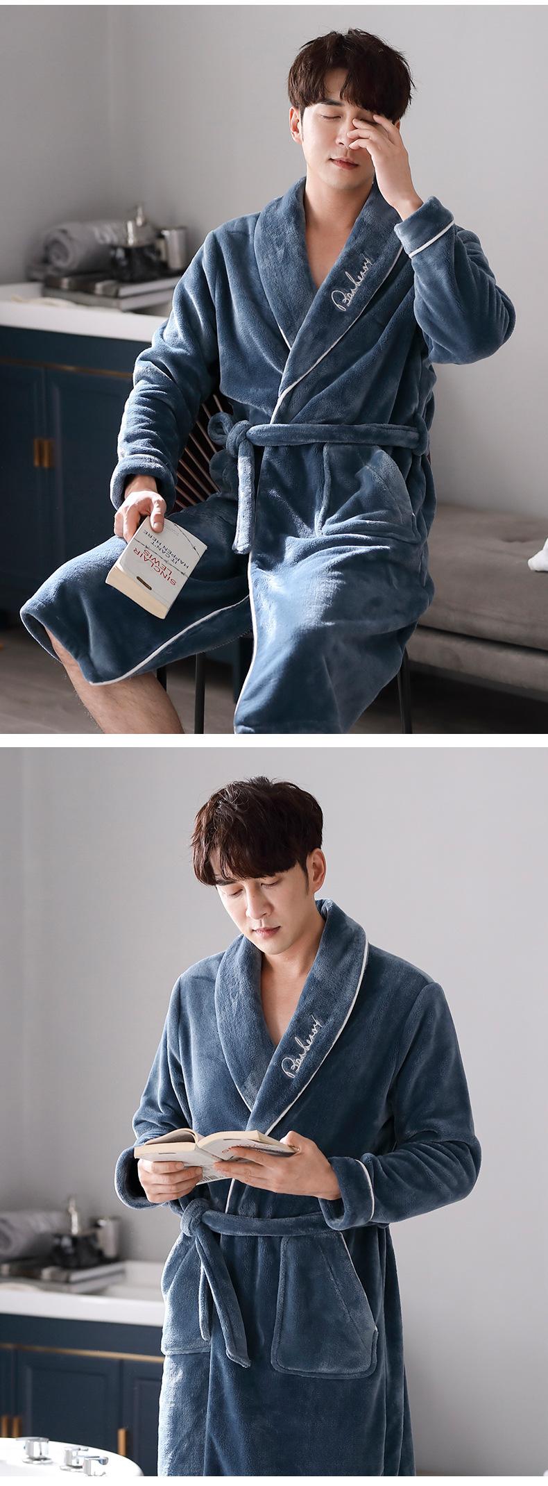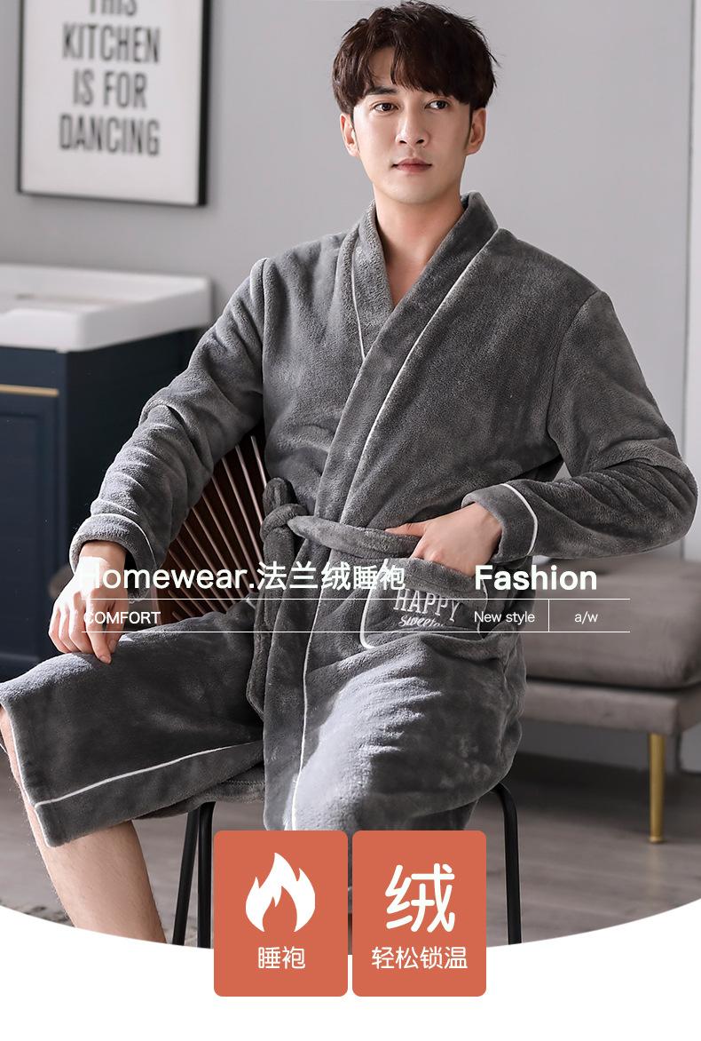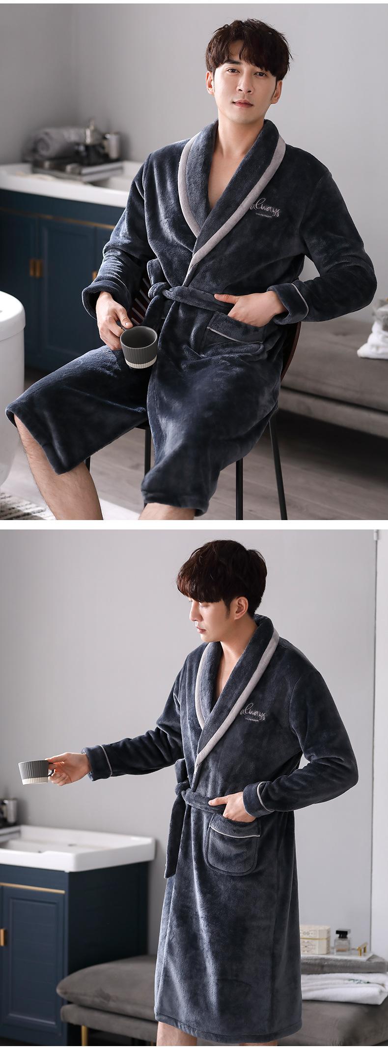 Camisola masculina inverno coral velo quente engrossado pijama longo outono e inverno flanela plus size roupão de banho
