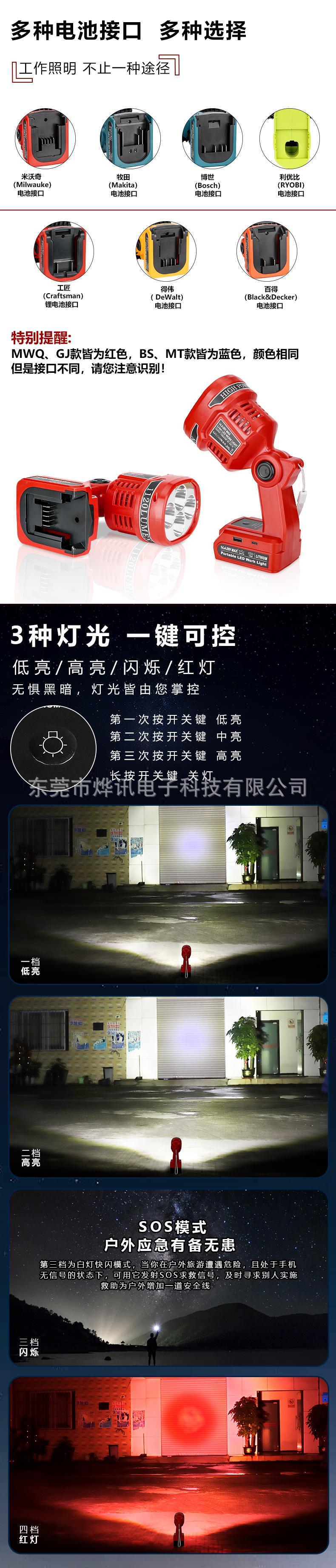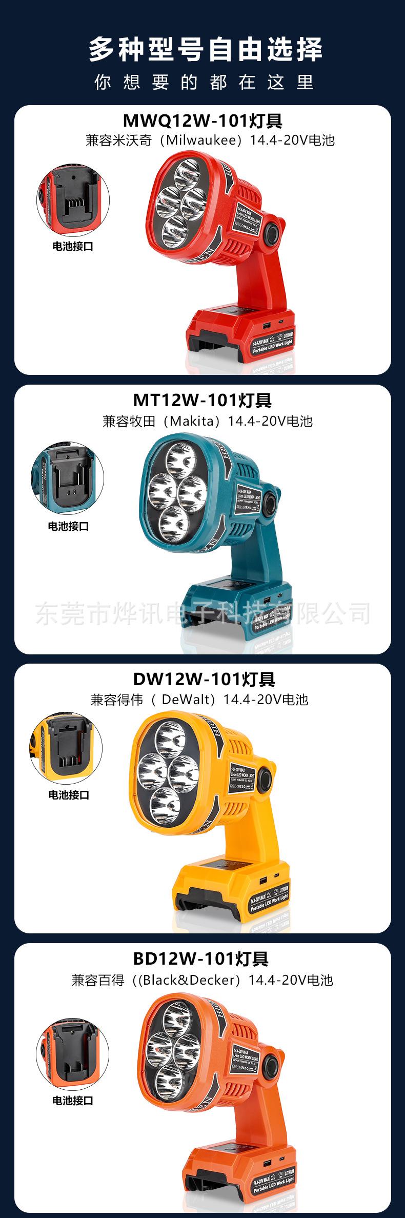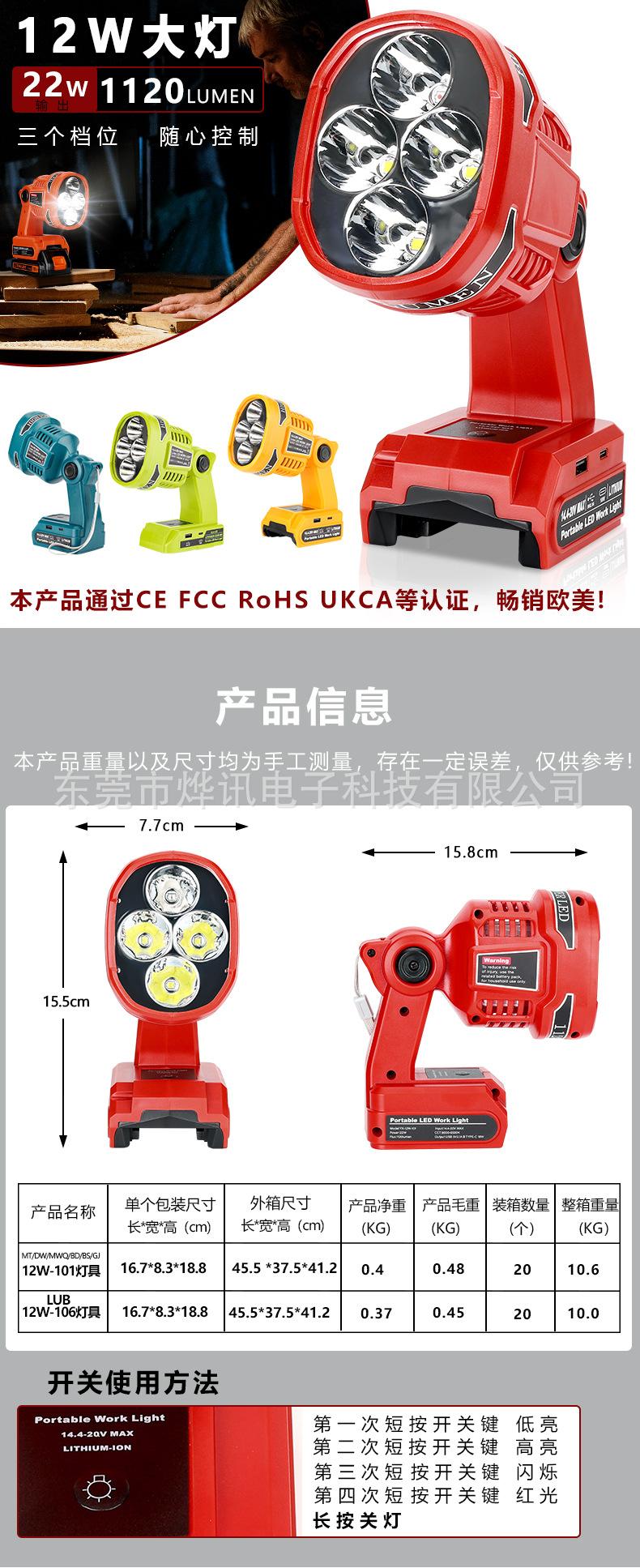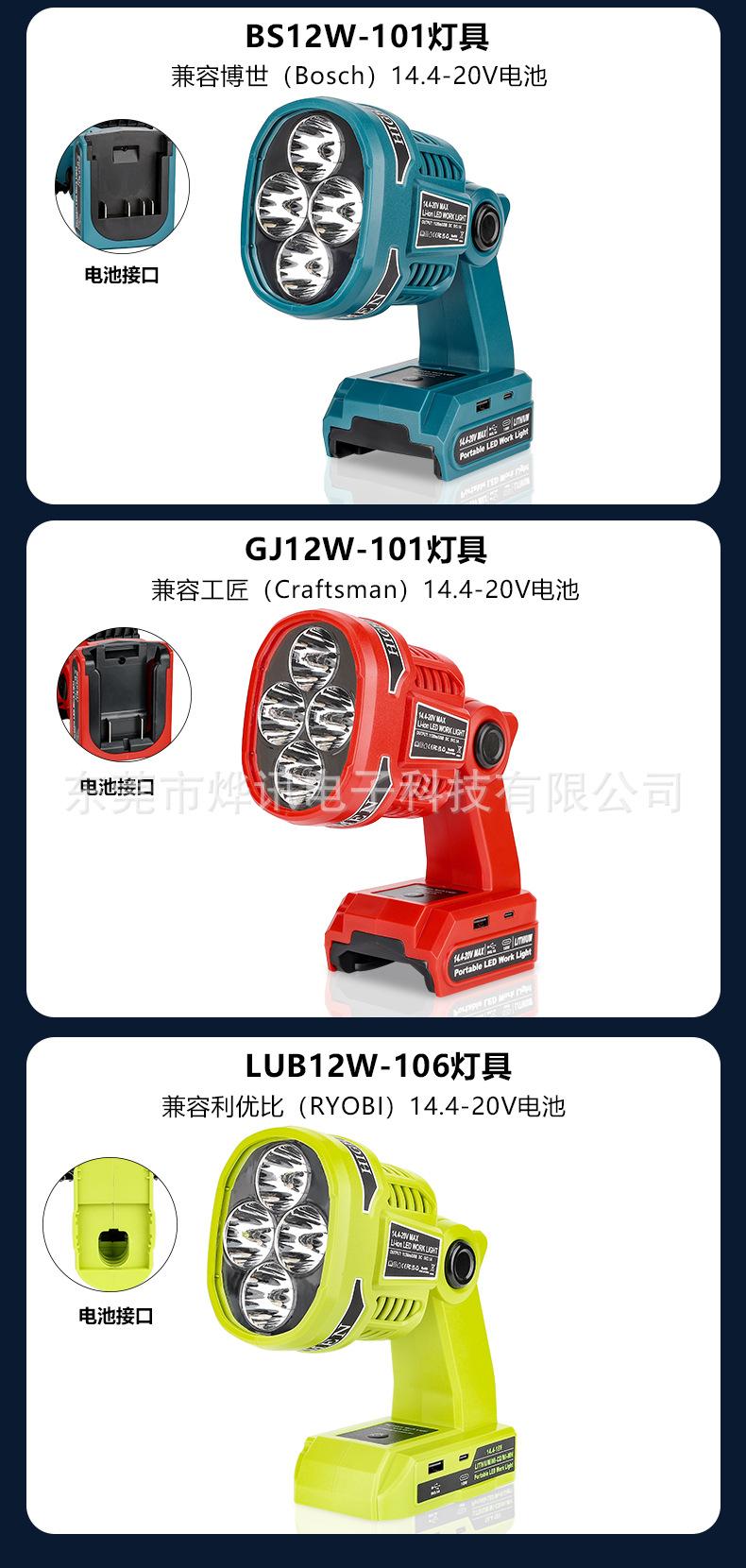 As lâmpadas de iluminação externa 12W101 são adequadas para bateria de lítio de 18-20V do artesão Makita Bosch e Dewei Baide Mivochi