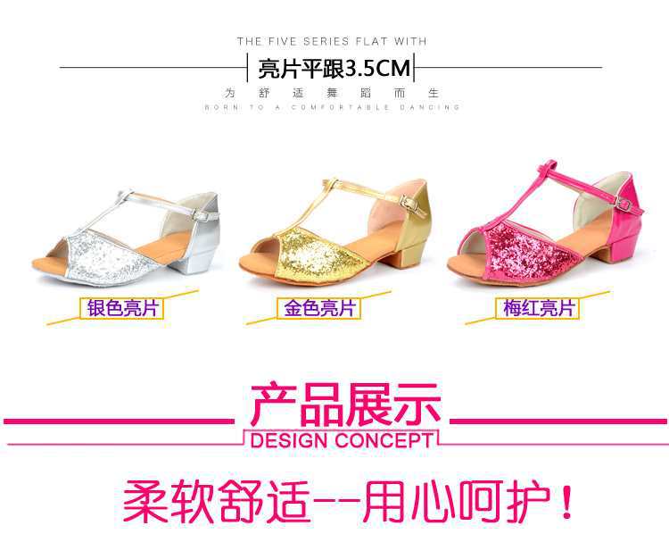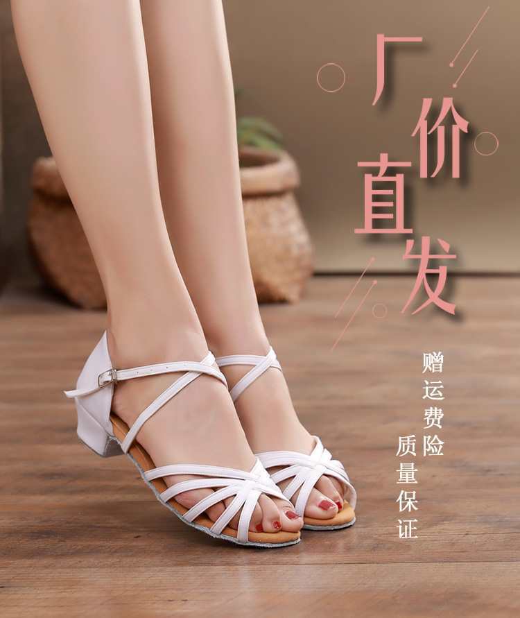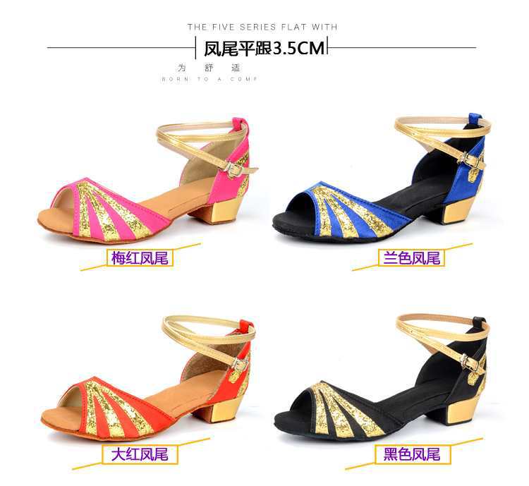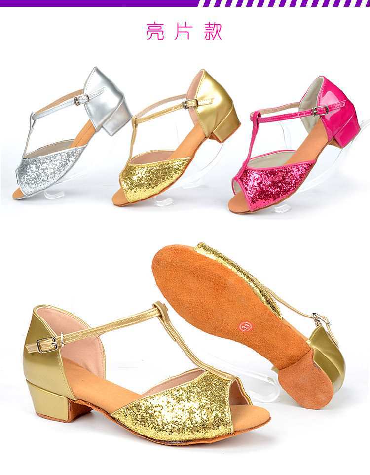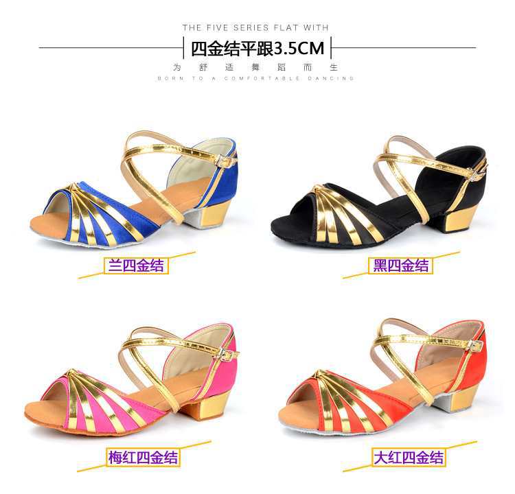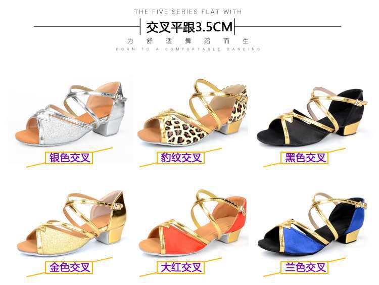 Sapatos de dança latina profissional Meninas Meninas Sapatos latinos de sola macia Salto plano para crianças Sapatos de dança de salto plano para iniciantes
