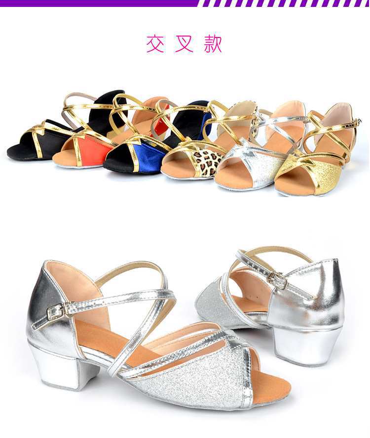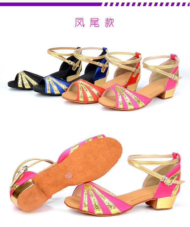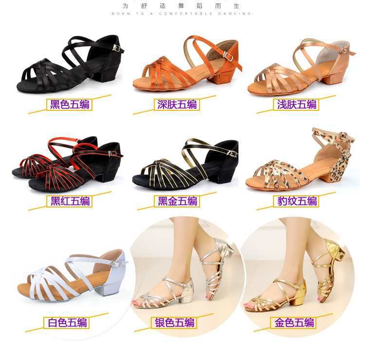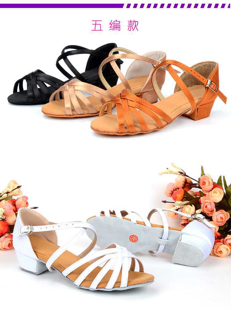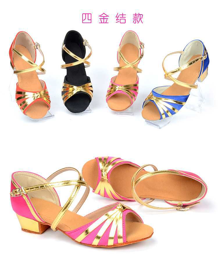 Sapatos de dança latina profissional Meninas Meninas Sapatos latinos de sola macia Salto plano para crianças Sapatos de dança de salto plano para iniciantes