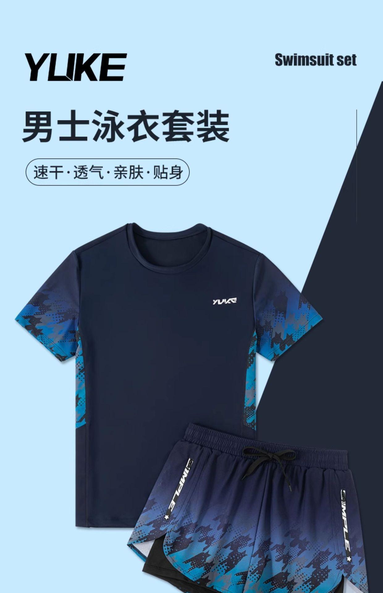 Camouflage blue [short-sleeved top + double-layer swimming trunks], Camouflage green [short-sleeved top + doub...