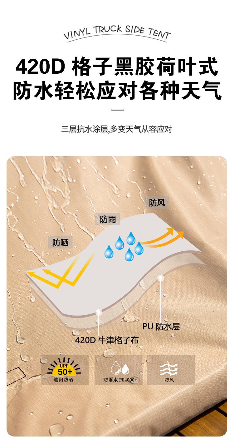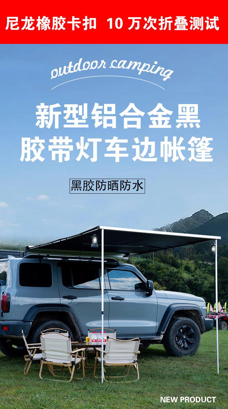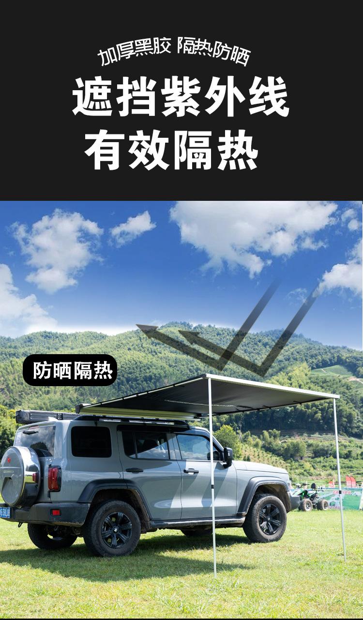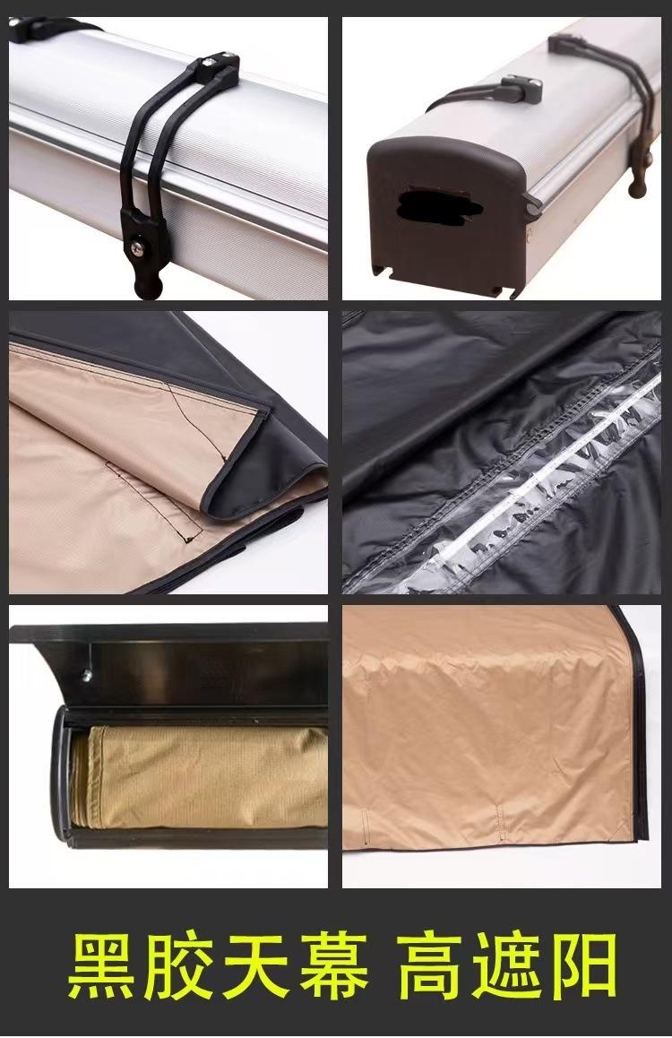 Concha de liga de alumínio protetor solar à prova d'água Barraca lateral do dossel do lado do carro para acampamento Toldo da barraca lateral do carro de borracha preta