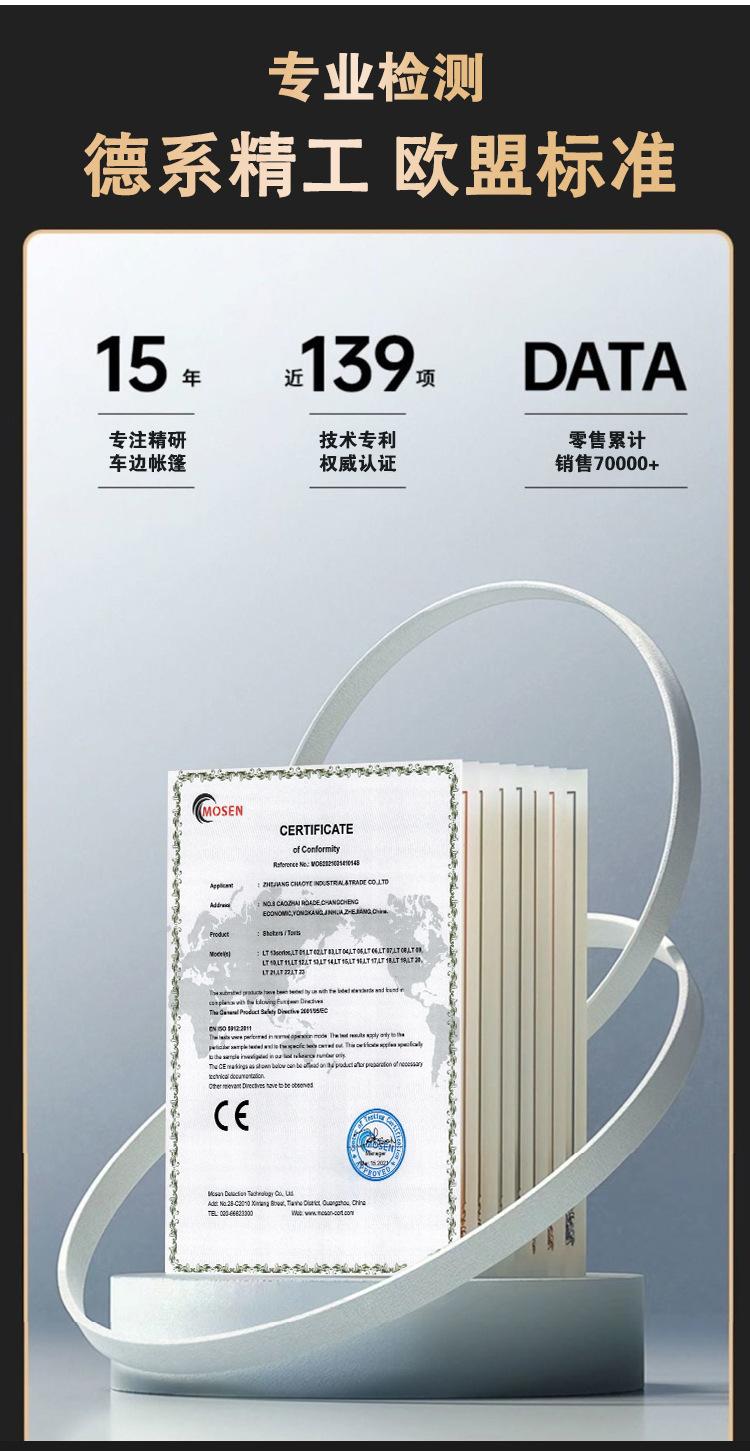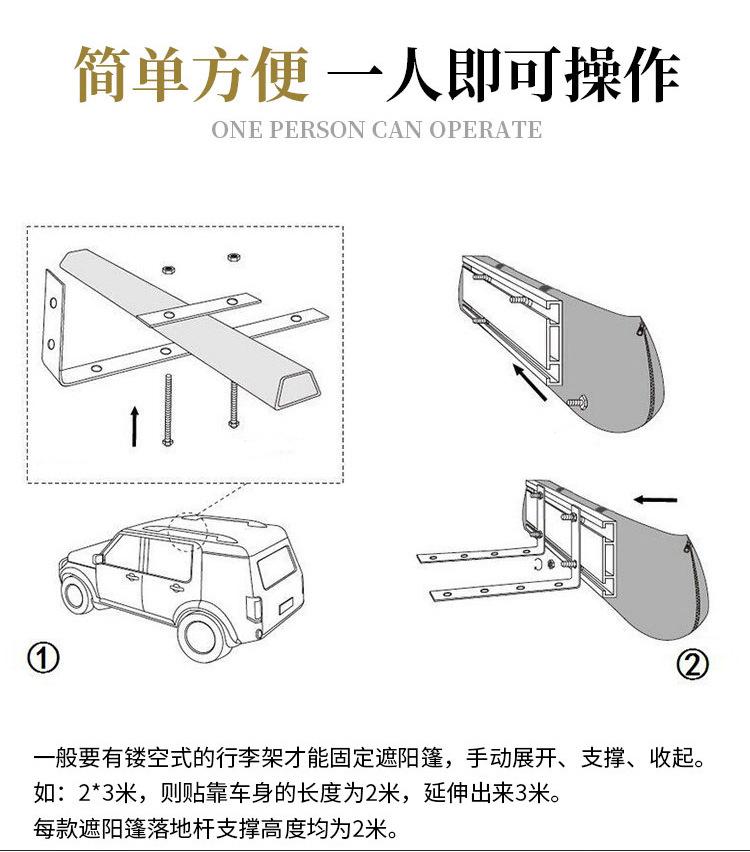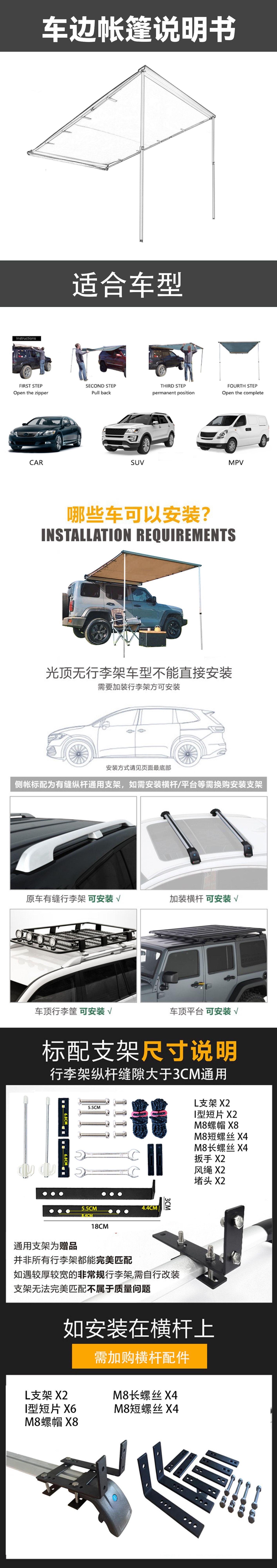 Concha de liga de alumínio protetor solar à prova d'água Barraca lateral do dossel do lado do carro para acampamento Toldo da barraca lateral do carro de borracha preta