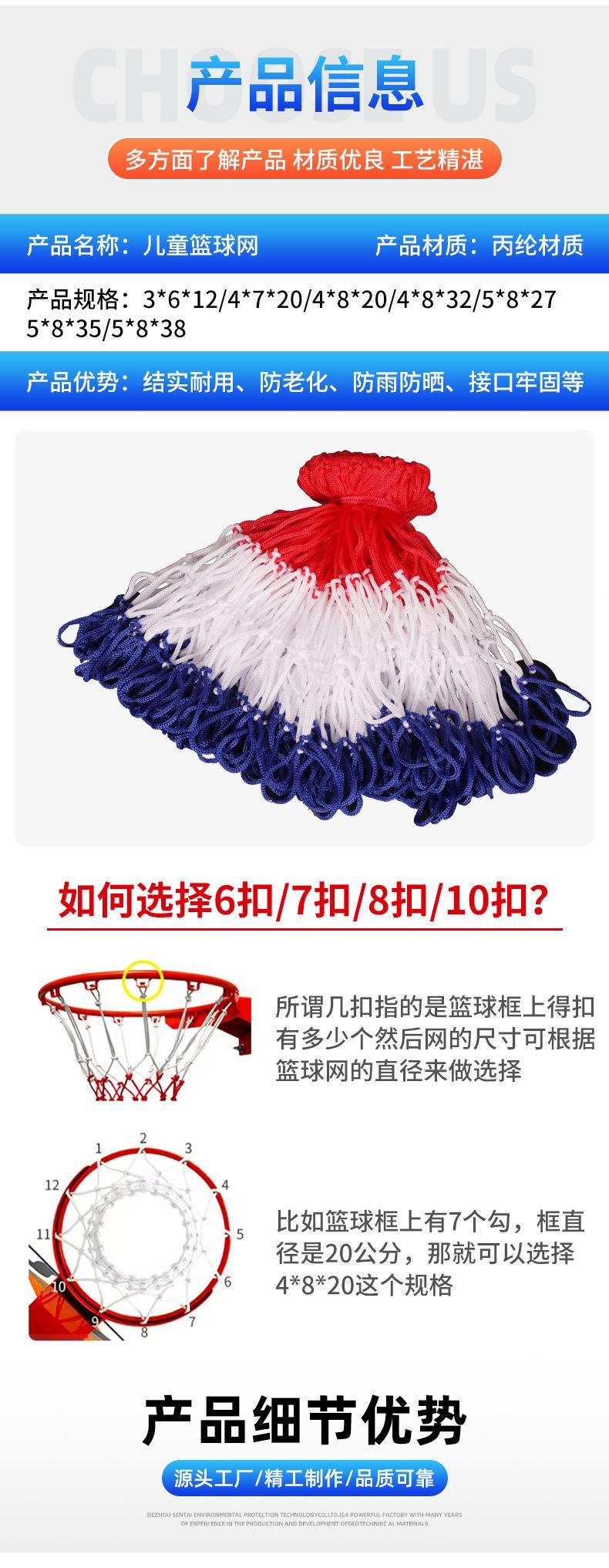 Rede de Basquete para Jardim de Infância Profissional de Alto Nível Tricolor Rede de Jogo de Basquete Indoor Tricolor Espessa Rede de Basquete Infantil