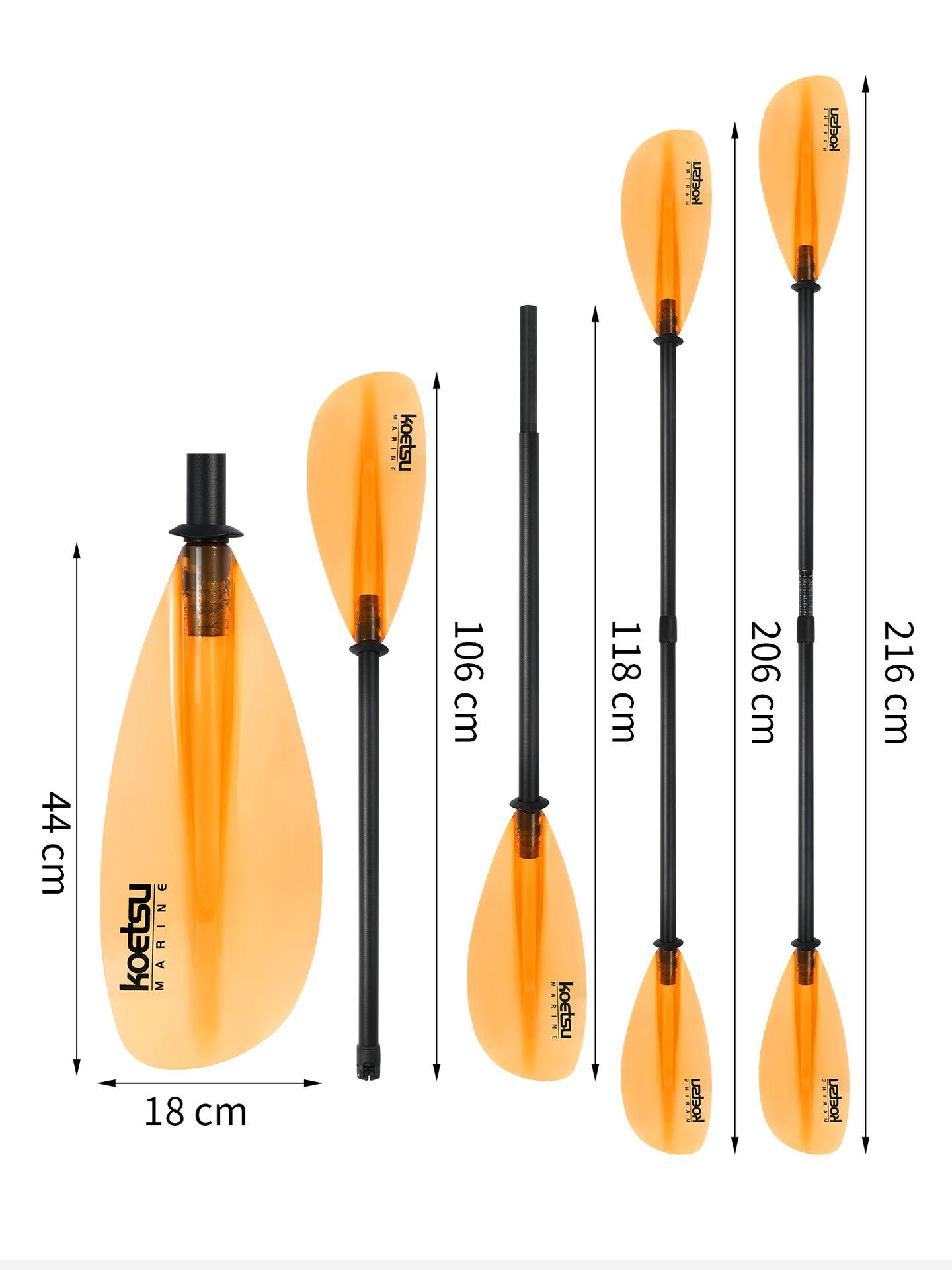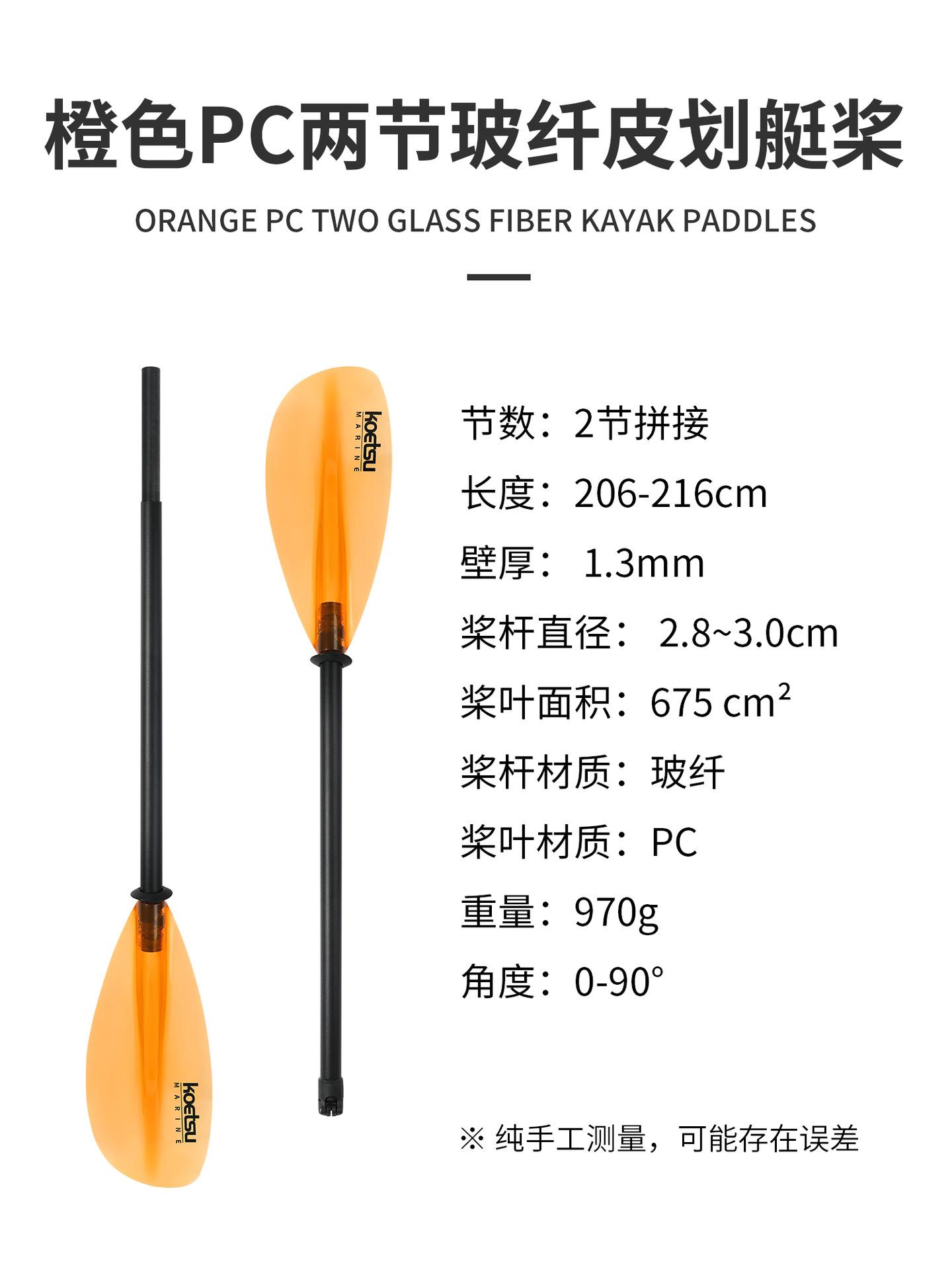 KOETSU Orange PC Remo de CAIAQUE de Fibra de Vidro de Duas Seções KAYAK Remo de Duas Seções
