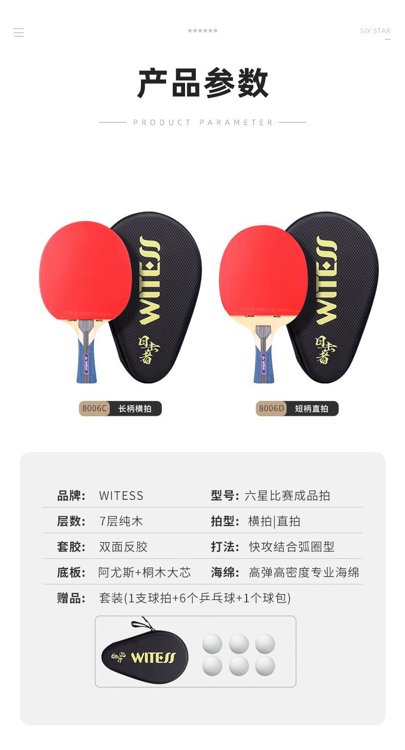 WITESS Eyewitness Tacos de Tênis de Mesa para Crianças Iniciantes no Ensino Fundamental e Médio 6 Estrelas Tacos de Tênis de Mesa de Cabo Longo Grau Profissional