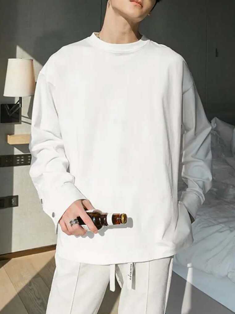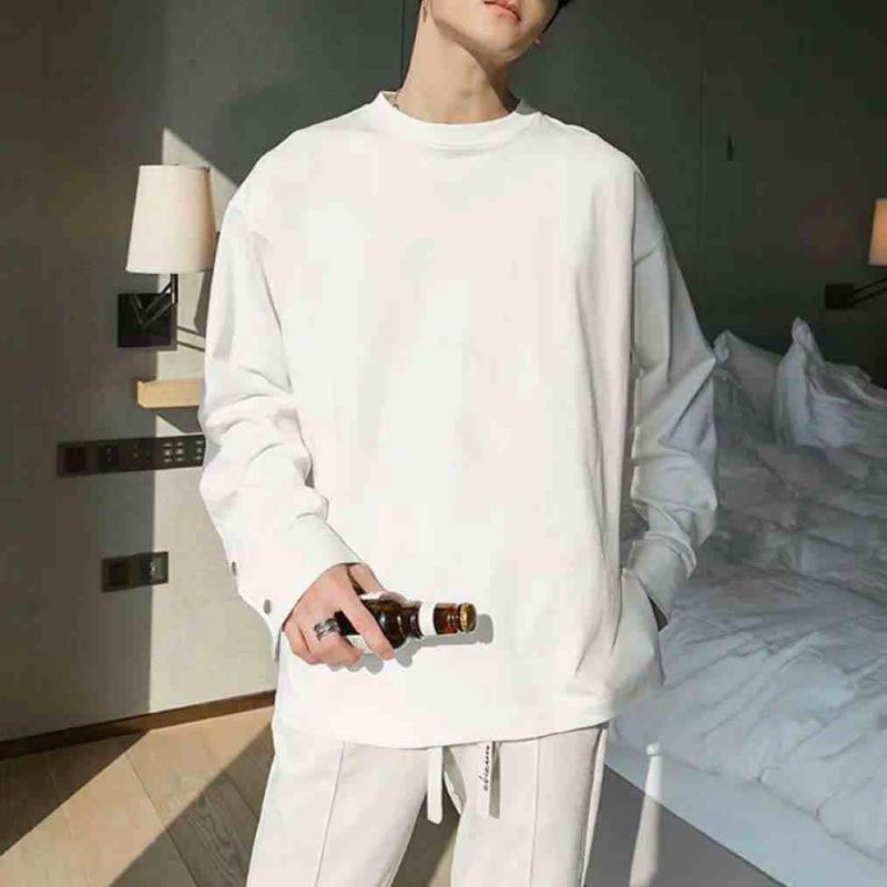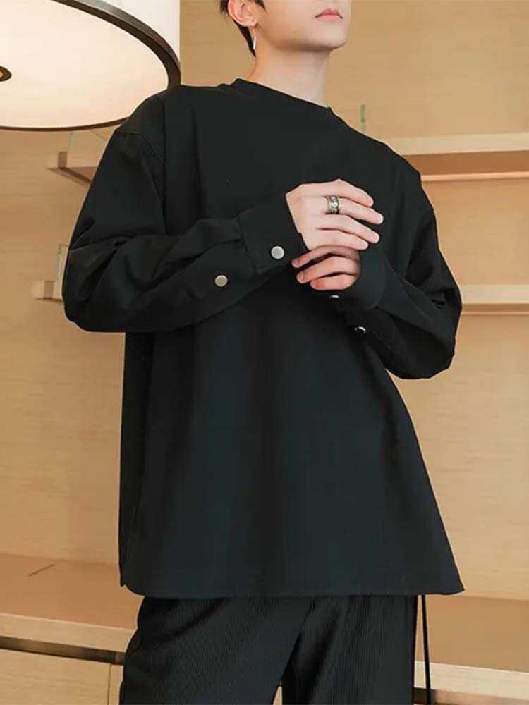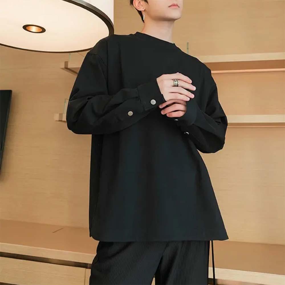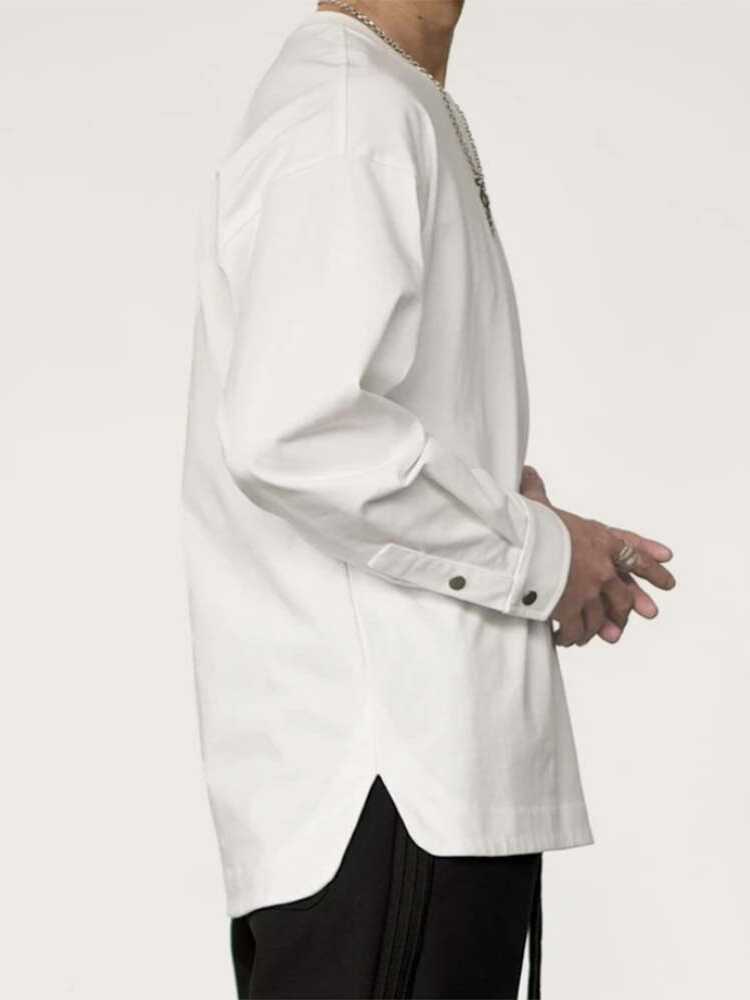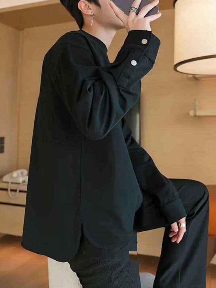 Compre Primavera e Outono Nova Camisa Masculina de Manga de Botão Camisola Design de Moda Manga Longa Em Torno Do Pescoço Slim Fit Camisa Base Masculina Da Moda no atacado no Joom.pro