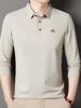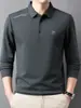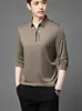 Primavera e Outono Nova Camisa Polo Masculina Verde de Meia-idade Manga Longa Lapela Pulôver Casual de Negócios Camiseta Masculina