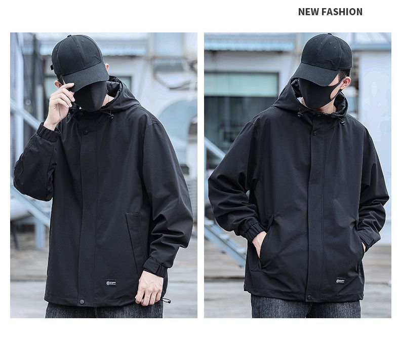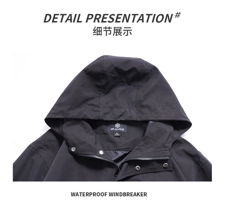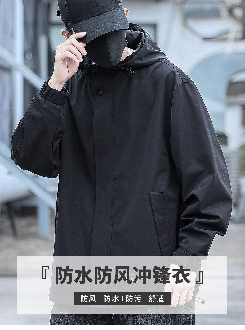 Jaqueta com capuz à prova d'água à prova de vento para homens Primavera Nova Jaqueta de trabalho casual para todos os jogos Jaqueta masculina Primavera e outono