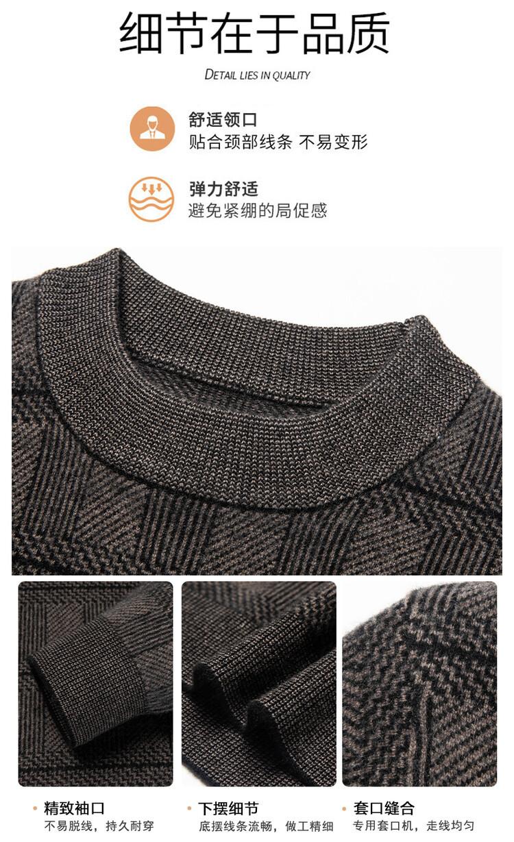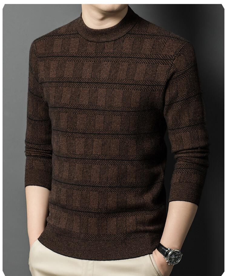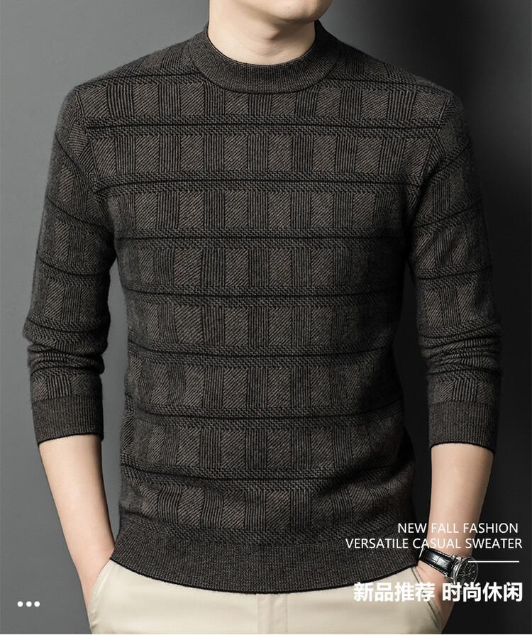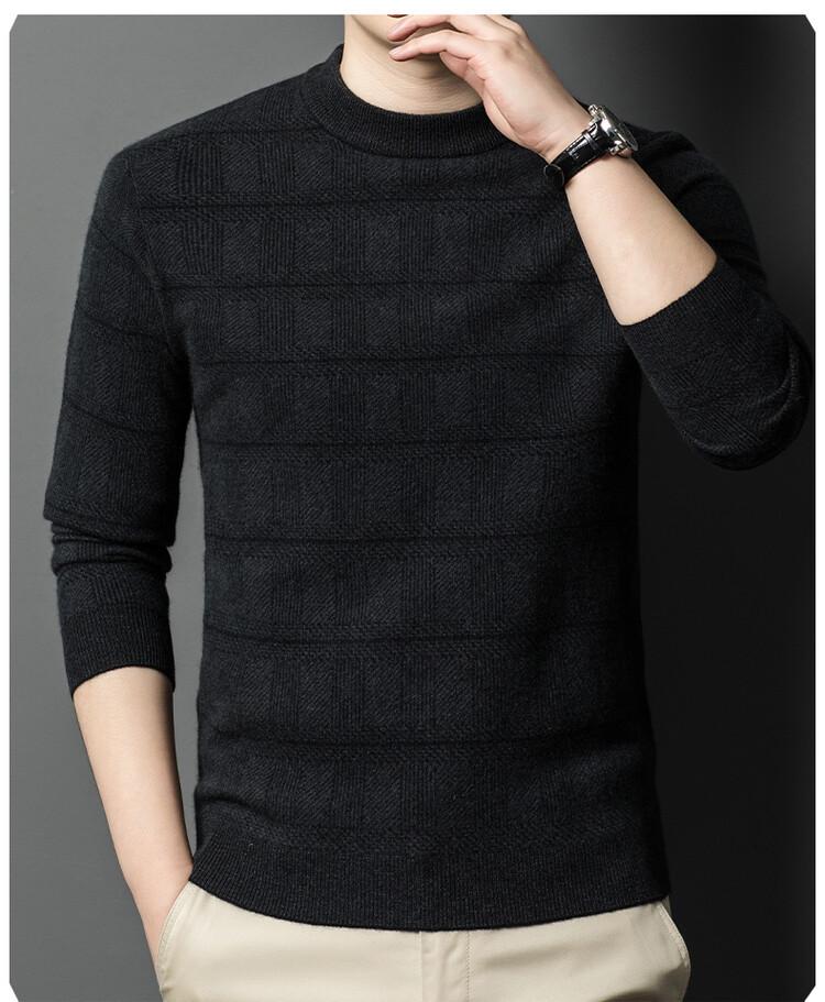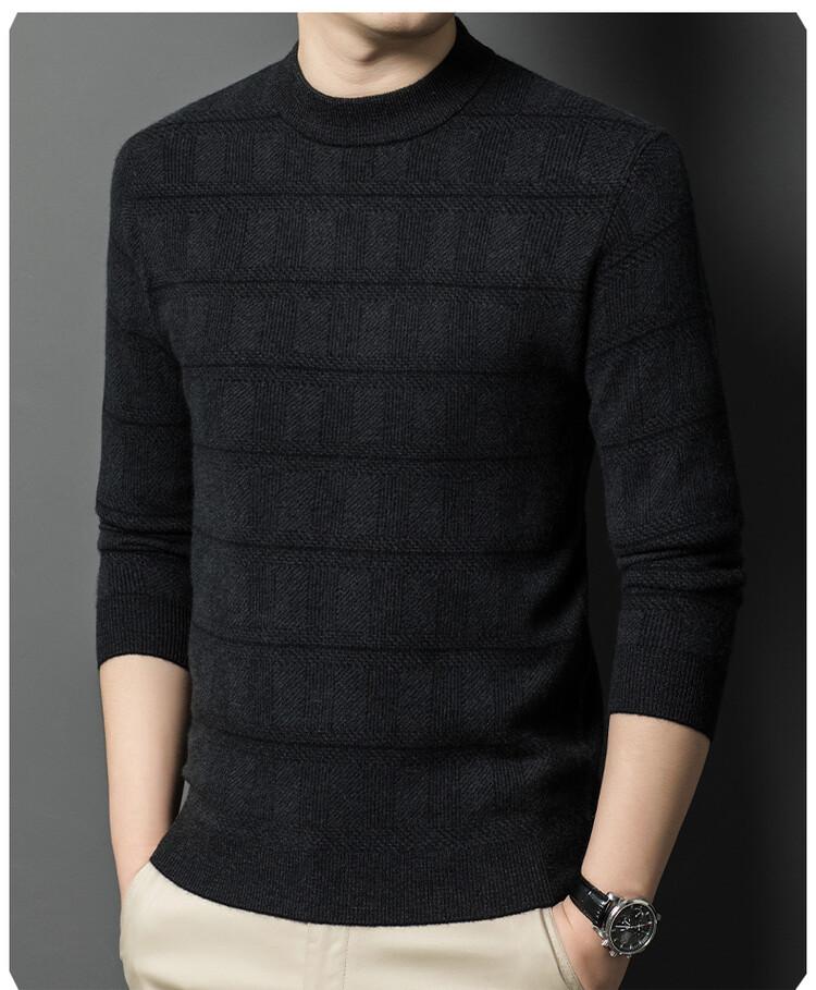 Suéter Masculino 100% Suéter de Lã Pura 2024 Outono e Inverno Suéter de Gola Redonda Juvenil Camisa de Base Macia e Quente para Homens