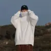 Outono e inverno dos homens engrossado Mock gola alta Jacquard suéter de lã cheia solto casual plus size malha base suéter cor sólida