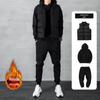 Terno esportivo casual masculino de inverno forrado de lã com capuz engrossado Cardigan de pele de cordeiro Suéter de duas peças M-8XL