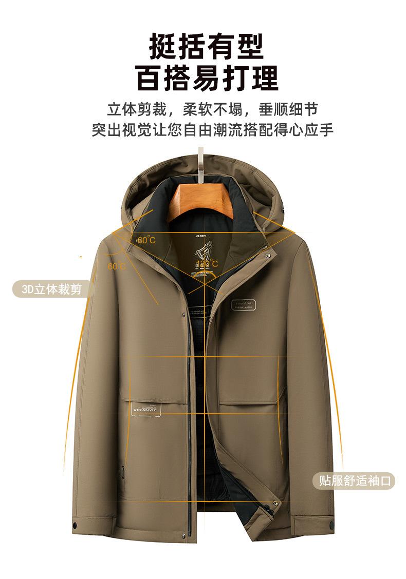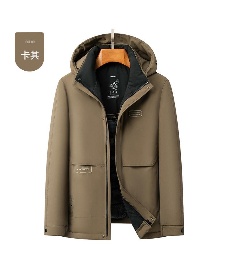 Casaco de outono e inverno do pai, jaqueta grossa casual masculina de negócios, roupas quentes de algodão com capuz para homens de meia-idade
