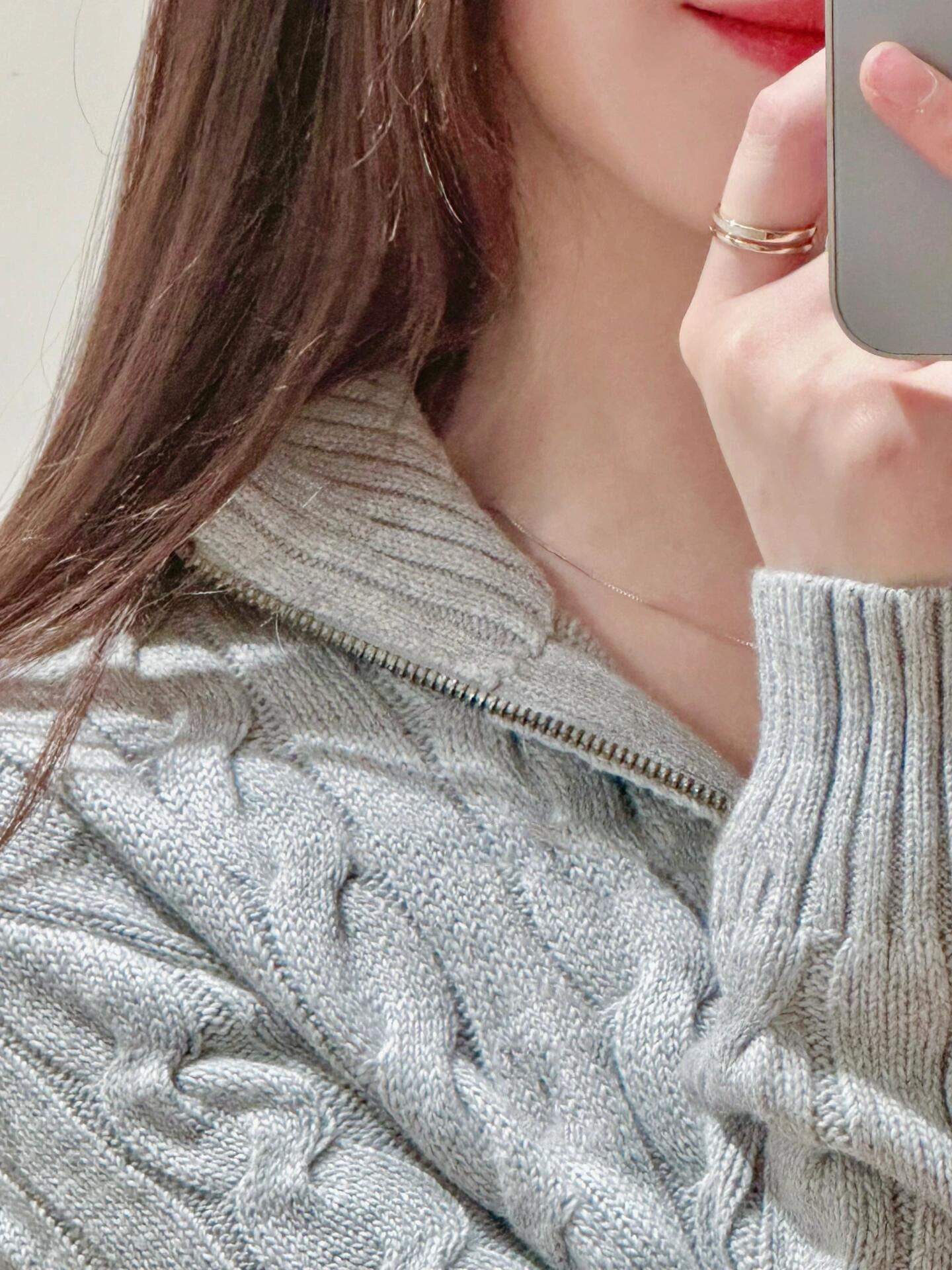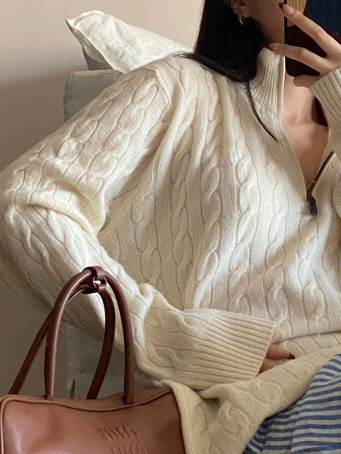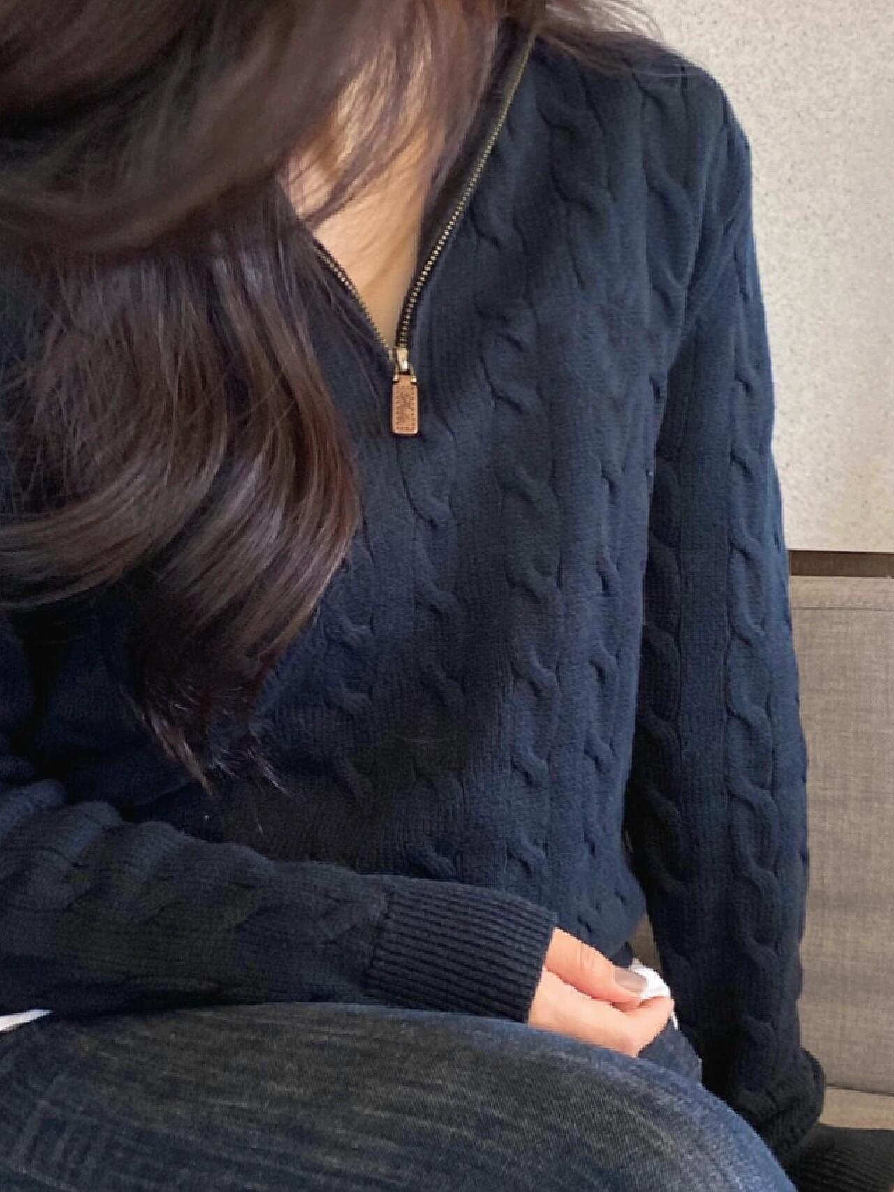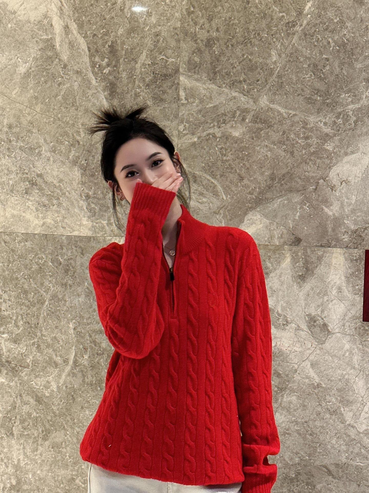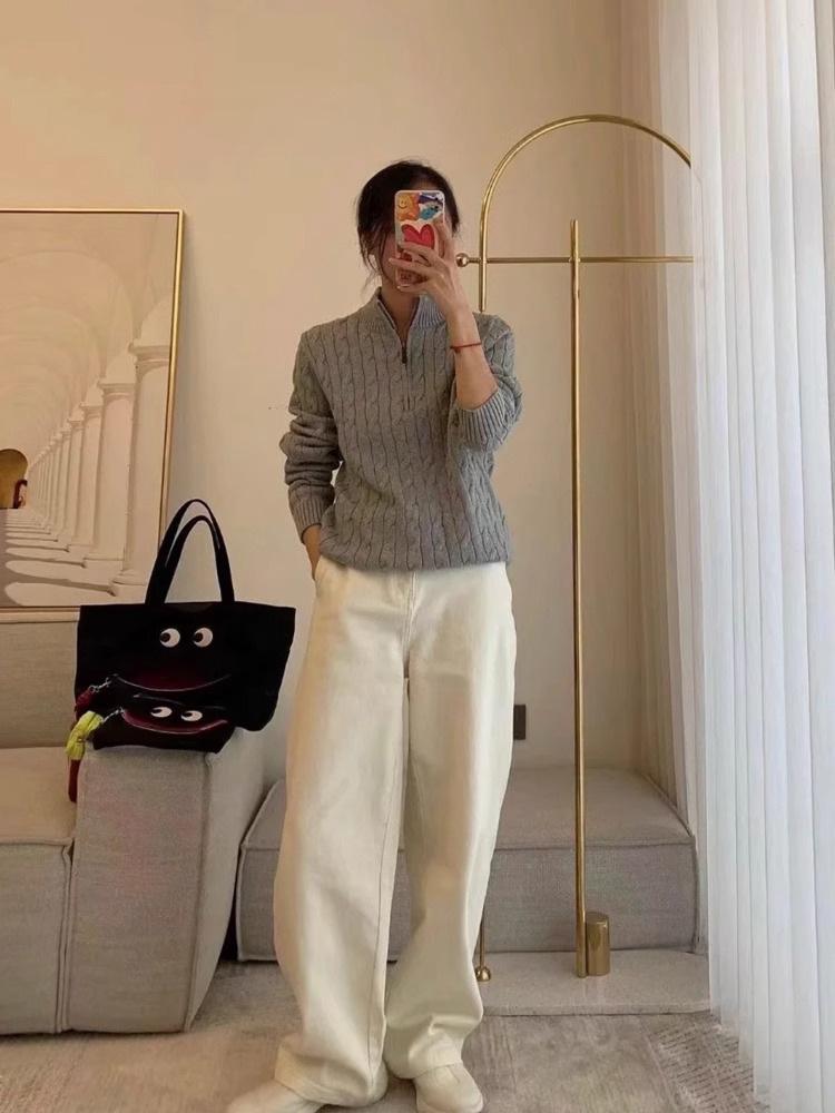 Tamanho de varredura RL Ruff Pony bordado malhas masculinas outono e inverno gola vertical torção meio zíper suéter feminino quente