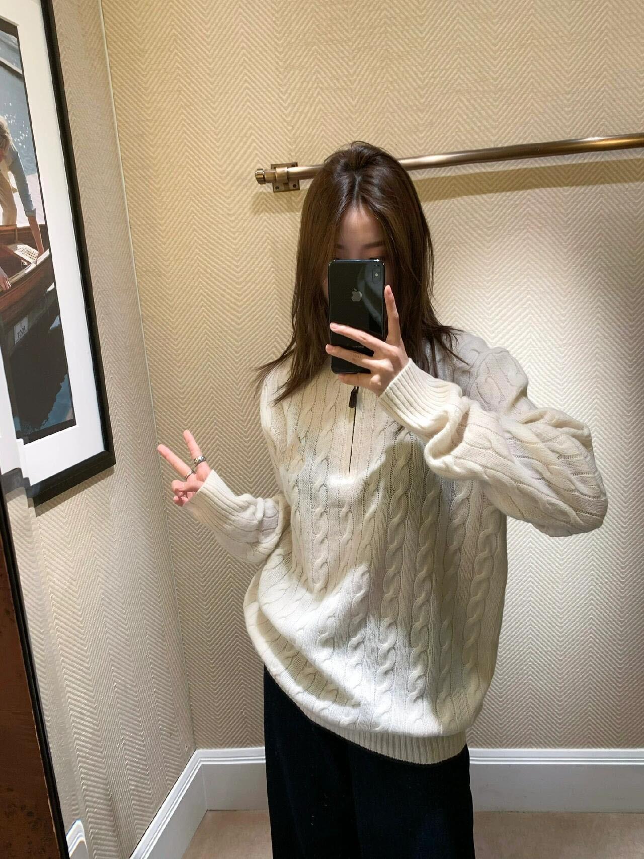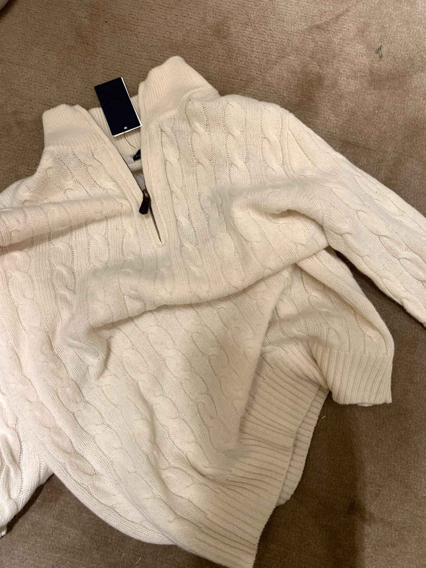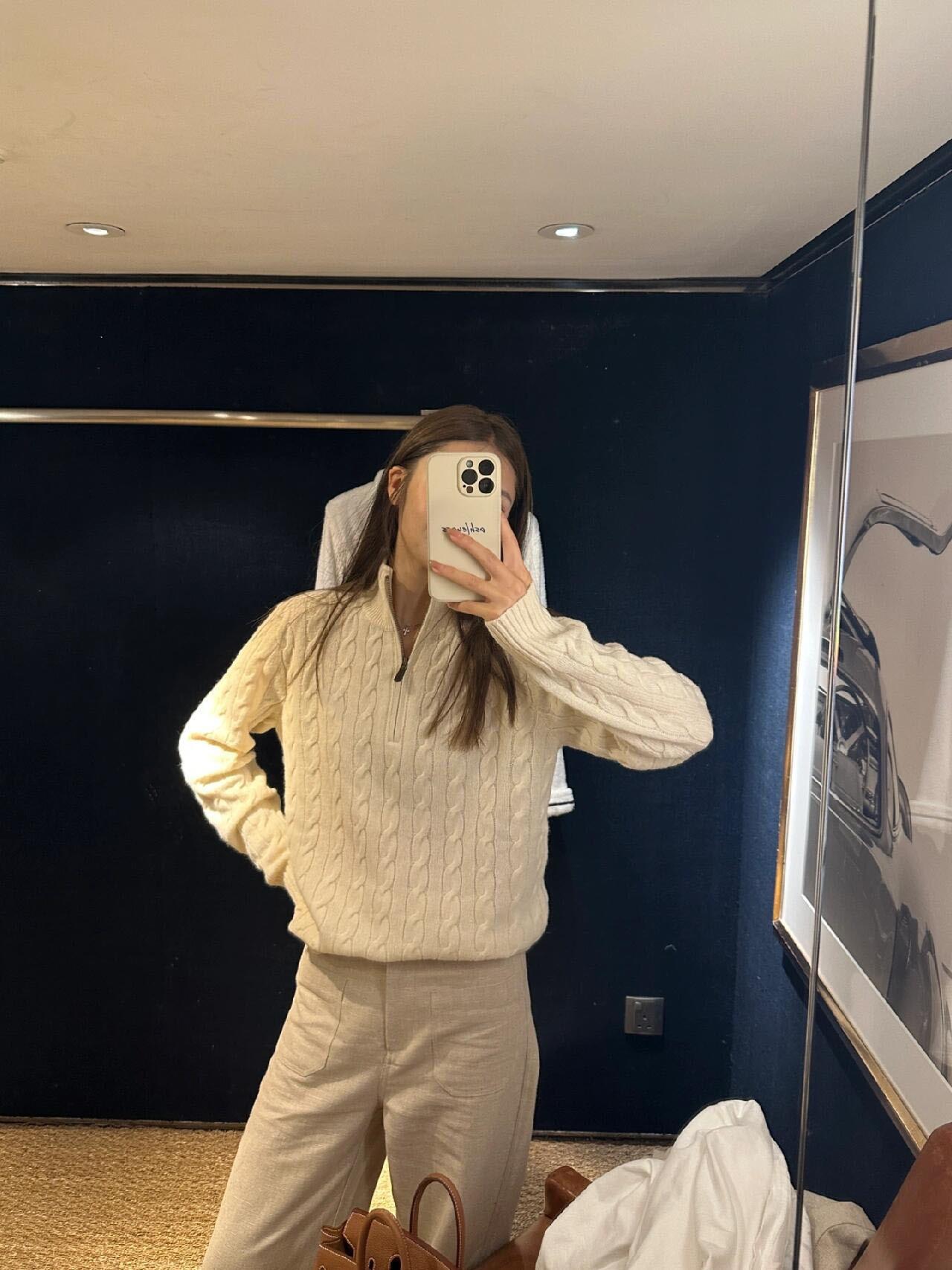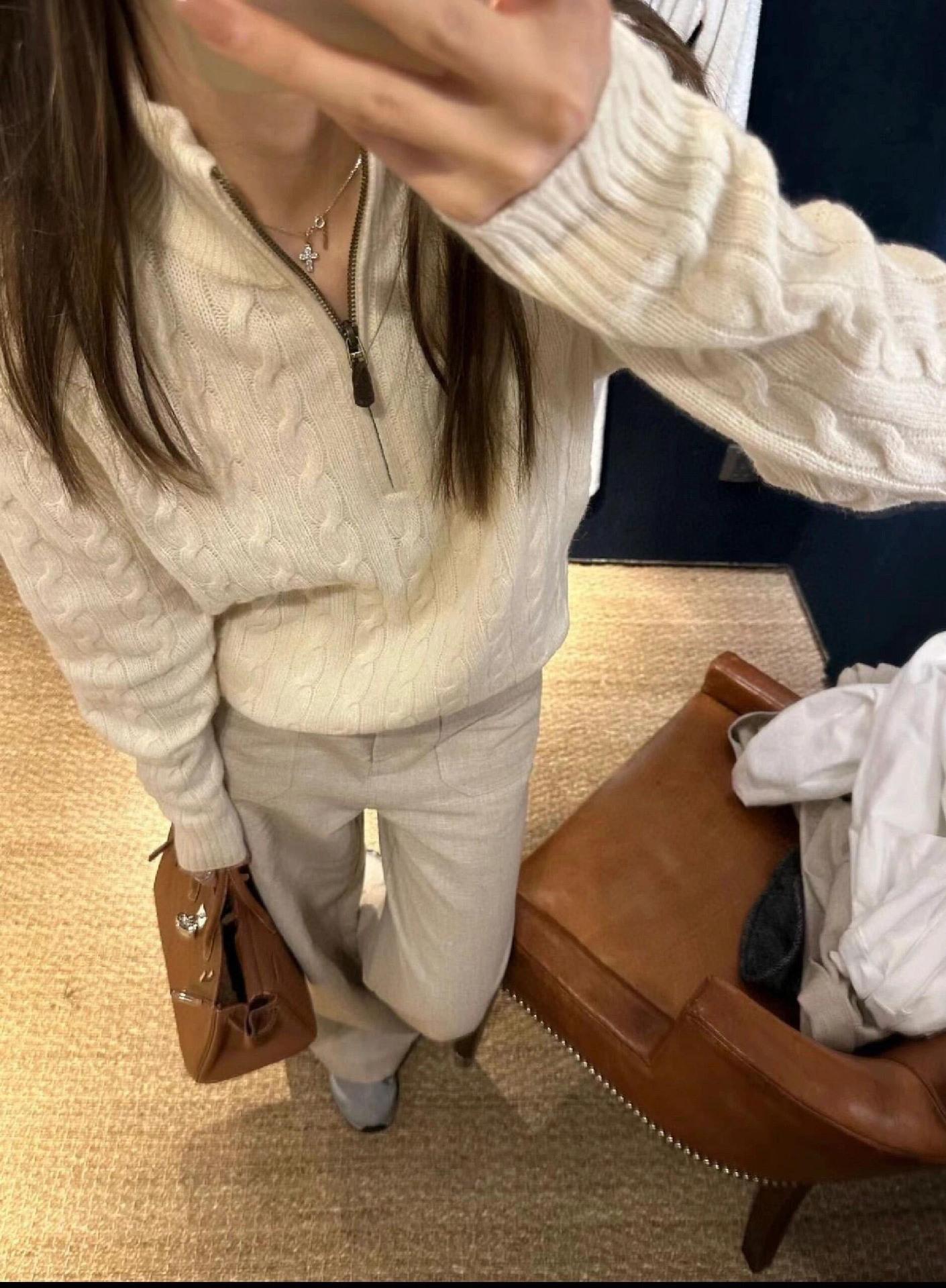 Tamanho de varredura RL Ruff Pony bordado malhas masculinas outono e inverno gola vertical torção meio zíper suéter feminino quente
