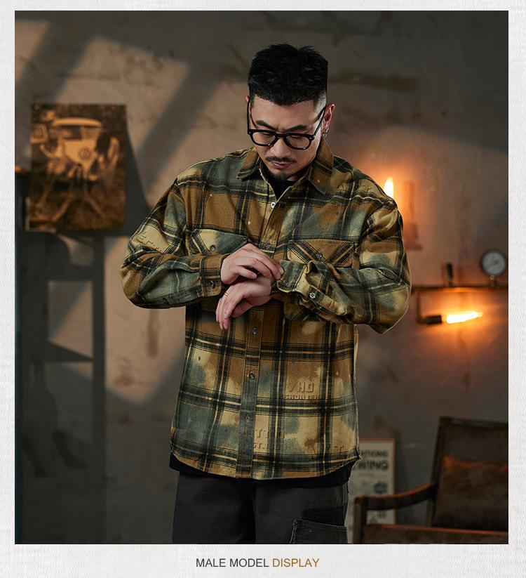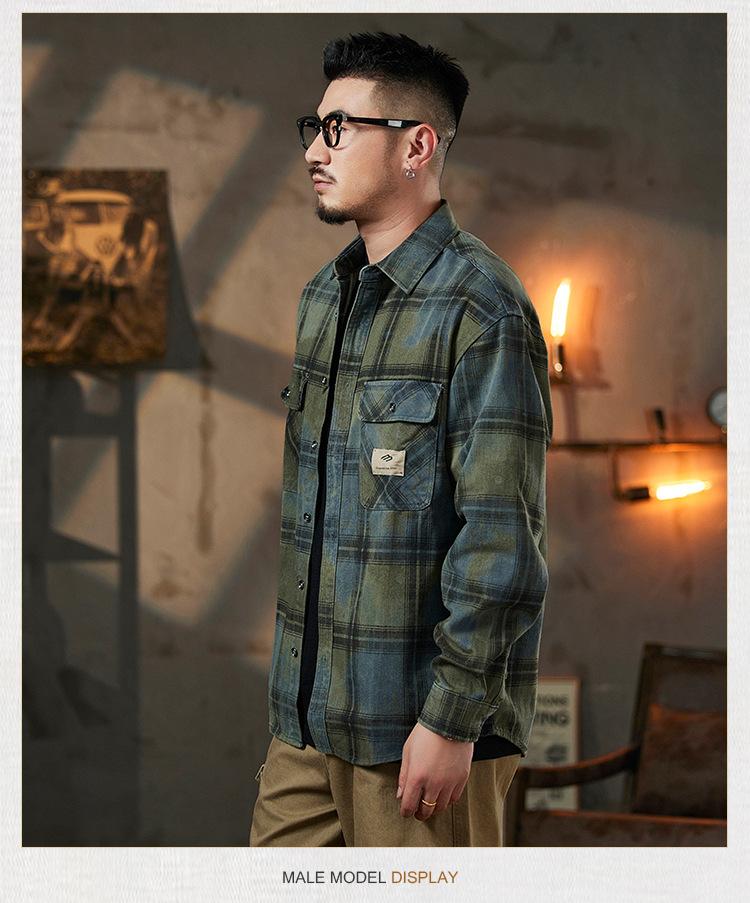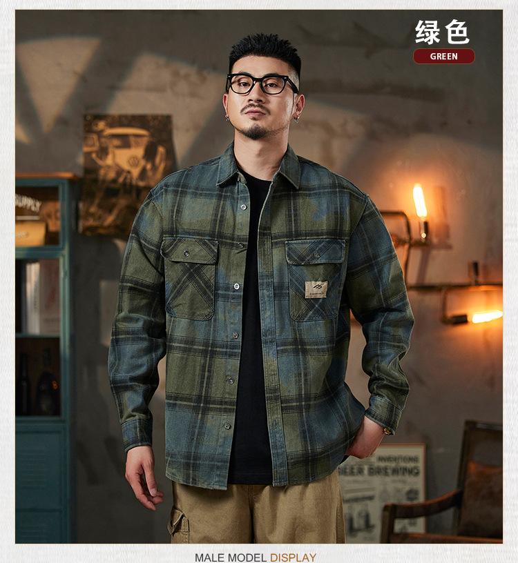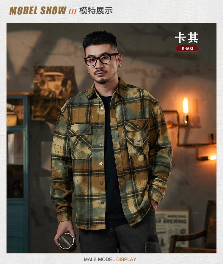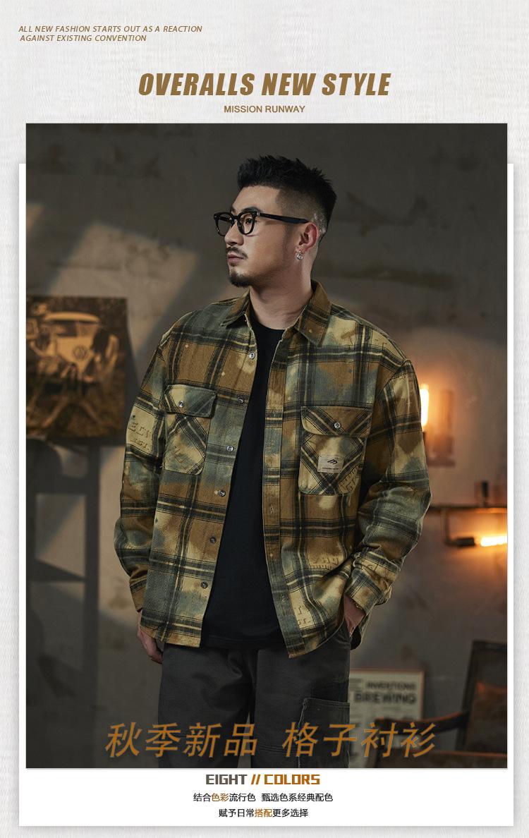 Compre Vintage American Lapela Xadrez Camisa Jaqueta Masculina Casual All-match Manga Longa Primavera e Outono 2024 Novo Estilo no atacado no Joom.pro
