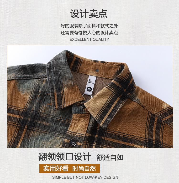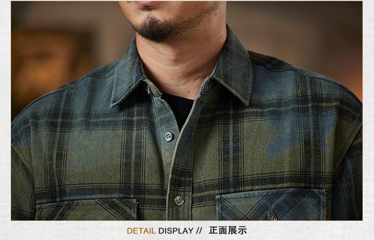 Vintage American Lapela Xadrez Camisa Jaqueta Masculina Casual All-match Manga Longa Primavera e Outono 2024 Novo Estilo