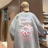 Lanhai Masculino 2025 Outono e Inverno Novo Marca da Moda Europeia e Americana Retrô Peso Pesado 480g Lavado Estampa Racing Moletom Gola Redonda