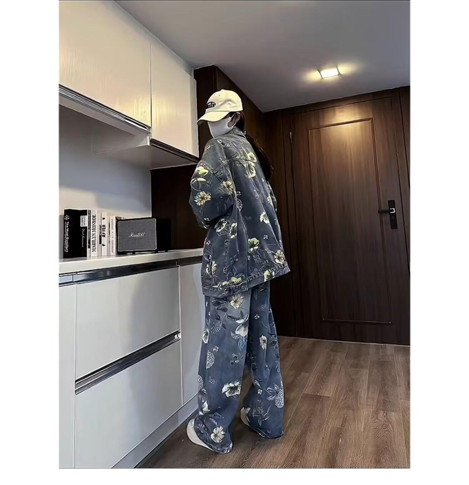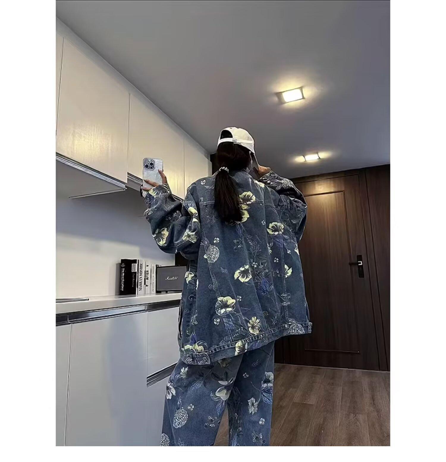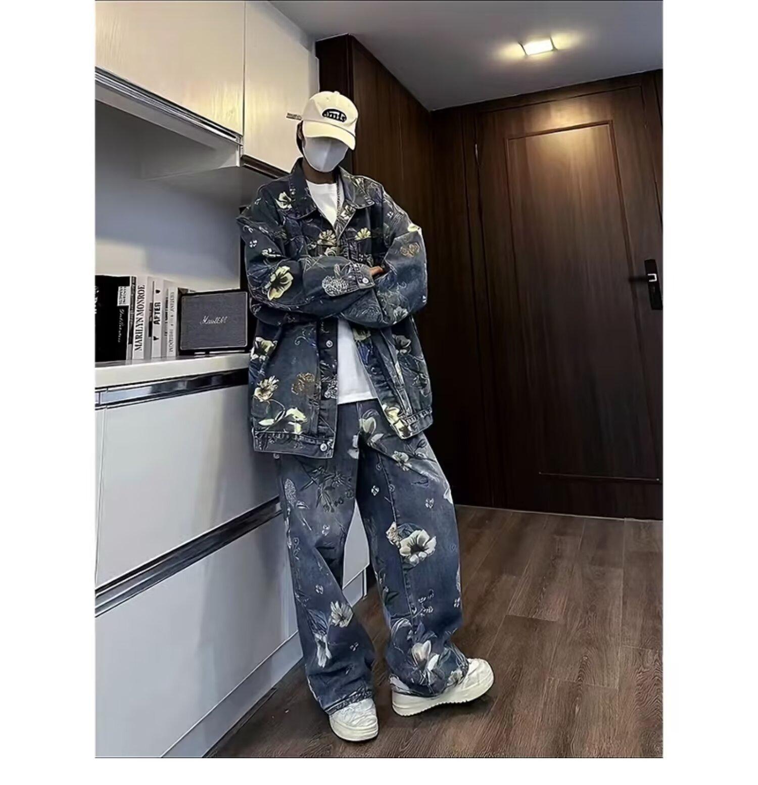 Compre Jaqueta jeans estampada completa masculina primavera e outono casual solta jaqueta jeans na moda para adolescentes no atacado no Joom.pro